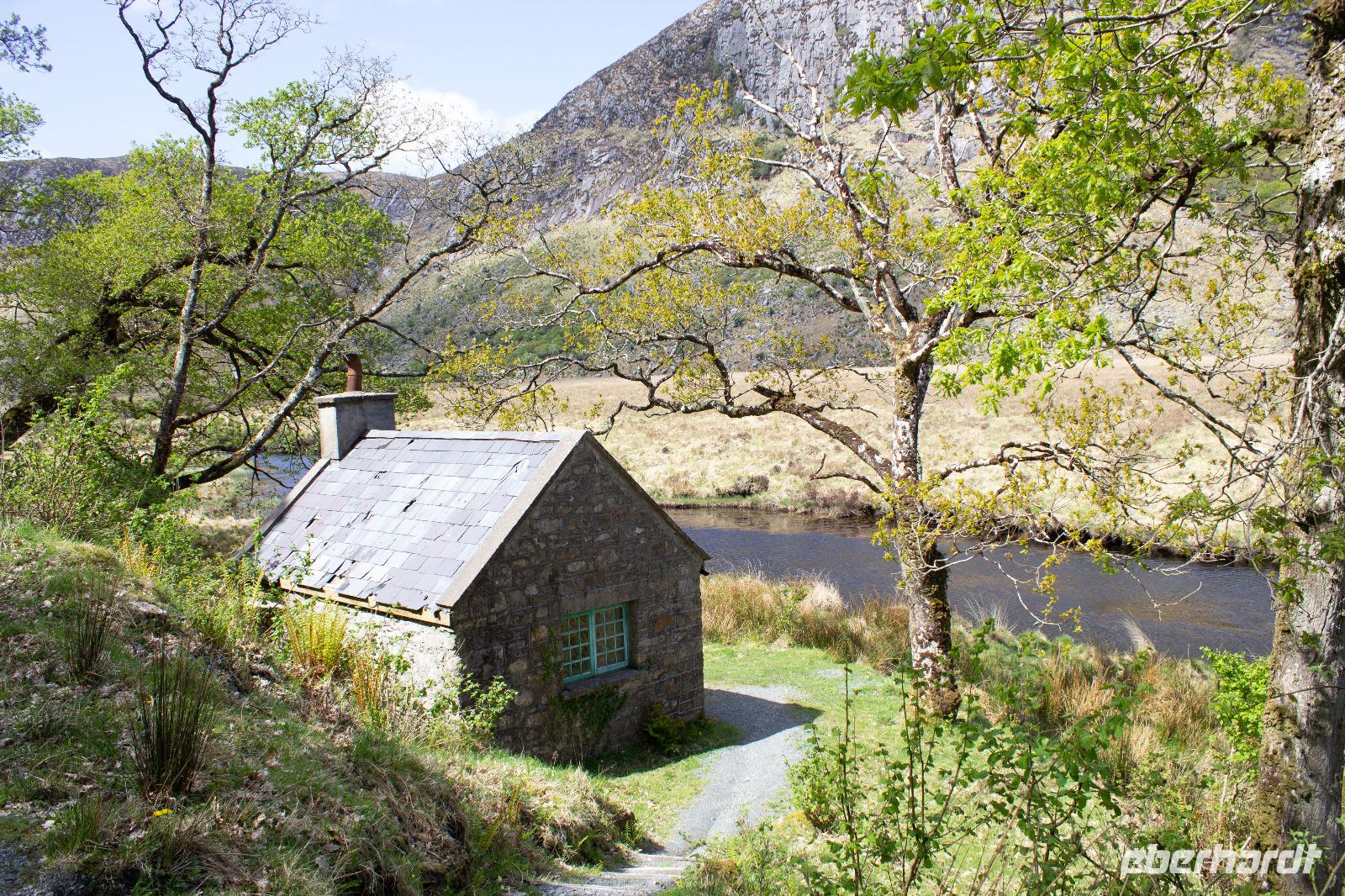 Anschließend wanderten wir bis an das Ende des Lough Veagh, vorbei am Wasserfall, bis zu einem kleinen Cottage. Wir holten für unser Picknick einige Bänke und Stühle aus dem Cottage-Häuschen, doch die meisten von uns bevorzugten einen Platz auf der grünen Wiese, direkt am Fluss. Es war sehr romantisch, bei Sonnenschein im Grünen zu sitzen und dem Plätschern des Baches zu lauschen.
