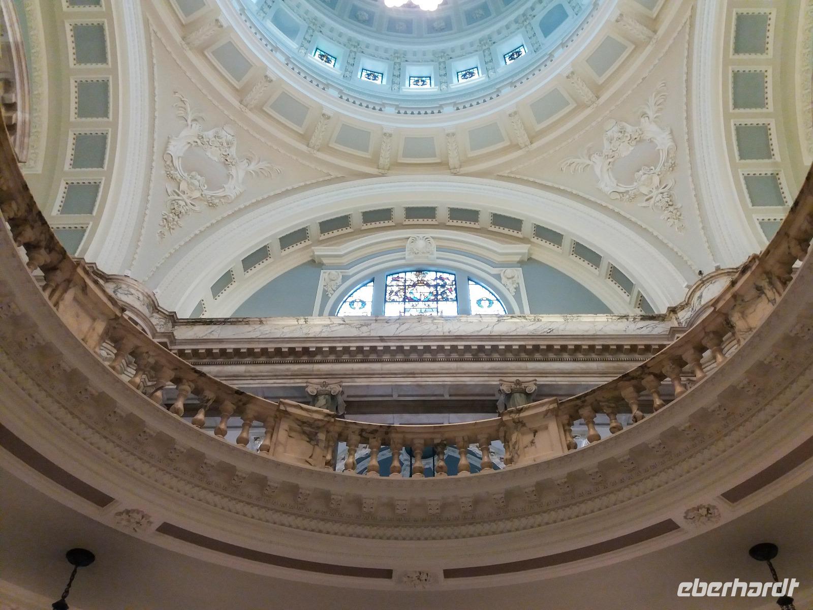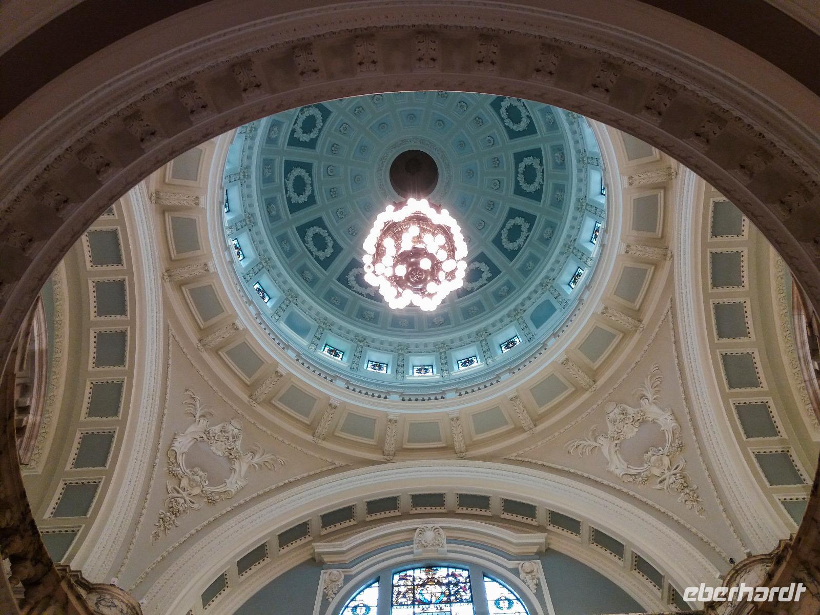 Nach dem Frühstück und dem Einladen der Koffer ist es an der Zeit uns von Donal zu verabschieden. Schweren Herzens lassen wir ihn am Hotel zurück und fahren mit Tommy nach Greystones wo wir uns ein Ticket für den Zug nach Dublin Pearse Station holen. Die Station von Greystones liegt direkt an der Irischen See und auf unserer einstündigen Fahrt zur irischen Hauptstadt sehen wir viel Küste, ruhiges Wasser und blauen Himmel. Irland zeigt sich heute noch einmal von seiner besten Seite. In Dublin angekommen treffen wir uns mit unserem örtlichen Reiseleiter John in der Nassau Street. Zusammen mit ihm sehen wir uns die wichtigsten Gebäude und Plätze der Stadt an. Natürlich darf auch eine Fahrt durch den Phoenix Park nicht fehlen. Noch vor knapp zwei Wochen, am Tag unserer Anreise, hat Papst Franziskus hier vor etwa 250.000 Menschen gesprochen. Die letzten Stunden auf der Grünen Insel haben wir zur freien Verfügung. Wer möchte kann sich mit mir noch das Book of Kells im Trinity College ansehen. Das Universitätsgelände ist heute sehr belebt, da die Erstsemester sich auf dem Kampus zu verschiedenen Aktivitäten und Studiengängen beraten lassen können. Von den ersten Gästen verabschiede ich mich bereits hier, da wir unterschiedliche Flüge zurück nach Deutschland haben. Im Laufe des Nachmittages treffen wir schließlich alle am Flughafen von Dublin ein und treten nach 13 erlebnisreichen Tagen unseren Rückweg an.