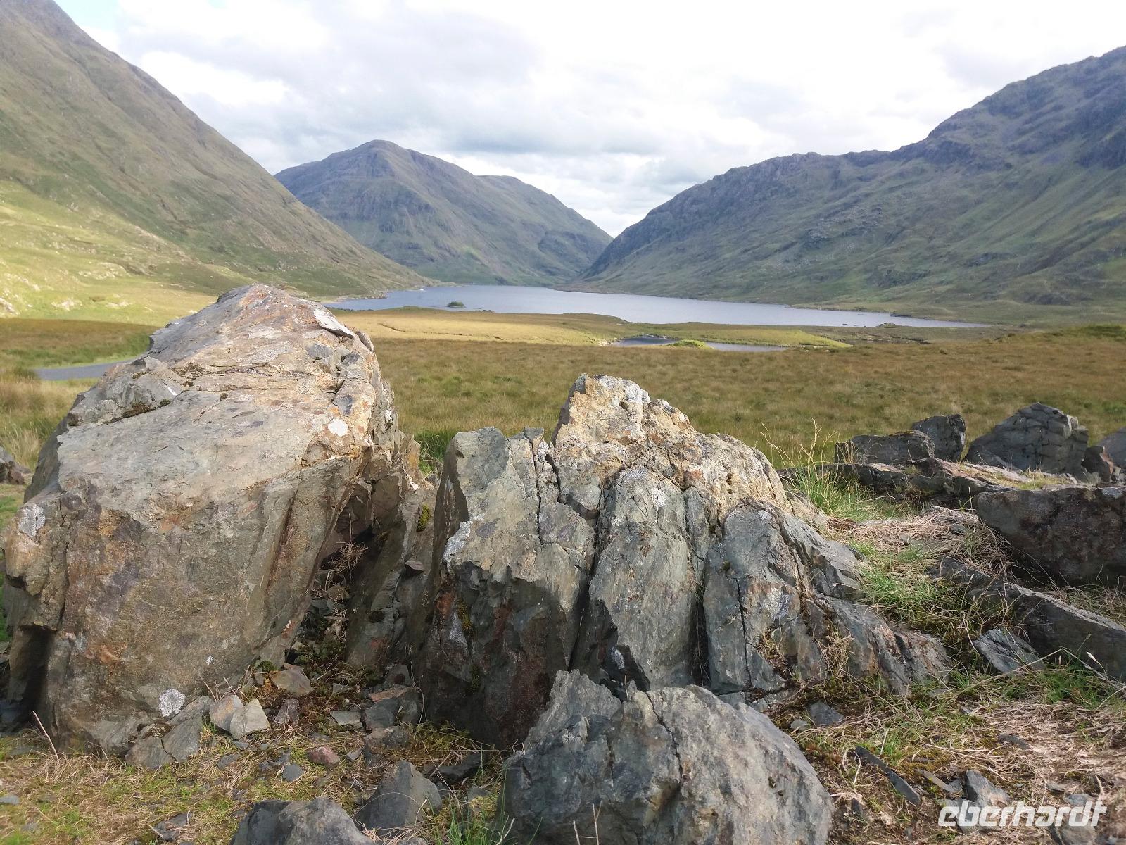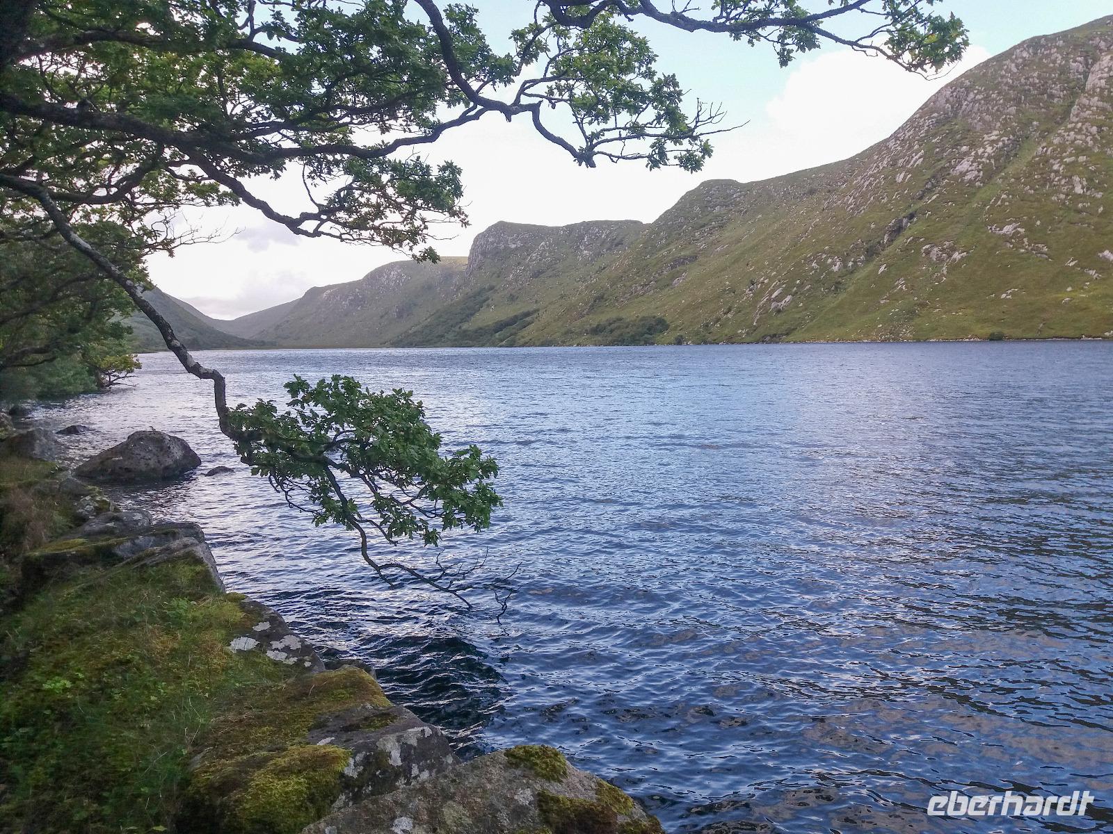 Auch heute treten wir eine weitere Wanderung an. Das Wetter ist auf unserer Seite und so machen wir uns bei vereinzelten Sonnenstrahlen auf den Weg nach Drumcliff wo wir noch eine kleine Pause einlegen bevor es losgeht. Auf dem Friedhof von Drumcliff befindet sich neben einer kleinen Kirche auch das Grab des Literaturnobelpreisträgers William Butler Yeats. Nach einer weiteren kurzen Fahrt kommen wir schließlich am Ben Bulben an, einem 527 Meter hohen Tafelberg in der Grafschaft Sligo. Diese Gegend ist nicht nur durch Diarmuid und Gráinne bekannt, sondern auch durch die furchtlose Piratin Grace O'Malley. Unsere Wanderung führt uns am Füße des Berges entlang. Nach unserer Mittagspause in Drumcliff geht es weiter nach Westport, einem kleinen belebten Ort an der Westküste Irlands. Hier können wir nicht nur eine Tasse Tee oder Kaffee trinken sondern uns auch mit Proviant für die nächsten Tage versorgen. Wir legen noch einen kleinen Fotostopp am Besucherzentrum des Croagh Patrick ein, dem Berg welcher dem heiligen Patrick geweiht ist. St. Patrick stieg im Jahr 441 auf diesen Berg, fastete dort 40 Tage und Nächte lang, erbaute eine Kapelle und soll den Legenden zufolge mit einer Glocke alle Schlagen aus Irland vertrieben haben. Auf dem Weg zu unserer nächsten Übernachtung in Leenane passieren wir noch das Doolough-Tal. Diese unbeschreiblich schöne Landschaft begleitet uns bis zum Killary Harbour, dem einzigen Fjort Irlands.