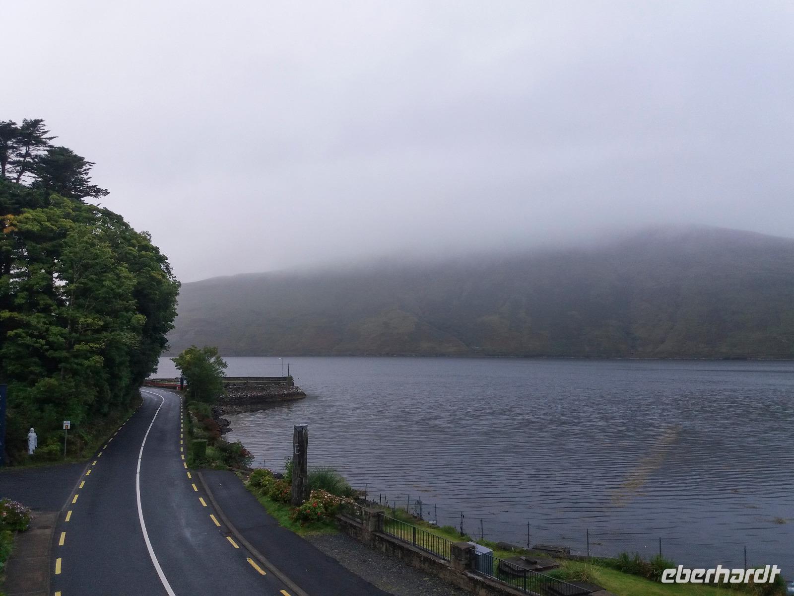 Nach dem Frühstück lernen wir Diane kennen. Sie wird unsere Busfahrerin für die nächsten zwei Tage sein. Auf dem Weg zum Connemara-Nationalpark legen wir noch einen Fotostopp am Killary Harbour ein. Der fast 16 km lange Fjord ist ein tolles Fotomotiv und da es nicht regnet haben wir eine gute Sicht. Im Nationalpark angekommen schauen wir uns einen kleinen Film zur Flora und Fauna der Region an und starten im Anschluss unsere Wanderung auf den 442 Meter hohen Diamon Hill. An der ersten Weggabelung angekommen sehen wir allerdings schnell, dass ein weiterer Aufstieg heute nicht von Nutzen sein wird. Dichter Nebel versperrt uns die Sicht und wir treten den Abstieg an. Neben dem Besucherzentrum gibt es einen schönen Tea Room und so entschließen wir uns dazu unsere Mittagspause hier zu verbringen. Weiter geht es für uns an diesem Tag zur Kylemore Abbey. Da sie Sonne nun langsam wieder hervor kommt, laufen wir gemeinsam zum viktorianischen Garten und fangen unsere Erkundung des Geländes hier an. Die ursprünglich als Schloss erbaute Abtei diente von 1923 bis 2010 als Mädcheninternat und ist direkt am Pollacapall Lough gelegen. Auf unserem Weg nach Gort legen wir noch eine kleine Pause in Galway ein.