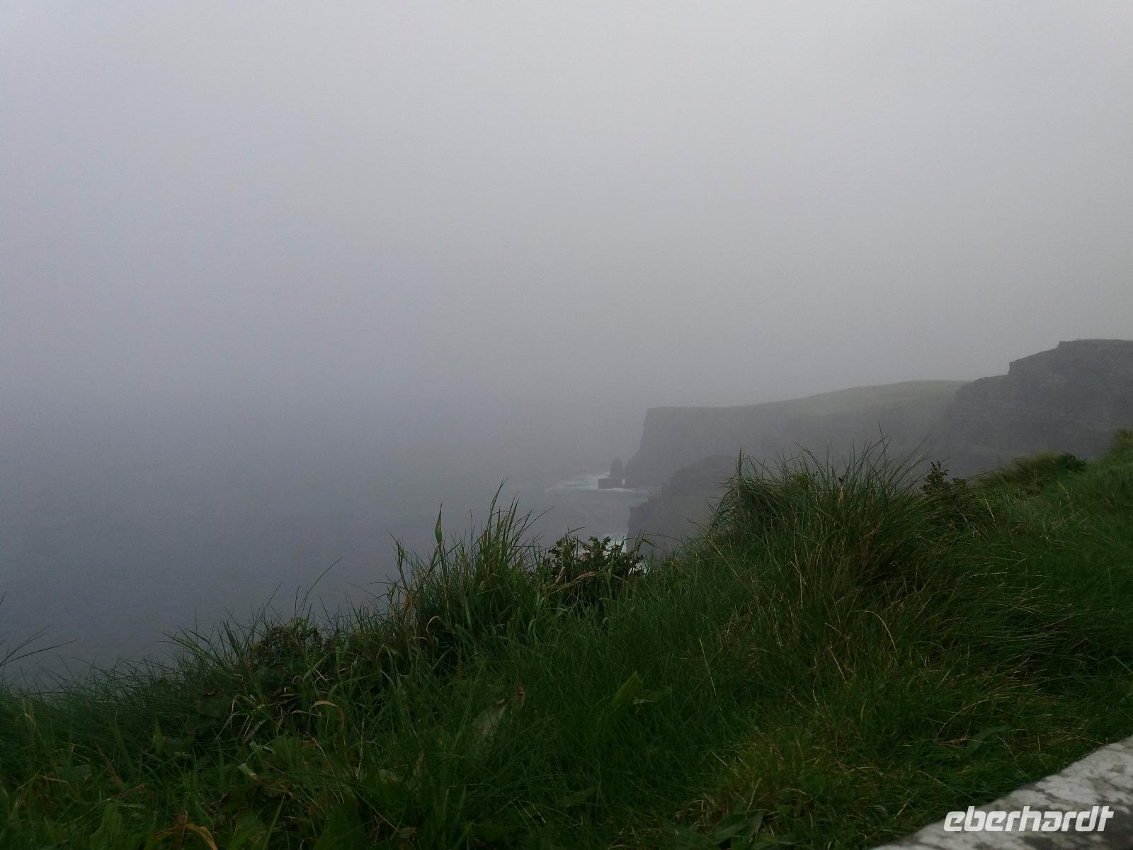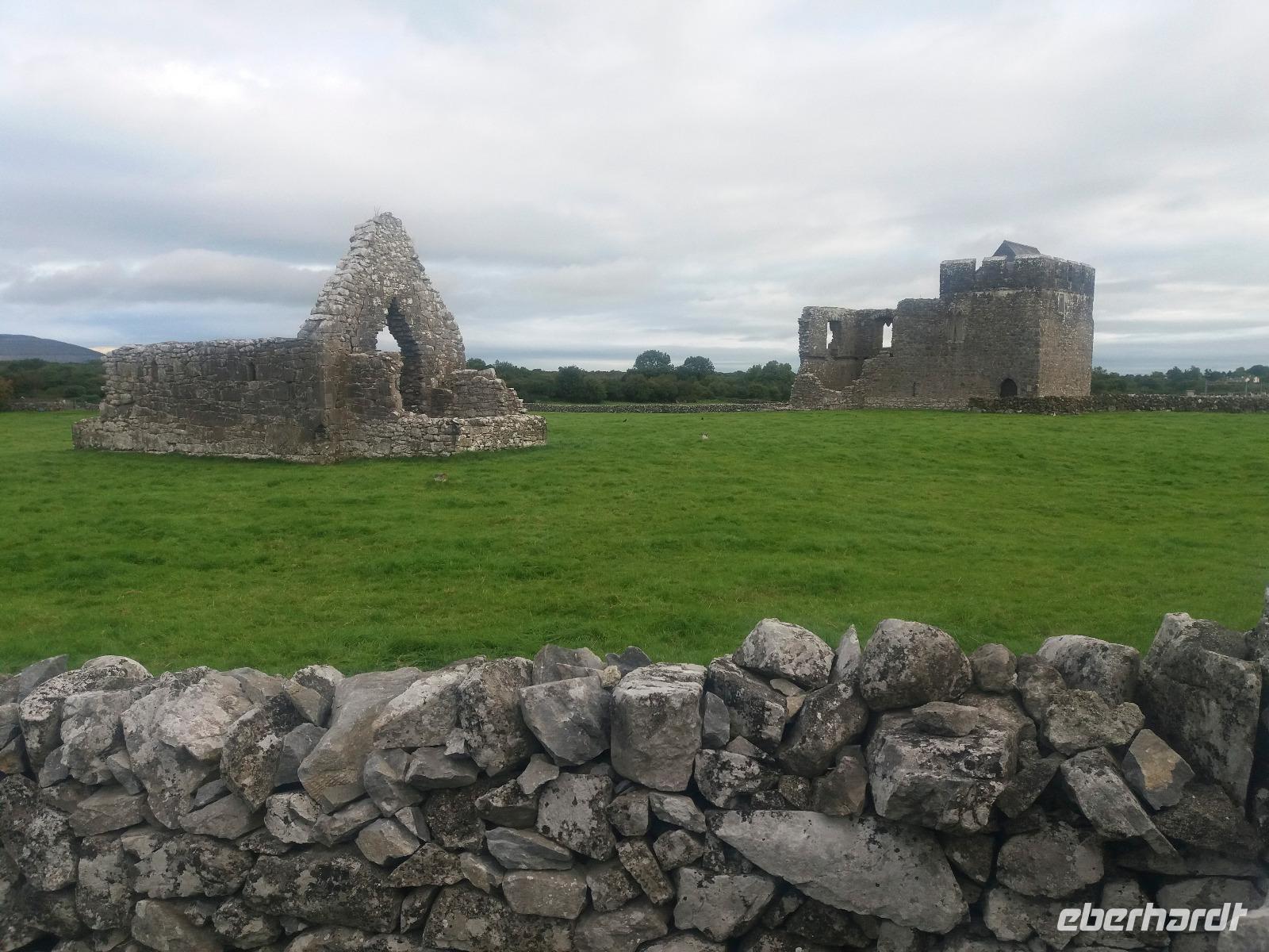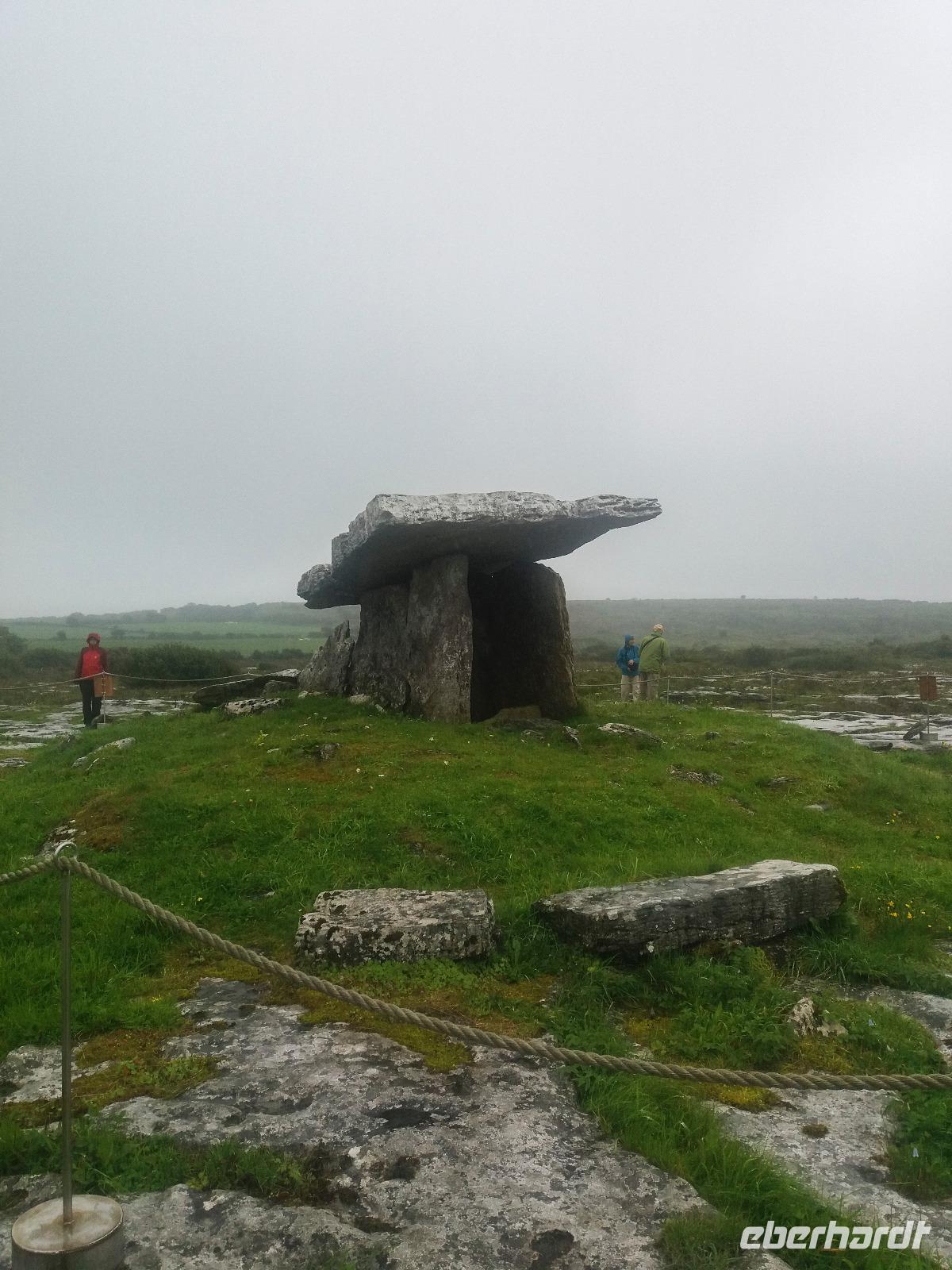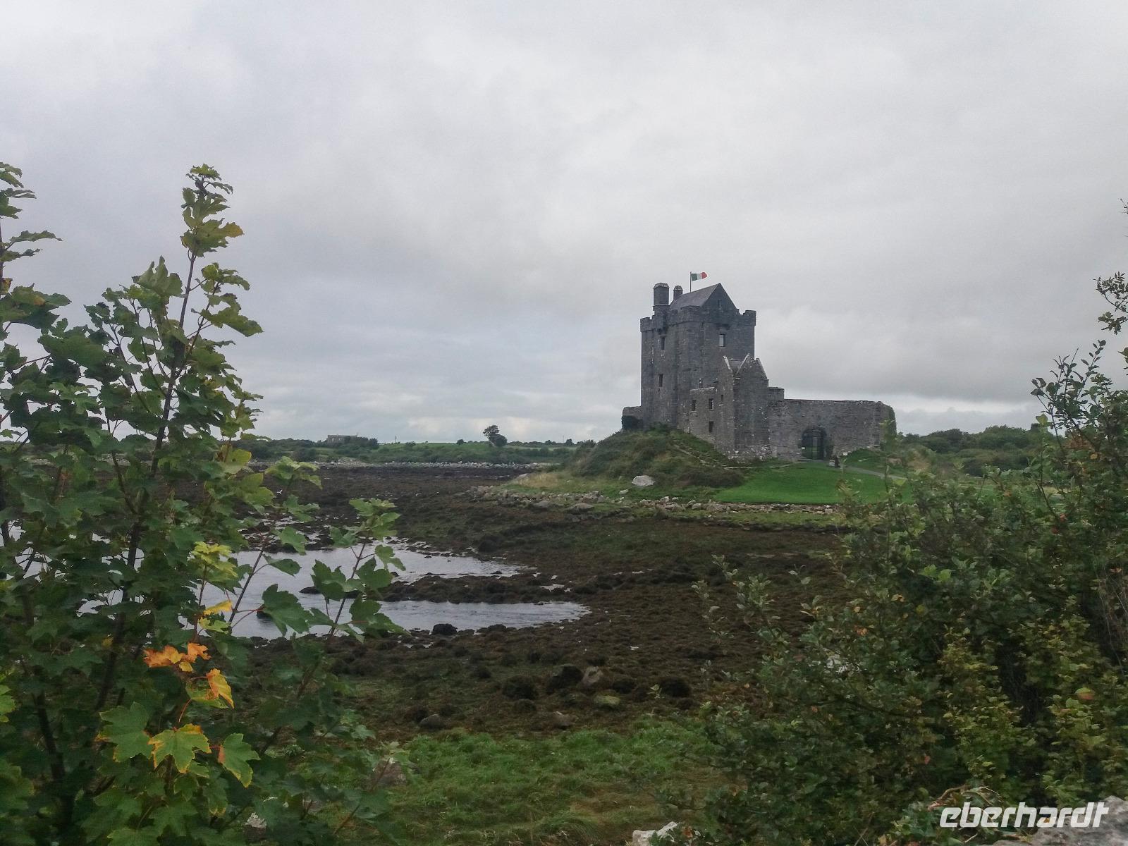Als erstes steht heute der Besuch der Klosterruine Kilmacduagh Monastery auf dem Plan. Hier sehen wir den höchsten Rundturm Irlands. Der über 32 Meter hohe Turm wird wegen seiner auffälligen Neigung nach Südwesten auch als der „schiefe Turm von Irland" bezeichnet. Als wir am Vormittag bei den beeindruckenden Cliffs of Moher ankommen merken wir schnell, dass man heute nicht viel sehen wird. Sowohl Nebel als auch Regen sind unsere Begleiter als wir uns den Weg zum O'Briens Tower bahnen. Als starker Wind hinzu kommt nutzen wir lieber die verbleibende Zeit für eine Tasse Tee und einen Scone im Besucherzeitrum, welches unauffällig in die Landschaft der Klippen eingebaut wurde. In den danebenliegenden Läden gibt es gute Musik und schönen Schmuck zu kaufen. Da sich das Wetter nicht bessert, verzichten wir heute auf unsere Wanderung und besuchen lieber das Burren Center in Kilfenora. Hier gibt es neben einem kleinen Film auch eine umfangreiche Ausstellung die wir uns ansehen können. Nachdem wir also im Besucherzentrum einiges über die Landschaft des Burren erfahren haben, besuchen wir den Poulnabrone Dolmes. Auf Dianes Empfehlung hin geht es im Anschluss noch zur Hazel Mountain Chocolate Factory (man will ja schließlich heute trotzdem etwas für den Körper tun!). Neben einer tollen Präsentation zur Herstellung von Schokolade können wir auch die verschiedenen Sorten verkosten. Nach dieser angenehmen Abwechslung geht es weiter zum nächsten Fotostopp. Das Dunguaire Castle liegt direkt an der Küste in Kinvara. Wie immer haben wir Glück und die nächste große Reisegruppe kommt erst an, wenn wir uns schon wieder auf den Weg machen.