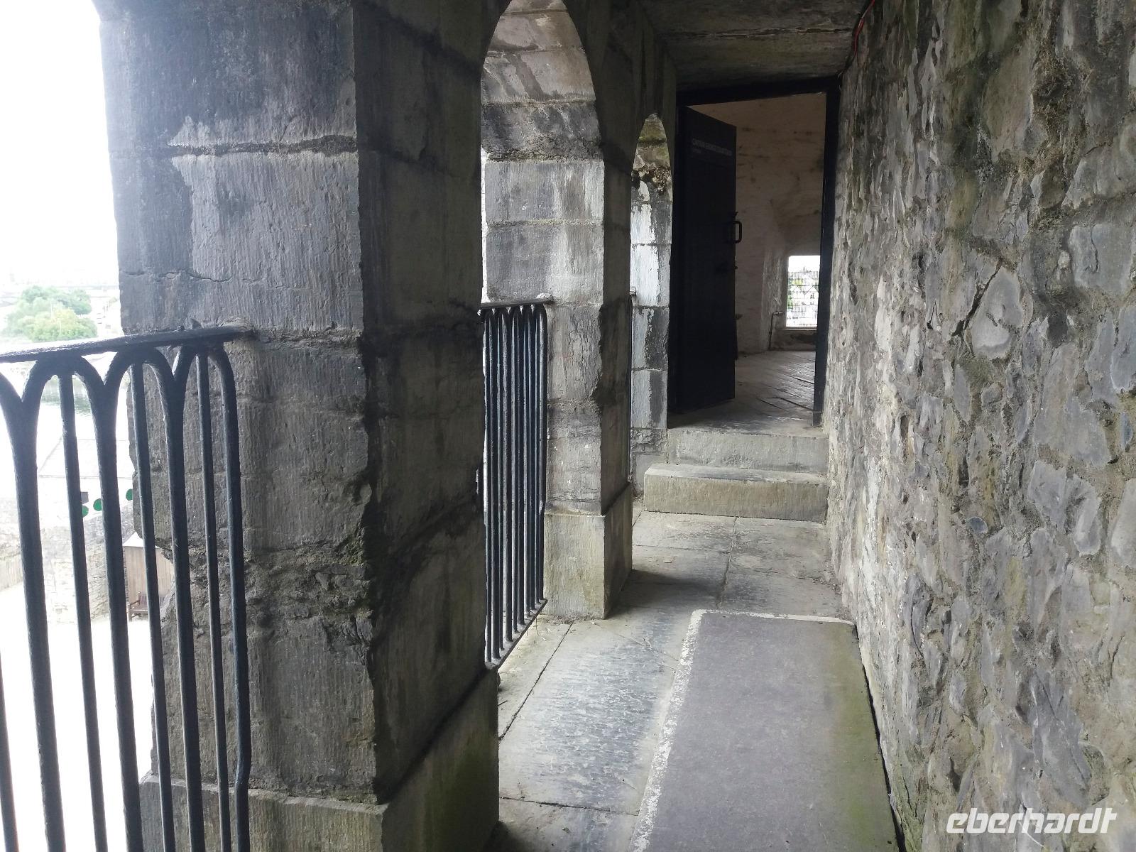 Auf unserem Weg nach Limerick machen wir Halt in Adare. Hier sehen wir uns die mit reetgedeckten Häuser auf der Mainstreet an. Heute sind kleine Läden und Restaurants hier untergebracht. Hinter einem großen schmiedeeisernen Tor sehen wir auch den Park des Adare Manor, einem 5-Sterne-Hotel von dem wir im Vorbeifahren allerdings nur die Zinnen sehen. Das Hauptaugenmerk des heutigen Tages ist Limerick und King John's Castle. Videopräsentationen, Modelle und Diagramme führen uns durch die Ausstellung der Burg, das Tunnelsystem hindurch und auf die Burgmauern hinauf. Von hier hat man einen tollen Ausblick auf Limerick und den Vertragsstein. Dieser befindet sich am anderen Ufer des Shannon und wurde im Jahre 1691 genutzt um darauf den Vertrag von Limerick zu unterzeichnen, welcher den Krieg zwischen den Jakobiten und Wilhelm von Oranien beendet. In Limerick verbringen wir auch unsere Mittagspause bevor es auf direktem Wege zum Irischen Nationalgestüt geht. Ein Mitarbeitet des Gestüts gibt uns eine Führung über das Gelände und im Anschluss bleibt noch Zeit durch den Japanischen Garten zu spazieren. Heute kommen wir auch wieder in unserem Hotel vom Anfang unserer Reise an. In Newtownmountkennedy verbringen wir die letzten beiden Nächte unserer Reise.
