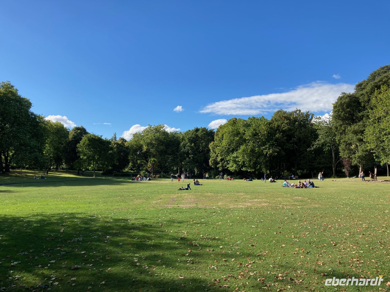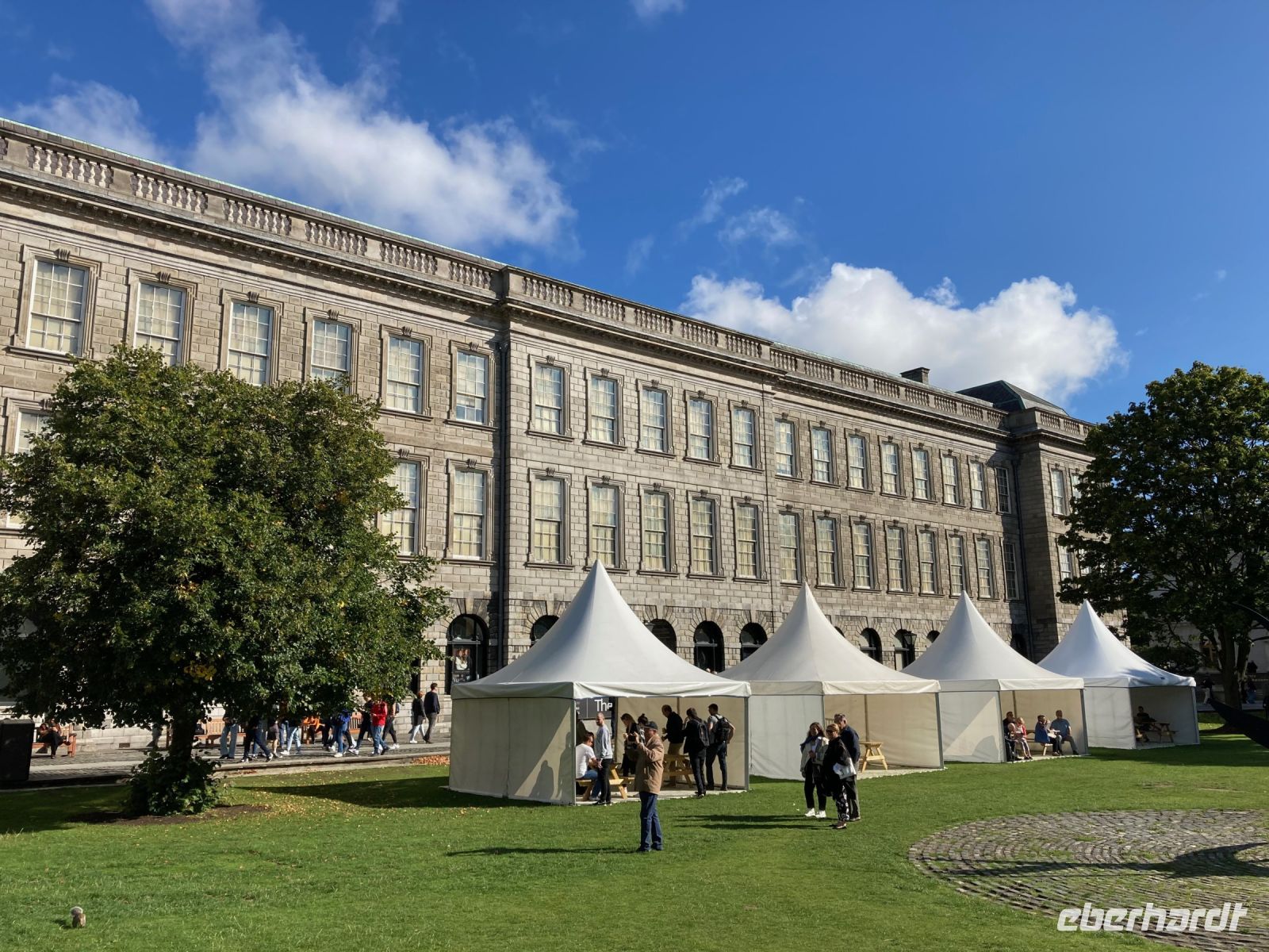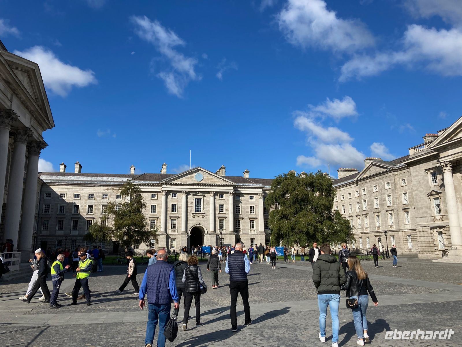 Voller Vorfreude treffen wir uns auf dem Flughafen BER, wo alles reibungslos läuft und wir mit genügend Pufferzeit nach der Sicherheits- und Passkontrolle auf unseren Flug nach Dublin warten. Der nach dem heiligen Kealin benannte Aer-Lingus-Flieger startet dann nur mit etwas Verspätung in Richtung Grüne Insel. Dank der Zeitverschiebung von einer Stunde kommen wir zur Mittagszeit auf dem sehr geschäftigen Flughafen von Dublin an und gönnen uns nach dem Abholen der Koffer erstmal eine kleine Kaffeepause. Wir werden sogar von Willy, dem Chef des Busunternehmens höchstpersönlich, vom Flughafen abgeholt und zu unserem Hotel im Stadtzentrum gefahren. Dort laden wir zwei weitere Gäste ein, die schon zwei Nächte in Dublin verbracht haben, sowie unsere Stadtführerin Monika. Mit ihr fahren wir mitten durch das Gelände der Guinessbrauerei hindurch zum Phoenix Park, der größten öffentlichen Parkanlage in Irland. Am Ashton Castle und am Papstkreuz machen wir zwei Pausen in der wunderschönen Parkanlage, bevor am Wohnsitz des irischen Präsidenten vorbei den Phoenix Park in Richtung Innenstadt verlassen. Willy fährt die O’Connell Street hinauf und am Hauptpostamt vorbei, dem Schauplatz des Osteraufstands, dreht dann eine Runde um den Parnell Square mit seinen hübschen georgianischen Stadthäusern und fährt dann auf der anderen Seite der O‘Connell Street zurück zum Fluss Liffey. Weiter geht es am Trinity College vorbei zum Merrion Square. Dank des schönen Wetters können wir hier einen weiteren kleinen Spaziergang zum Oscar-Wilde-Denkmal machen. Außerdem zeigt uns Monika die Nationalgalerie, Leinster House und viele schöne bunte Türen. Ganz schön viele Eindrücke für den ersten Tag! Zeit für etwas Entspannung im Hotel. Das sehr gute Abendessen im Hotel stimmt uns auch kulinarisch auf die nächsten gut zwei Wochen im Hotel ein. Einige Gäste sind sogar noch munter genug für einen Pubbesuch im Vergnügungsviertel Temple Bar. So kann die Reise gern weitergehen!