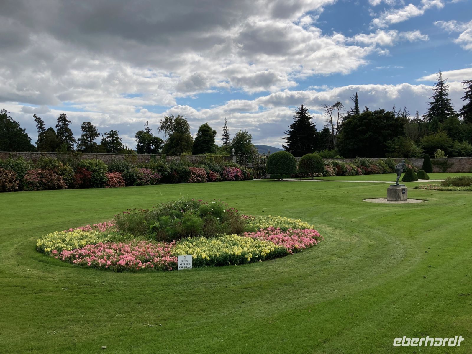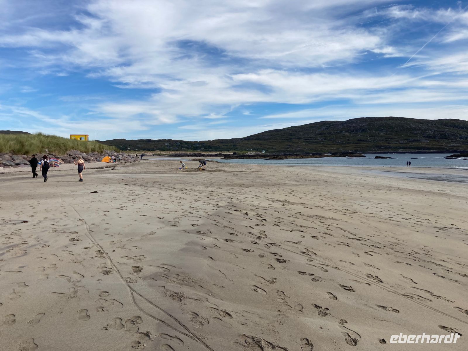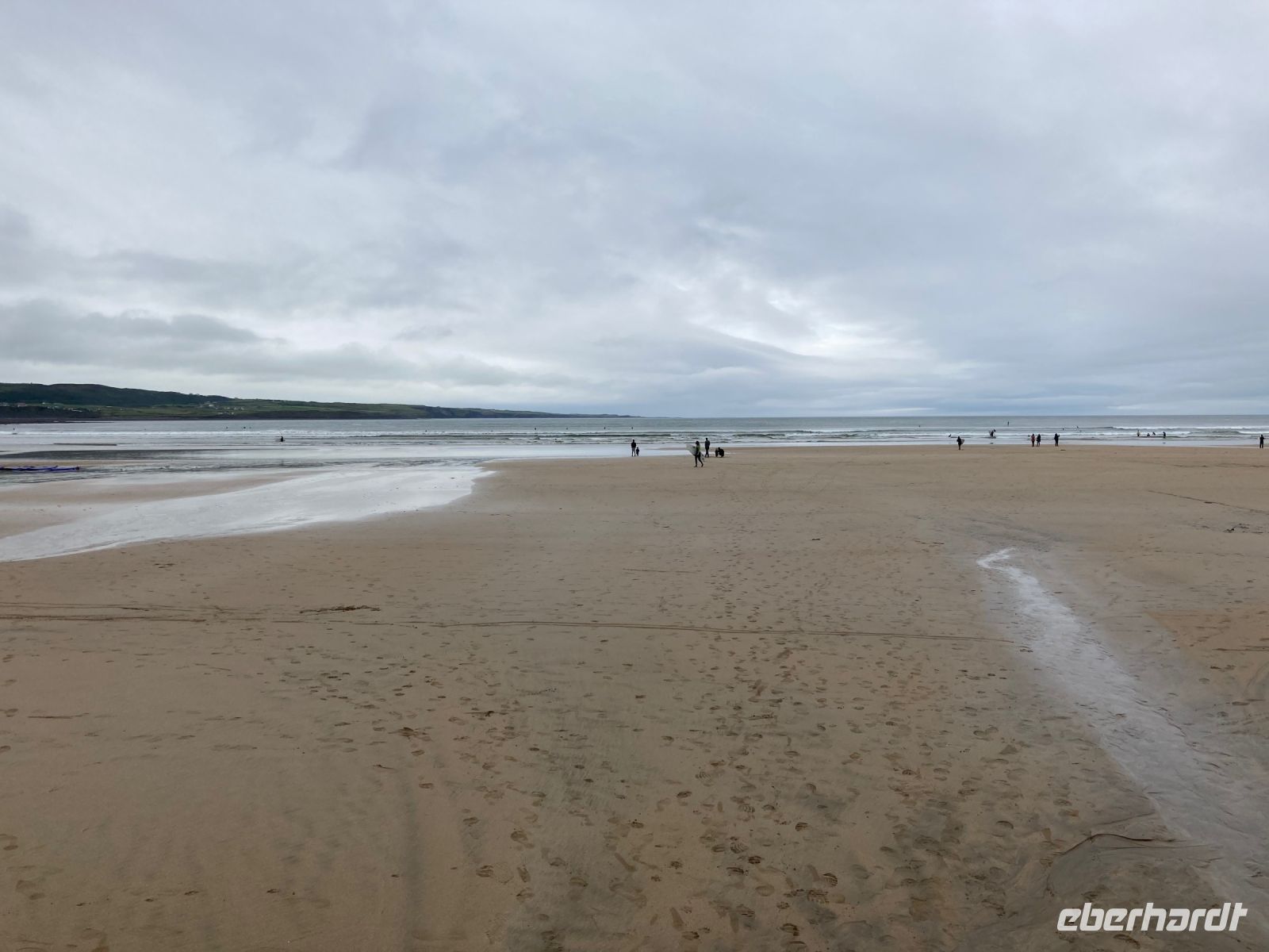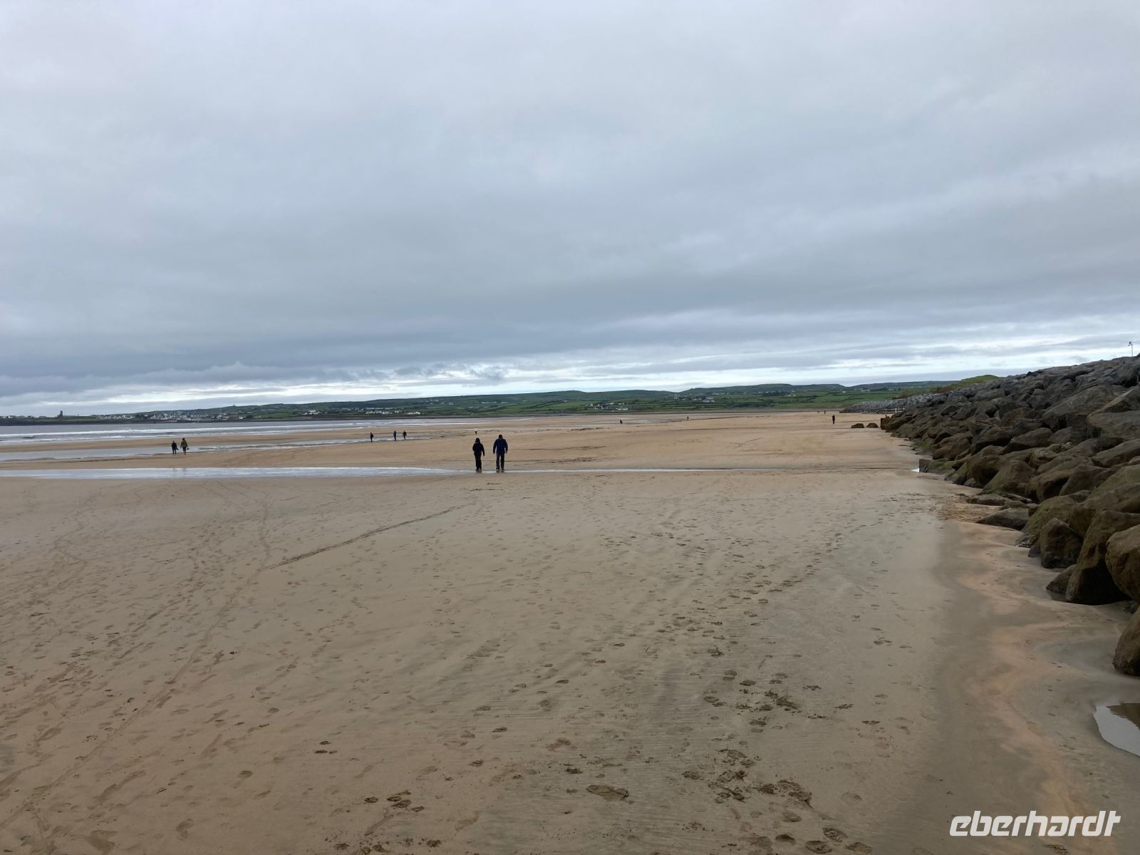 Gleich zwei Geburtstagskinder habe ich heute in meiner Reisegruppe. Sie bekommen natürlich zum Ehrentag eine kleine Aufmerksamkeit — und auch ein kleines Ständchen vom Eberhardt-Reisechor. Wie schön, dass heute auch unsere erste Wanderung ansteht. Dazu fahren wir in den wunderschönen Glenveagh-Nationalpark im Herzen Donegals. Ein moderner elektrischer Shuttlebus bringt uns zum kleinen Schlösschen, an dem unsere Wanderung beginnt. Sie führt entlang des Sees durch ein kleines Stückchen Urwald bis zu einer ehemaligen Fischerhütte, in der die Eigentümer des Glenveagh Castle früher ihrer Angelausrüstung verstauten. Nach einer kurzen Stärkungspause laufen wir zurück, warten unter dem Dach einer Schutzhütte kurz den kleinen Nieselregenschauer ab und wagen dann den Aufstieg zum Aussichtspunkt. Die Anstrengung wird mit Sonnenschein und einer fantastischen Aussicht über das ganze Tal belohnt. Wir sehen sogar einen Regenbogen! Der Abstieg führt uns dann direkt in den viktorianischen Garten. Wer möchte, kann vier weitere Kilometer zurück zum Besucherzentrum laufen, oder sich im Café ein Stück Schokoladenkuchen gönnen und dann den Shuttlebus nehmen. Auf dem Rückweg nach Letterkenny fahren wir einen Umweg, der uns am Mount Errigal vorbei bis zum wunderschönen Strand von Dunfanaghy an der Sheephaven Bay führt, den wir fast ganz für uns allein haben. Einige besonders mutige Gäste stürzen sich sogar in die Fluten des Nordatlantiks. Nachdem wir alle bei diesem Strandbesuch neue Energie getankt haben, fährt uns Donal durch den einsetzenden irischen Regen zurück nach Letterkenny. Wieder einmal haben wir Glück gehabt, dass der Regen bis zum Ende des Programms gewartet hat.