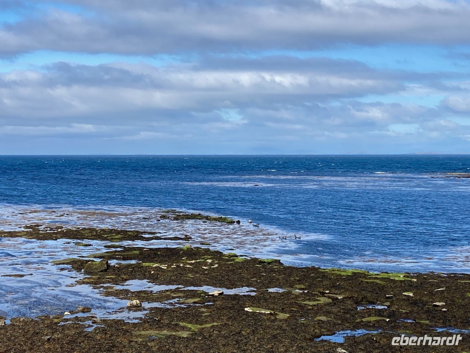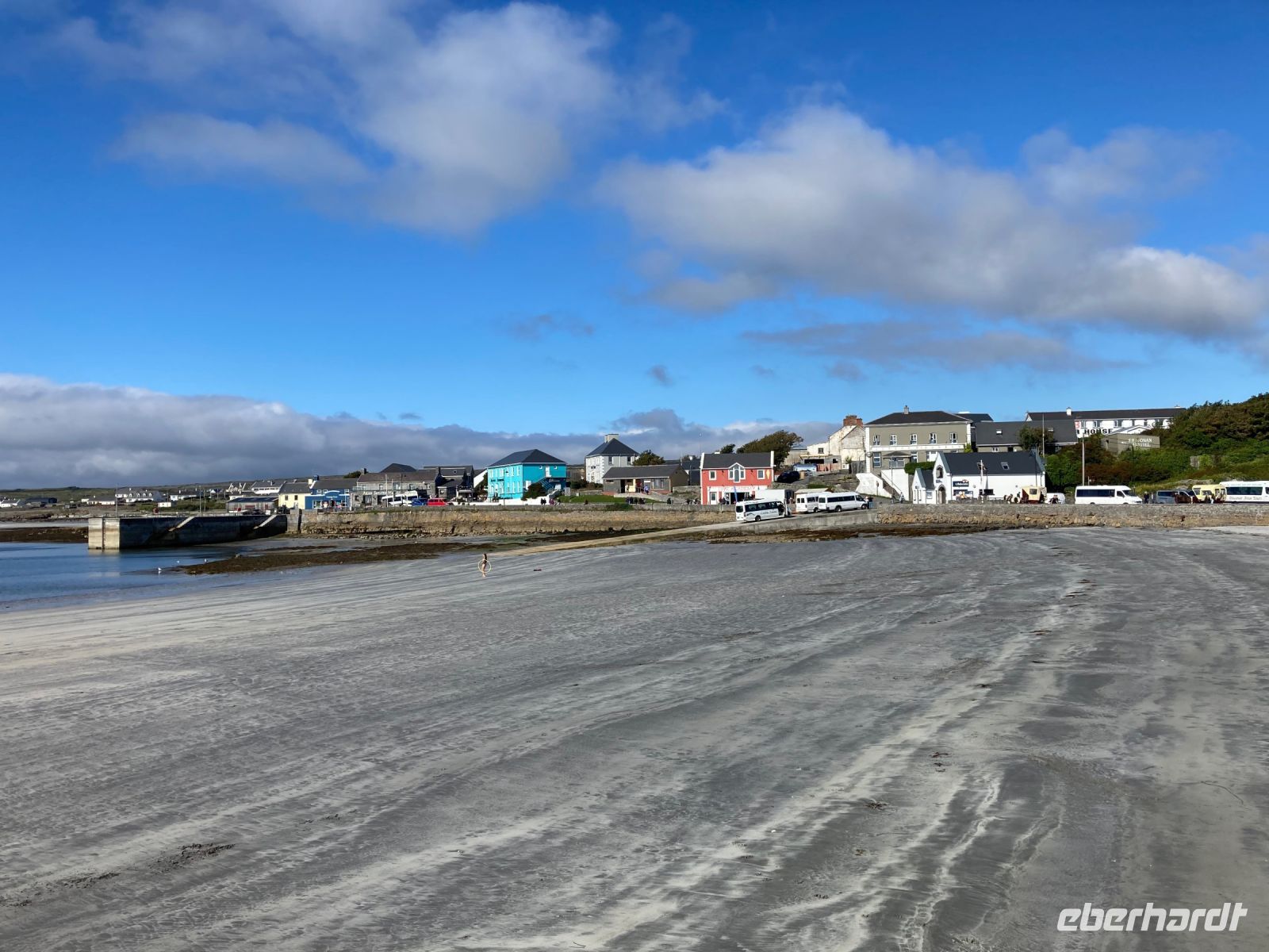 Mit einem neuen Bus und einem strahlenden Lächeln werden wir am Morgen von Donal begrüßt: „Hello, my friends! New bus!“ Außerdem freut er sich, dass wir auf die Aran Islands fahren, denn es ist eine seiner Lieblingswanderungen. Von Rossaveel fahren wir mit der Fähre nach Kilronan auf der größten Aran-Insel Inishmore. Auf dem Hinweg ist der Seegang schon merklich spürbar, aber wir stecken es alle gut weg. Nach einem kurzen Verpflegungsstopp im einzigen Supermarkt auf der Insel brechen wir bei besten Wetter zu unserer Wanderung entlang der Küstenstraße auf. Wieder habe ich meine Sonnencreme vergessen, denn wer konnte schon ahnen, dass das Wetter im September auf den Inseln noch so hochsommerlich wird? Einige Gäste haben sogar schon in freudiger Erwartung die Badehose dabei. Unsere Mittagspause findet an der Robbenkolonie statt. Die Kegelrobben liegen bei Ebbe träge auf den Felsen und schauen neugierig (hungrig?) zu uns herüber. Zwischen ihnen suchen zwei Graureiher elegant staksend nach Beute. Der Wanderweg führt wenig später von der Straße weg quer über ein paar Felder. Hier tritt der Kalkstein deutlich zutage und wir sehen, wie kahl die Inseln durch die menschliche Besiedelung geworden sind. Bald erreichen wir dann den Strand in der Mitte der Insel und kurz danach die kleine Ansiedlung unterhalb des uralten Steinforts Dun Aengus. Fast alle kommen noch mit hinauf und wagen sich für ein gutes Foto mutig an den Rand der Klippen. Es bleibt noch Zeit für eine ausgedehnte Kaffeepause, ein leckeres Eis oder eine Runde Schwimmen im Meer. Mit dem Shuttlebus werden wir zurück nach Kilronan gebracht, wo schon die Fähre zurück nach Rossaveal auf uns wartet. Donal fährt uns dann zurück ins Hotel. Das tolle Abendessen in Leenane bildet den passenden Abschluss eines rundum gelungenen Tages.