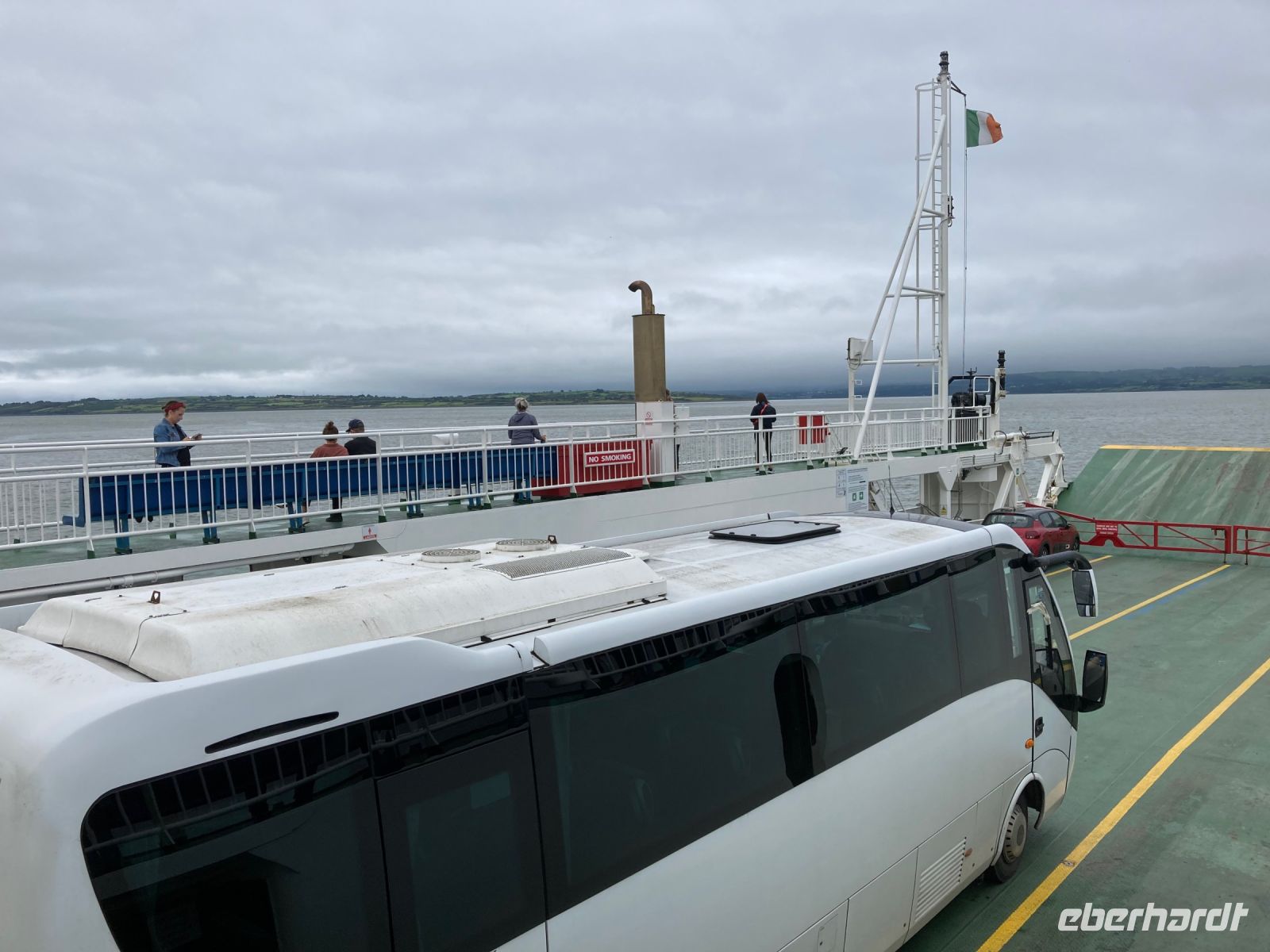 Heute ziehen wir unsere kleine Wanderung durch, selbst wenn es am Morgen noch ein bisschen regnet. Doch im Coole Park, dem ehemaligen Landsitz der Lady Gregory, merken wir unter dem schützenden Dach des Waldes nicht allzuviel davon. Wir können uns gut vorstellen, warum es so viele berühmte Schriftsteller, Poeten und Maler hierher gezogen hat, die sich alle in der Rinde des Autograph Tree verewigt haben. Es ist wahrlich ein schönes und inspirierendes Fleckchen Erde. Auch der Strand von Lahinch, an dem wir heute unsere Mittagspause machen, gefällt meinen Gästen sehr und sie würden gerne noch länger bleiben, die frische Seeluft genießen und den Schülern der Surfschule zuschauen. Jedoch müssen wir die Fähre um 14 Uhr über den Shannon kriegen, weshalb wir leider nach einer guten Stunde aufbrechen müssen. Es hilft leider nichts. Immerhin wartet im County Kerry ein besonderes Unikum auf uns: die Lartigue Monorail. Die weltweit einmalige Einschienenbahn verband die Orte Listowel und Ballybunion. Das Museum wird von echten Eisenbahnenthusiasten geführt, die uns auf der 500 Meter langen rekonstruierten Strecke die Funktionsweise der Lokomotive und Drehscheiben detailliert vorführen. Und während uns der Fahrtwind ins Gesicht und fast die Haare vom Kopf weht, können wir Donal zuschauen, wie er den Bus reinigt. Nach einer weiteren halben Stunde Fahrt mit dem nun regelrecht strahlenden weißen Bus erreichen wir dann schon Tralee, die Hauptstadt des Counties Kerry. Unser Abendessen ist heute etwas zeitiger, denn wir besuchen am Abend noch die Show „Celtic Steps“ mit irischer Musik, tollen Sängerinnen und irischem Tanz auf Weltklasseniveau. Auch Donal kommt mit und ist als Ire ebenso begeistert wie wir.