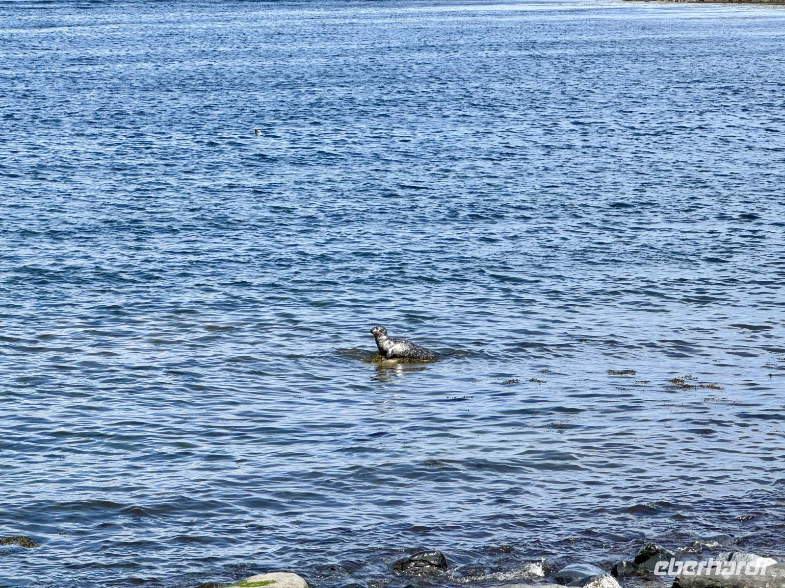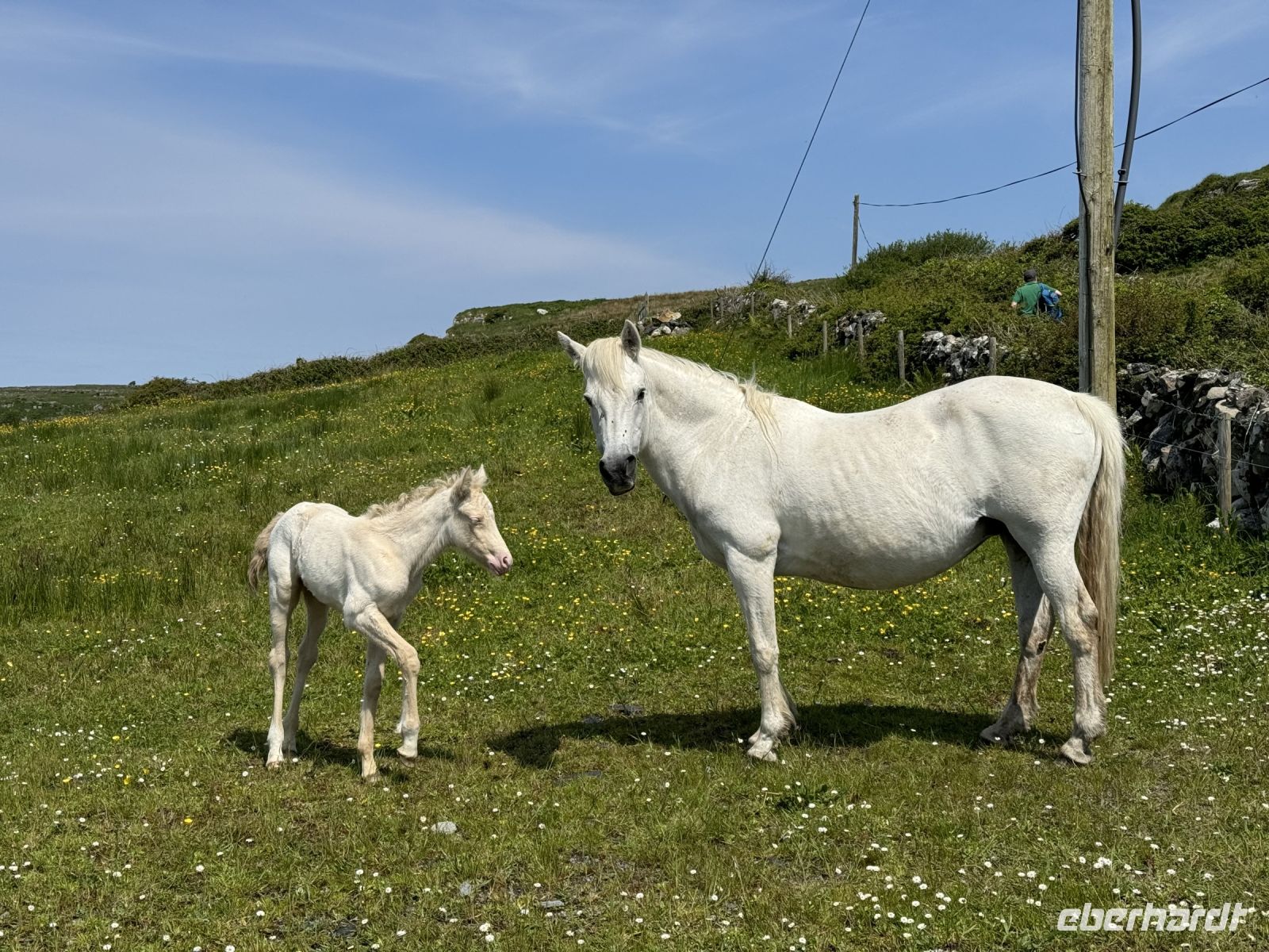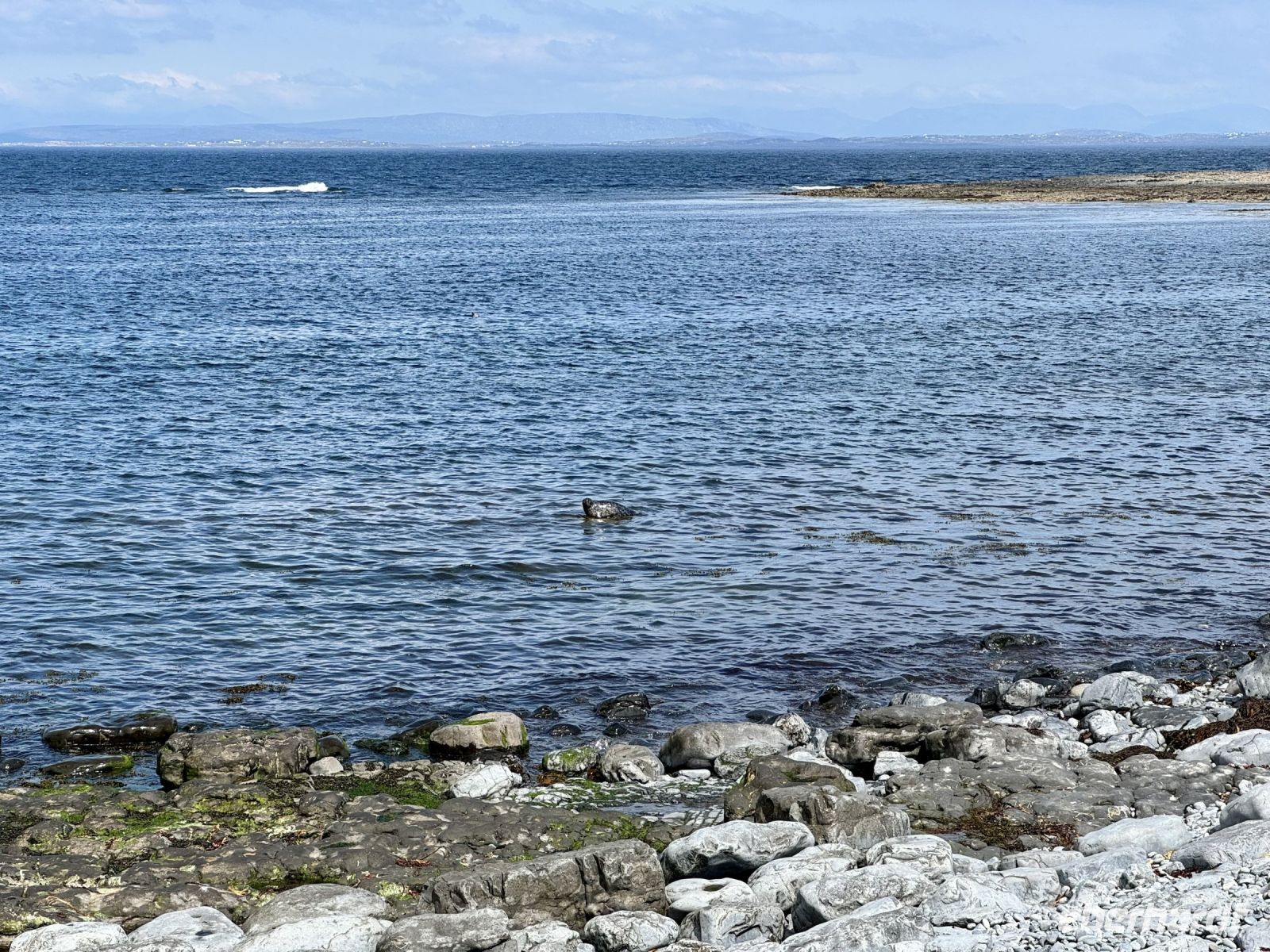 Als wir am Morgen zu unserem Tagesausflug auf die Aran Islands aufbrechen, hängen Wolken im Killary Harbour und es regnet leicht. Normalzustand im Fjord, der als regenreichste Gegend Irlands gilt. Viel mehr beunruhigen mich die angekündigten Windböen bis zum Mittag, vor allem hinsichtlich unserer Überfahrt mit der Fähre. Es bliebt jedoch sehr ruhig und wir kommen wohlbehalten und gut gelaunt auf der größten Insel Inishmor an. Wir beginnen auch gleich mit unserer Wanderung auf der Küstenstraße, immer entlang der Trockensteinmauern. Noch weht ein kräftiges Lüftchen; im Tagesverlauf nimmt der Wind aber immer weiter ab. Sonne und Wolken wechseln sich munter ab, weshalb wir ebenfalls munter wechseln zwischen Jacke, keine Jacke, Sonnenbrille, keine Sonnenbrille. Die vielen Wiesen, die in voller Blüte stehen, erfreuen unser Herz, ebenso die vielen Tierbegegnungen mit Pferden und Kühen, darunter auch jungen Kälbern. Und plötzlich ragt da eine Kegelrobbe aus dem Wasser, räkelt sich auf einem Felsen hin und her, ein bisschen wie beim Yoga-Unterricht. Wir haben also die Robbenkolonie und damit den Platz für unsere Mittagspause erreicht. Die Sandwiches und das gestern gekaufte Obst werden ausgepackt. Ab und zu schaut neugierig ein weiterer Robbenkopf aus dem Wasser. Das steigt derweil immer weiter an — die Flut kehrt zurück — und auch unsere Yoga-Robbe wird gezwungen, ihren Platz zu räumen und abzutauchen. Für uns das Zeichen, wieder aufzubrechen. Bis zum Steinfort Dun Aengus liegen noch ein paar Kilometer vor uns. Wir verlassen alsbald die Küstenstraße und weichen auf den Pfad aus, der parallel dazu etwas oberhalb verläuft. Neugierig guckt ein Pferdekopf über die Mauer und begutachtet die Neuankömmlinge. Woher mögen diese Wandersleute stammen? Und haben sie vielleicht Futter für mich dabei? Eine Doppelreihe Trockensteinmauer verhindert allerdings ein näheres Kennenlernen und wir ziehen in Richtung Steinfort weiter, kommen am schönen Inselstrand vorbei (niemand ist heute allerdings „mad enough to go in“), erreichen dann schließlich die rettende Eisdiele und das Café. Halt, es fehlt noch der letzte Aufstieg nach Dun Aengus, das hoch oben auf den Klippen thront. Doch auch das letzte Wegstück schaffen wir mit Bravour! Steil geht es nach unten am Rand der Klippen. Wir wahren lieber einen entsprechenden Sicherheitsabstand, denn kein Zaun, keine Mauer verhindert hier den möglichen Sturz in die Tiefe. Eine französische Schulklasse strömt aus der inneren Einfriedung heraus, wir danach hinein und dann haben wir das Innere der uralten Festung fast für uns. Das Café am kleinen Inselmarktplatz stellt sich nach dem Abstieg schnell als favorisierter Anlaufpunkt für die ganze Gruppe heraus. Zu gut klingt jetzt ein Cappuccino, vielleicht gepaart mit einem riesigen Stück Kuchen? Bloß nicht zu viel essen, denn schließlich wartet im Leenane Hotel noch einmal ein sehr leckeres Abendmenü mit großen Portionen auf uns. Der Insulaner Owen fährt uns mit seinem Shuttlebus zurück zum Hafen von Kilronan und sorgt mit seinem Streckenkommentar für heiteres Gelächter. Nachdem wir den Financial District der Aran Islands durchquert haben (die einzige Bank), steigen wir in der „Metropolis“ aus. „Until next year!“, werden wir verabschiedet. Warum eigentlich nicht? Mit der Fähre geht es zurück nach Rossaveal. Donal holt unseren Bus vom Parkplatz ab und fährt uns in rund 45 Minuten zurück zum Leenane Hotel. Wir tauchen derweil in die keltische Sagenwelt ab und gelangen dabei in das Reich der Elfen und Feen …