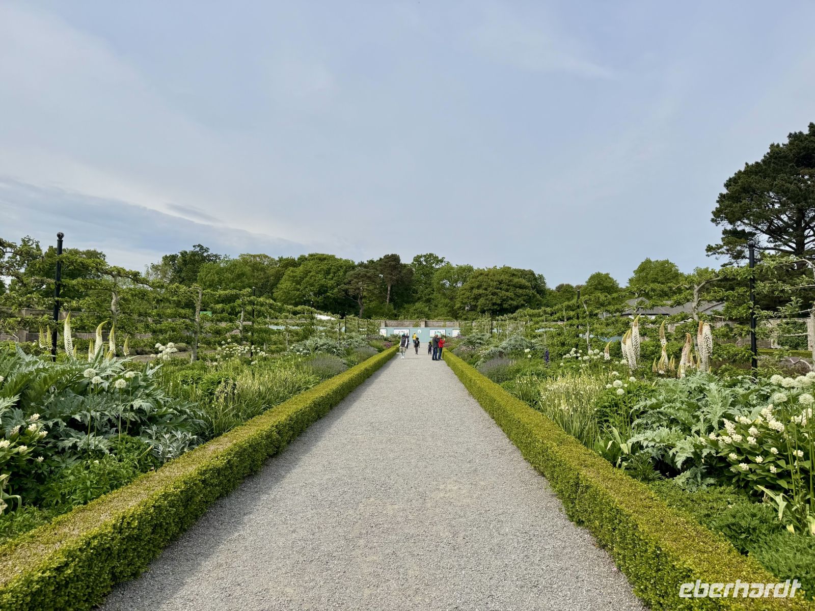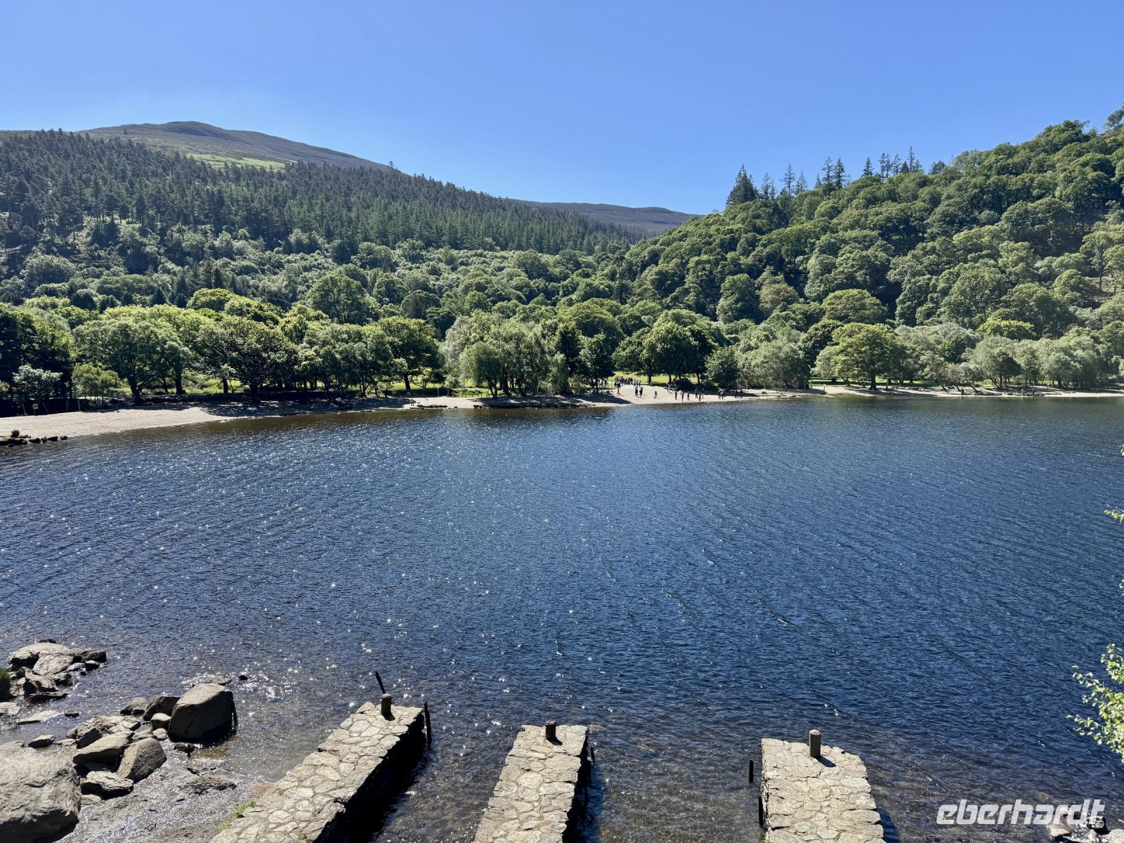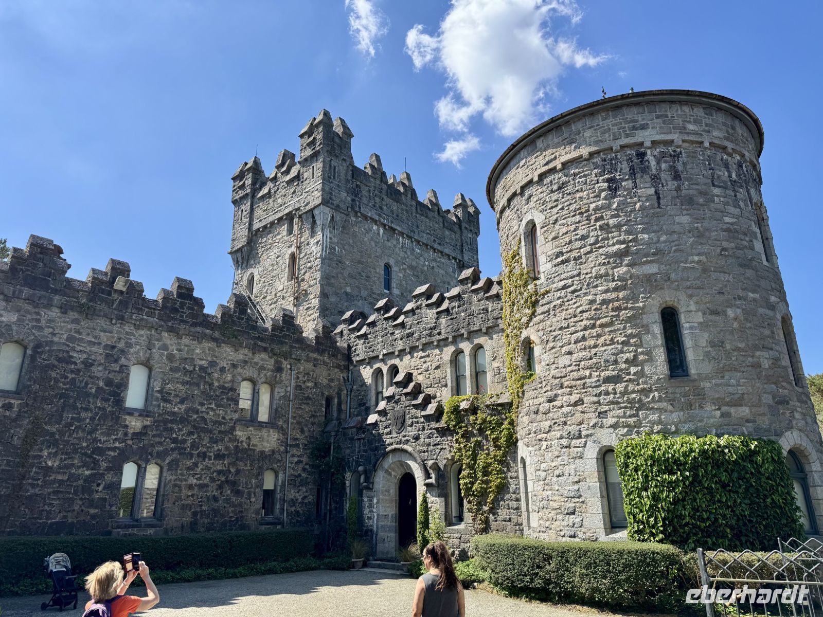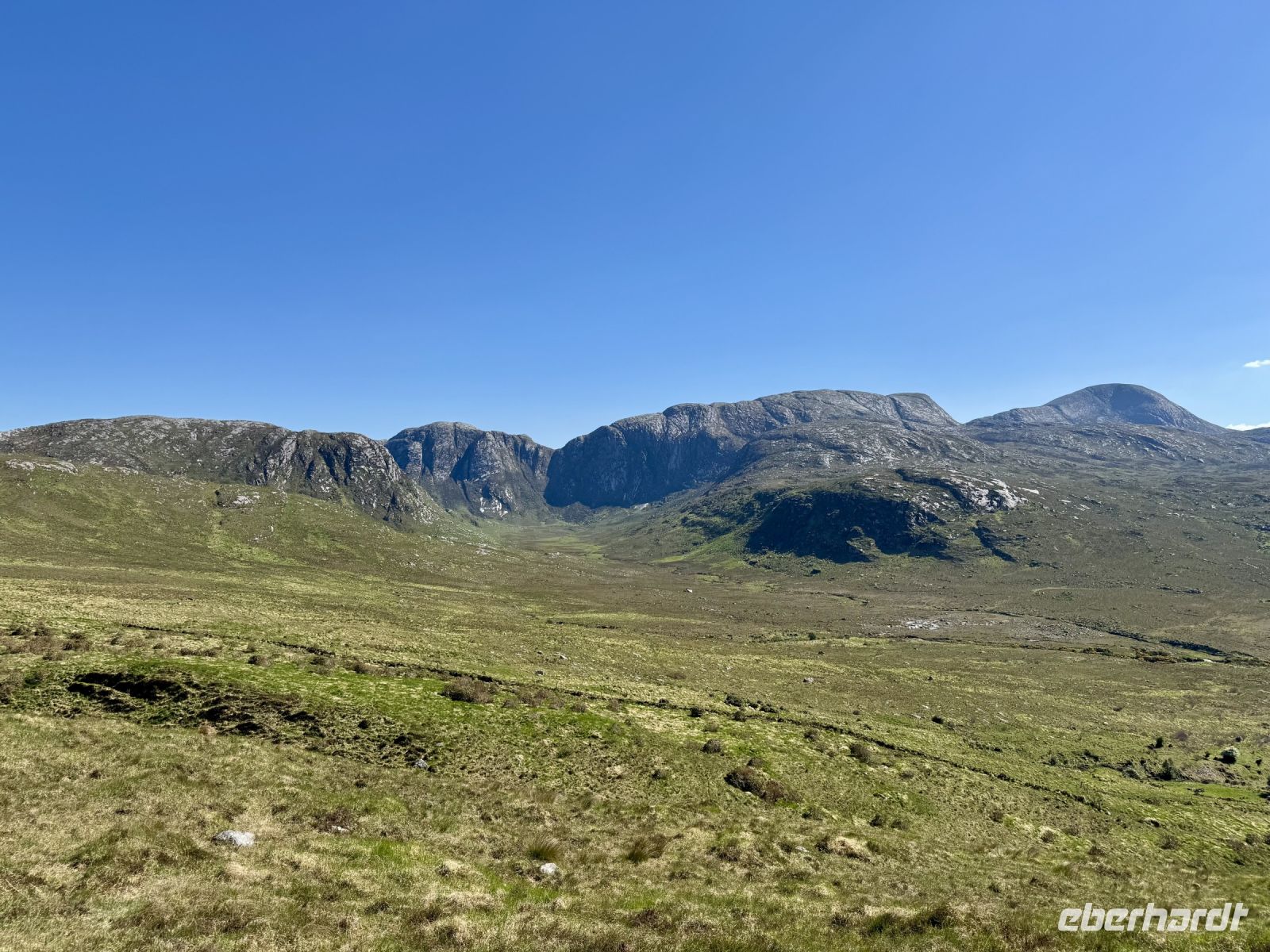 Pünktlich zur ersten Wanderung haben wir perfektes Urlaubswetter. Wobei, eigentlich ist es schon fast zu warm. Wir glauben uns eher in Italien, als wir den Glenveagh-Nationalpark am Morgen bei fast schon 20 Grad und Sonnenschein und wolkenlosem blauen Himmel erreichen. Ein sehr schön gemachter kurzer Film stimmt uns auf unseren Besuch dieses herrlichen Kleinods inmitten der Derryveagh Mountains ein. Mit dem Shuttlebus fahren wir zum Schloss und nehmen die ersten Eindrücke in uns auf. Unsere Wanderung führt uns immer am Lough Veagh entlang durch ein kleines Wäldchen. An der ehemaligen Jagdhütte machen wir eine kurze Pause und genießen die Ruhe und die dramatische Landschaft. Auf dem Parkplatz standen zwar noch andere Busse, doch bis zum Ende des Sees verirren sich nur wenige andere Touristen. Es herrscht eine wohltuende Stille, nur unterbrochen vom Gezwitscher der Vögel. Fast alle kommen mit zum Aussichtspunkt hinauf und werden mit einer tollen Sicht auf Tal und Schloss für den steilen Aufstieg belohnt. Ein perfekter Platz für Erinnerungsfotos. Nun steigen wir hinab in die Gartenanlagen. Über die Italienische Terrasse und den Belgischen Spazierweg gelangen wir in den ummauerten Garten und damit zurück zum Schloss. Einen Tee oder Kaffee in der Teestube und einen kleinen Happen zu essen haben wir uns jetzt redlich verdient. Nach ihrer Freizeit für den Besuch der Parkanlage und des viktorianischen ummauerten Gartens stehen meine Gäste vor der Entscheidung: nochmal vier Kilometer laufen oder doch lieber den Shuttlebus zurück zum Besucherzentrum nehmen? Erfreulich viele meiner Gäste entscheiden sich für den zusätzlichen Spaziergang im Sonnenschein. Im Anschluss an unseren Aufenthalt im Nationalpark unternehmen wir noch eine kleine Rundfahrt durch den nördlichen Teil von Donegal. Bei einem Fotostopp oberhalb eines verwunschenen Tals kommen meine Gäste ins Staunen. Und auch dem Mount Errigal, dem höchsten Berg der Grafschaft, widmen wir einen eigenen Fotostopp. Schließlich präsentiert er sich heute von seiner besten Seite! Überall blüht der Stechginster, kleine Lämmer hüpfen über die Wiese und mit meinem Herzen um die Wette — hach, wie schön ist Irland! Ein Abstecher zum herrlichen Sandstrand von Dunfanaghy rundet unseren traumhaften Tag ab. Die Luft ist wunderbar sauber, das Rauschen der Wellen macht glücklich, die Sandkristalle glitzern in der Sonne. Zum Baden im Nordatlantik ist es jedoch noch etwas frisch. Nur die Füße dürfen rein. Bis Letterkenny fahren wir dann noch eine halbe Stunde und freuen uns schon auf unser zweites Abendessen im Hotel — natürlich mit einer riesengroßen Portion Kartoffelbrei!