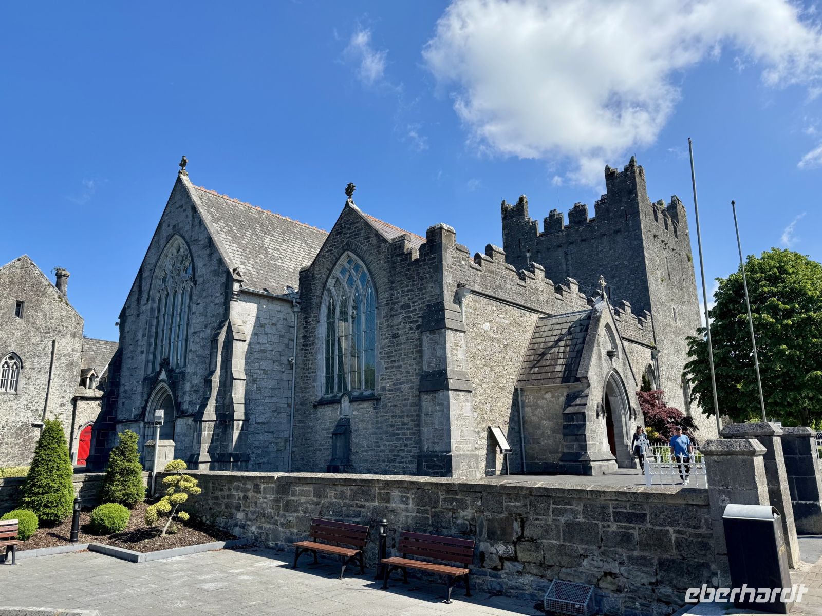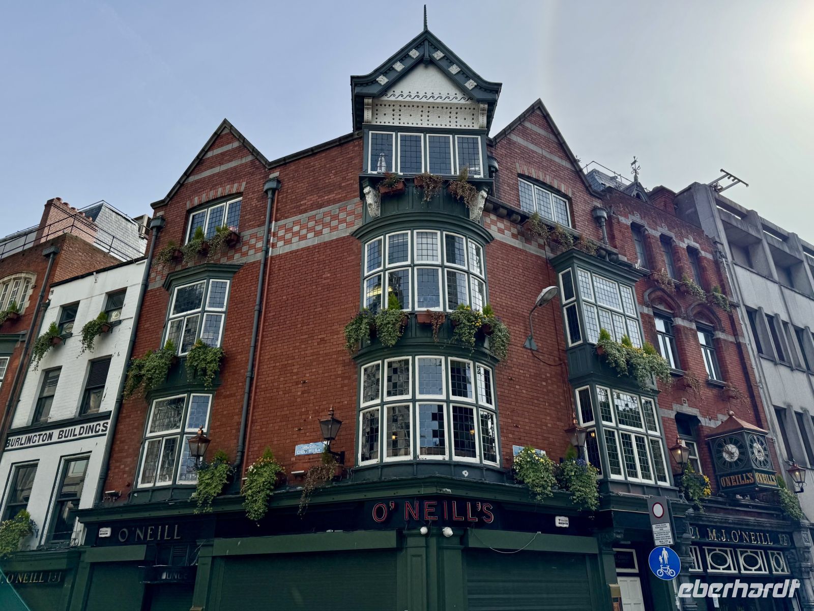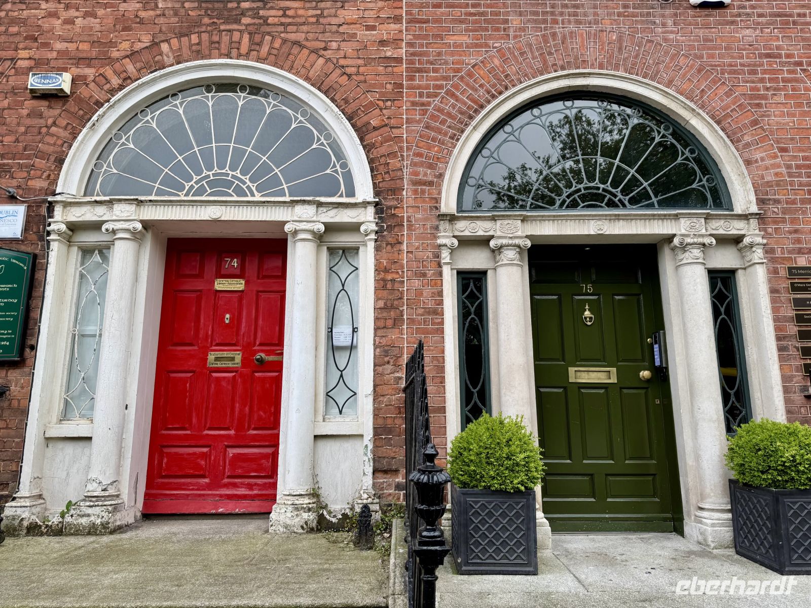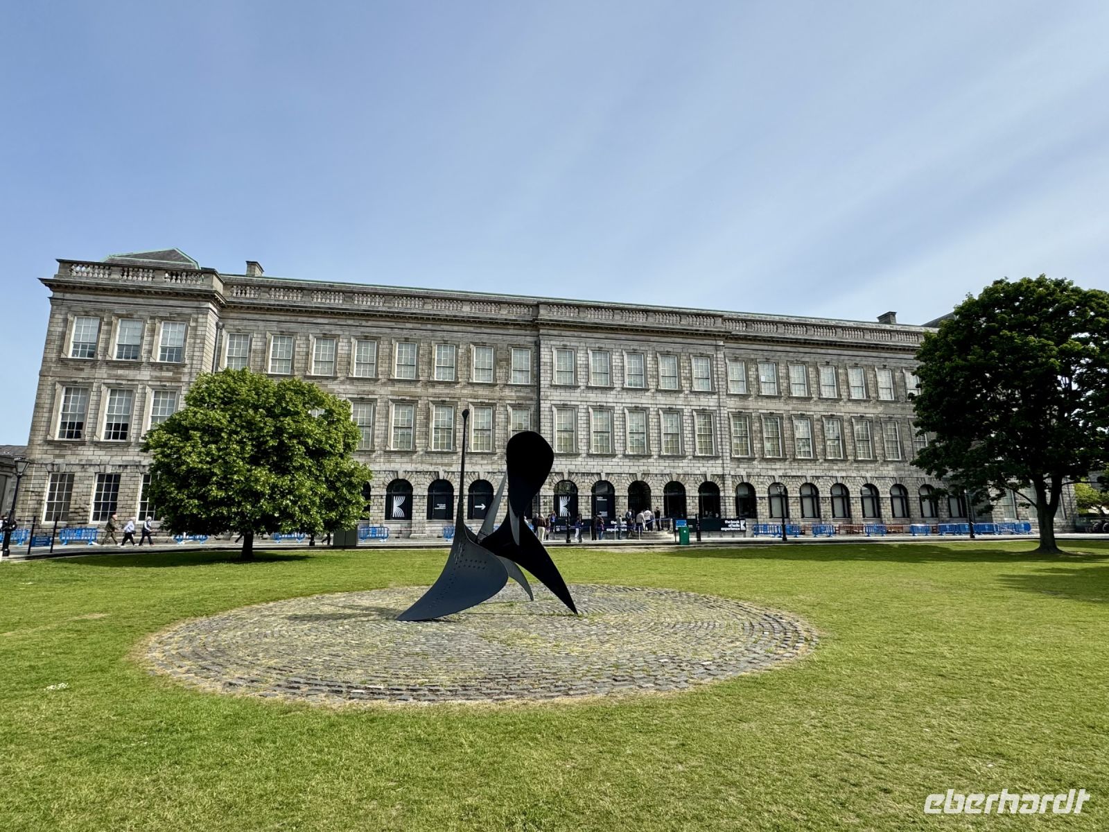 Zu Beginn des Tages hatte ich schon das Gefühl, in Deutschland und Irland wäre der große Arbeits- bzw. Serviceeifer ausgebrochen: Der Schalter von Aer Lingus am BER war vorzeitig besetzt, es gab nur eine ganz kurze Warteschlange. Bei der Sicherheitskontrolle niemand (!) vor mir. Landung in Dublin 30 Minuten zu zeitig, die Koffer sind schon da, nachdem wir die Passkontrolle — wieder ohne Schlange — passiert haben. Die Koffer aus Frankfurt landen dann zwar auf dem falschen Band, aber das kann ja mal passieren. Der dritte und letzte Flug, mit fünf weiteren Gästen aus München kommend, rückt unser Weltbild aber wieder zurecht: Verspätung und langes Warten auf die Koffer. Unsere Fahrerin Heike bringt uns ins Zentrum, wo wir an der Hugh Lane Gallery unsere Stadtführerin Nicole aufsammeln, die freundlicherweise sehr spontan als Krankheitsvertretung eingesprungen ist. Zwei, drei Sätze, dann steht der Plan für die Stadtrundfahrt. Über die Guinness-Brauerei fahren wir zunächst zum Phoenix Park. Hier dürfen wir aussteigen und den ummauerten Garten besichtigen. Auf der Fahrt hinaus sehen wir außerdem den Wohnsitz des Präsidenten. Vorbei am Trinity College geht es weiter zum Merrion Square. Oscar Wilde liegt immer noch faul auf seinem Stein und blickt mürrisch auf sein Elternhaus. Auch hier dürfen wir aussteigen — diesmal, um die berühmten bunten Türen der Georgianischen Stadthäuser zu fotografieren. Auf dem Weg zum Hotel fährt uns Heike schließlich noch am großen Stadtpark St Stephen's Green vorbei. Bis zum Abendessen verbleibt noch Zeit für einen Abstecher zur St Patrick’s Cathedral, die sich nur drei, vier Minuten vom Hotel entfernt befindet. Beim ersten gemeinsamen Abendessen im Hotel bekommen wir die erste Portion Kartoffelbrei auf unserer Reise und lernen unsere Mitreisenden kennen. Freundlicherweise hat der angekündigte Regen bis jetzt gewartet. Er hält auch einige Gäste nicht davon ab, sich im Vergnügungsviertel Temple Bar ins Dubliner Nachtleben zu stürzen.