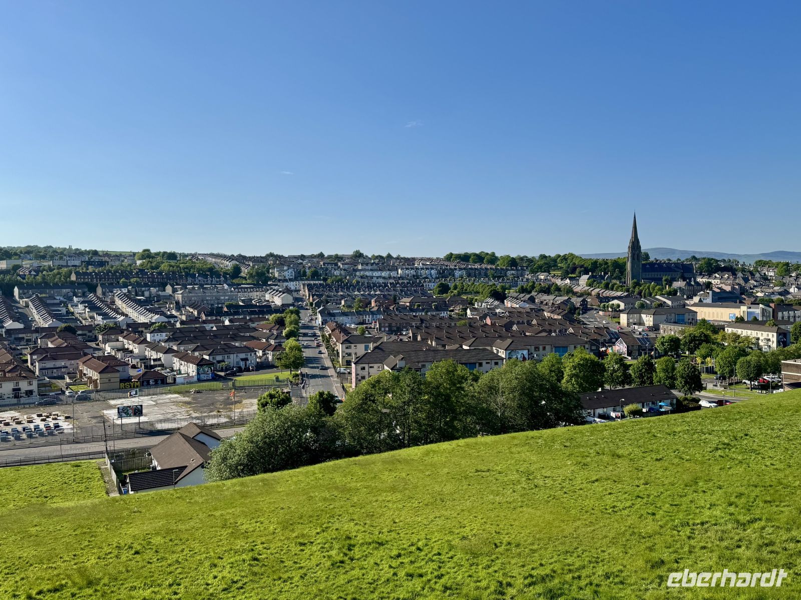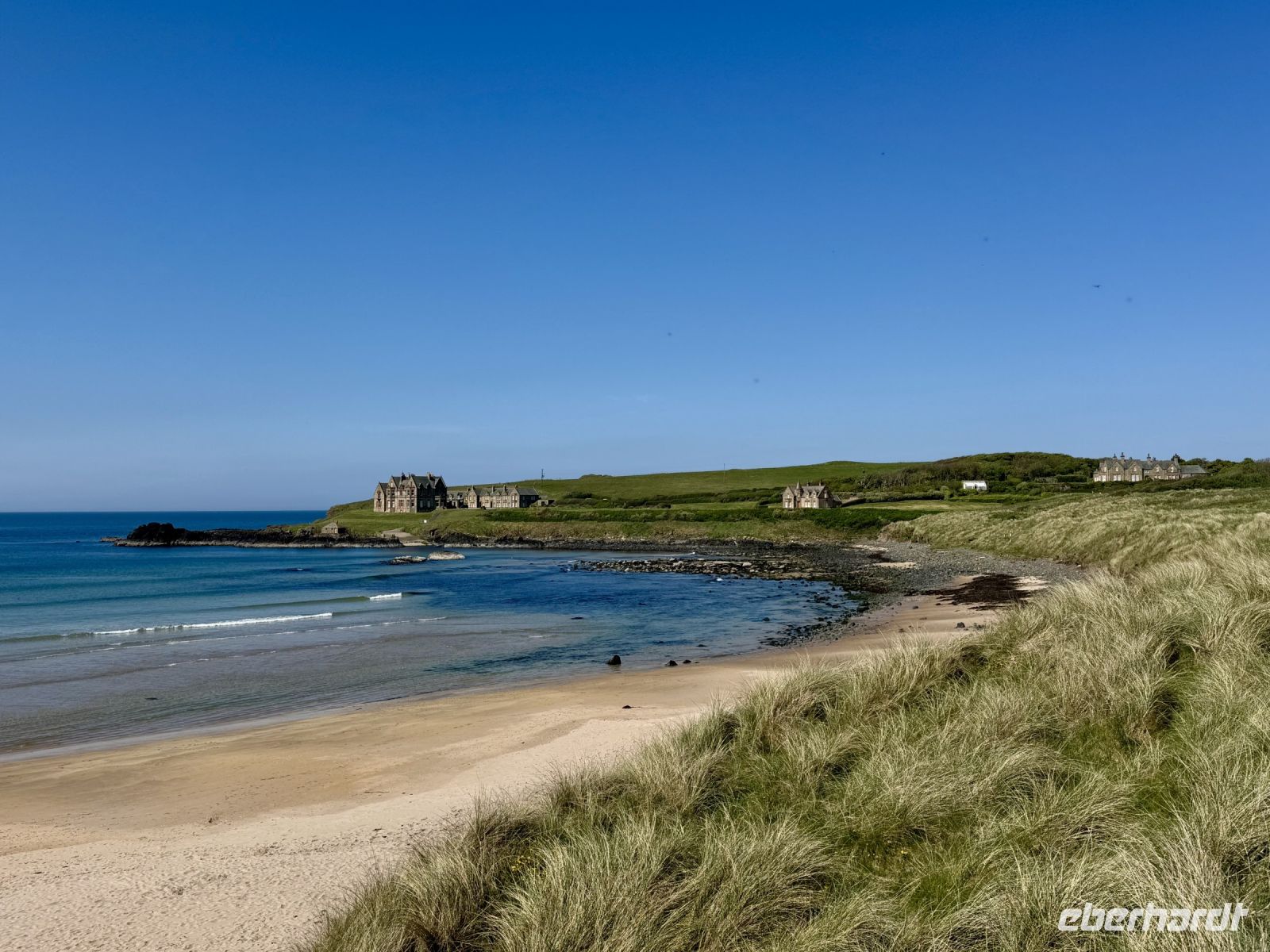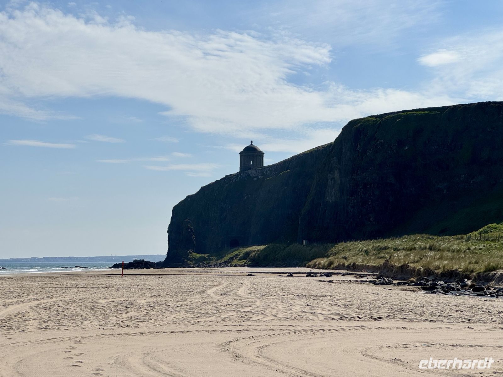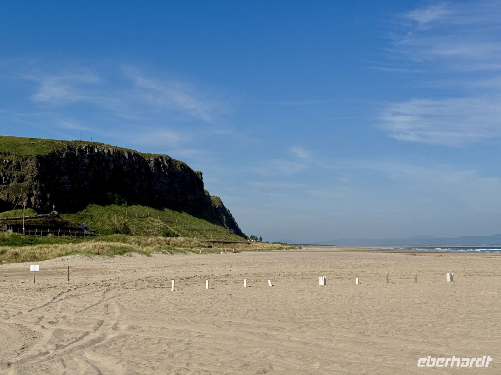 Auch für unseren heutigen Tagesausflug nach Nordirland scheint uns das Wetter hold zu sein. Vielleicht können wir ja am Nachmittag sogar eine zusätzliche kleine Wanderung machen? Schon auf der Hinfahrt zum Mussenden-Tempel bzw. Giant's Causeway nehmen wir einige Extras mit: den Manorcunningham Viewpoint mit Blick auf die breite Mündung des River Swilly und einen weiteren Strandbesuch, diesmal in Downhill direkt unterhalb des Tempels. Das Beeindruckendste am Mussenden-Tempel ist eigentlich die Lage direkt am Rand der Klippen, was natürlich für eine spektakuläre Aussicht sorgt. Eine ähnliche Lage wurde hingegen dem Dunluce Castle zum Verhängnis: Nach dem Absturz des Küchentrakts ins Meer wurde die Burg aufgegeben und gilt nun als schönste Ruine Nordirlands. Wenige Fahrminuten später haben wir den Giant’s Causeway erreicht und gehen schon wieder hinauf auf die Klippen. Zum einen ist es hier ruhiger, zum anderen genießen wir dadurch einen tollen Blick aus der Vogelperspektive auf die Basaltsäulen und die winzigen Menschlein unter uns. Eine Treppe bringt uns hinunter ans Wasser und zum versteinerten Stiefel des Riesen Finn MacCool. Nun sind wir die winzigen Menschlein und klettern auf den Steinen herum. Nach diesem Erlebnis schließen wir wie erhofft eine kurze Zusatzwanderung zum Golfplatz an. Das tolle Wetter müssen wir einfach nutzen! Und außerdem muss ich einen kontrollierenden Blick auf mein riesiges Anwesen am Runkerry Beach werfen. Die viele Bewegung an der Sonne macht durstig, weshalb wir nun die Bushmills Distillery ansteuern und unsere trockenen Kehlen spontan mit dem feinsten Tropfen Lebenswasser benetzen, das die Brennerei zu bieten hat: dem 12-jährigen Single Malt der Marke Distillery Reserve. Auf der Rückfahrt halten wir noch in Londonderry/Derry und machen einen Spaziergang auf der historischen Stadtmauer. Dabei widmen wir uns auch dem schwierigen Thema Nordirlandkonflikt, einem dunklen und traurigen Kapitel der europäischen Geschichte. Heute ist es hingegen sehr warm, freundlich und im Schatten der Bäume auf der Grand Parade geradezu idyllisch. Doch in den Köpfen der Menschen toben die Kämpfe weiter, ist das „Wir gegen die“ immer noch präsent. Eine halbe Stunde Fahrt trennen uns nun noch vom Abendessen in unserem Hotel in Letterkenny, wo wir uns bei Kartoffelbrei und rubinrotem Guinness aufheitern und mit Vorfreude und Spannung auf unsere weiteren Abenteuer blicken.