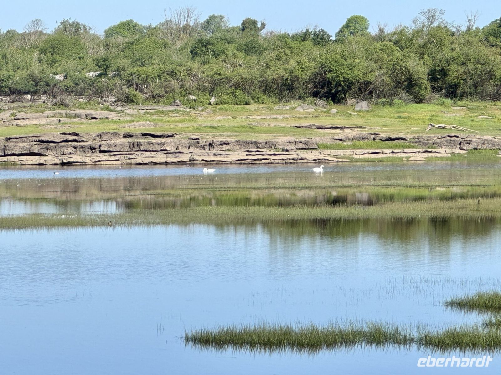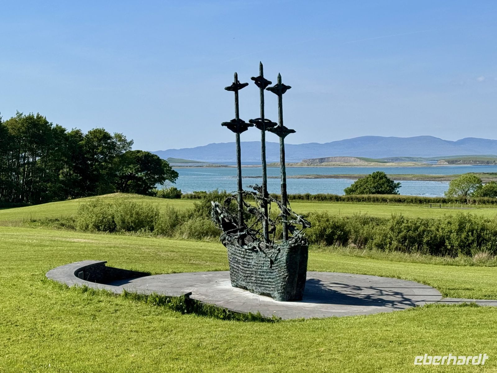Die kurze Wanderung in Coole Park führt durch schattige Wäldchen, was eine angenehme Abwechslung zu den vergangenen Tagen darstellt. Die zehn Meter Anstieg bewältigen wir fast gleich am Anfang. Trotz der Dürreperiode, die nun schon einige Wochen anhält, ist der Turlough noch gut gefüllt. Sogar einige wilde Schwäne gleiten in der Ferne auf dem Wasser dahin. William Butler Yeats hätte wohl Tränen in den Augen. Entlang alter Mauerreste laufen wir durch einen verwunschenen Wald, bis wir an riesigen Rotzedern ankommen. Am Autograph Tree fehlt uns ein langes Messer, um unsere Unterschriften neben die von Yeats, George Bernard Shaw oder Lady Gregory zu setzen. Dabei sind wir doch ganz berühmte Wetterengel! Im Café gibt es leckere Tarte und Quiche. Nach einem Einkaufsstopp in Gort zieht es uns an den Shannon, den längsten Fluss Irlands. Den Zwischenstopp am Flying Boats Museum in Foynes und auch die anschließende Picknickpause macht unser Bus noch mit, dann bleiben wir mit Motorschaden liegen. Es folgt die Fortsetzung zu Samuel Becketts „Warten auf Godot“: Warten auf den Ersatzbus. Doch es hätte schlimmer können. Rechts der breite Fluss, links Kühe, die uns neugierig beäugen, von oben die Sonne, die uns bräunt. Glück im Unglück, dass wir es zu dieser Haltebucht geschafft haben. Nach etwa einer Stunde kommt der neue Bus und in wenigen Minuten sind wir samt allem Gepäck umgeladen. Im Lartigue Monorail Museum in Listowel hat man derweil geduldig auf uns gewartet. Wir dürfen sogar noch mit der Eisenbahn fahren, bevor wir im Kino historisches Filmmaterial bestaunen. Programm also trotz Buspanne vollständig absolviert und trotz Verspätung rechtzeitig zum Abendessen im schönen Grand Hotel in Tralee — ergibt am Ende einen sichtlich erleichterten Reiseleiter. Zudem wartet auf meine Gäste ja am Abend noch der Besuch der Show „Celtic Steps“, die stets für Begeisterung sorgt. Nur der nächtliche Wolkenbruch mit Gewitter auf dem Rückweg zum Hotel, der sorgt nicht gerade für Begeisterung. Wer hätte denn aber nach über einer Woche purem Sonnenschein auch ahnen können, dass es in Irland manchmal regnet? Eben!