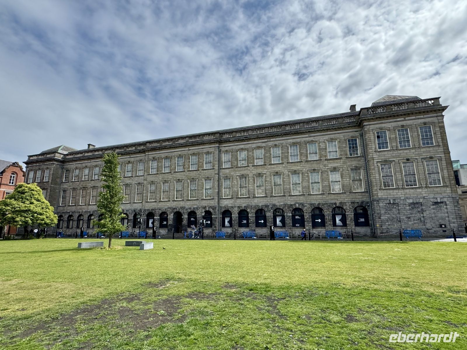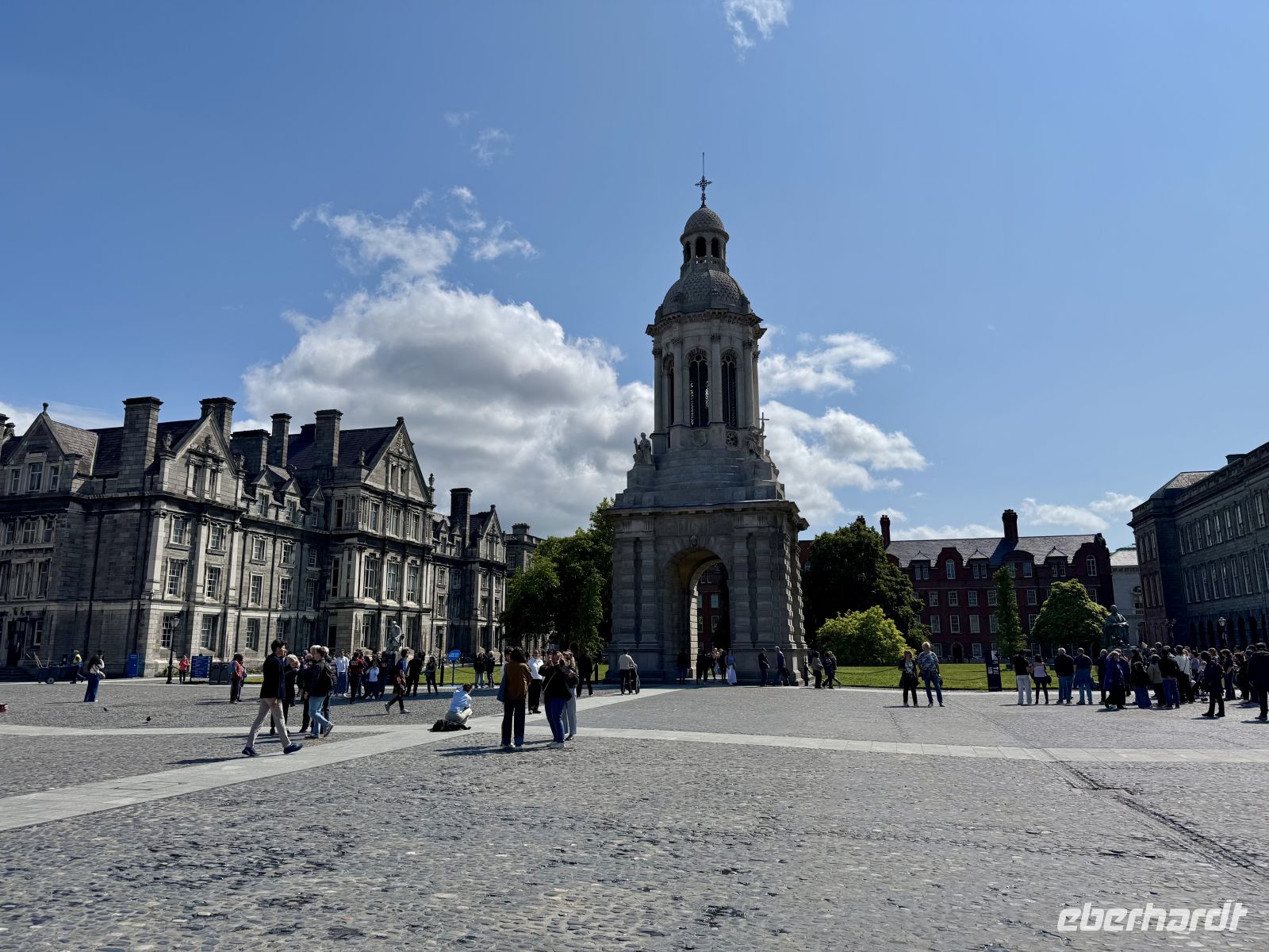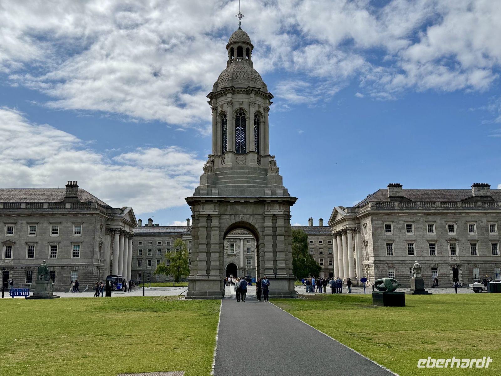 Nach einer Woche Pause geht es für mich wieder nach Irland zurück. Wie wird diesmal das Wetter werden? Wie wird meine Gruppe? Welche Überraschungen hat die Grüne Insel diesmal für uns parat? Die wichtigste Frage für heute allerdings: Werden alle Gäste heil in Dublin ankommen? Meine 19 Gäste reisen nämlich verteilt auf fünf Routen mit der Lufthansa bzw. Aer Lingus aus Frankfurt, Hamburg (über Frankfurt), Berlin, Düsseldorf und München an. Aber es geht alles gut, nur minimale Verspätung! Als sich alle auf dem Flughafen von Dublin um mich herum versammelt haben, darunter auch vier bekannte Gesichter, plumpst mir ein großer Stein vom Herzen. Auch unser Bus wartet schon auf dem Parkplatz auf uns, sodass es gleich losgehen kann! Das Wetter ist zunächst besser als erwartet — ich muss sogar meine Sonnenbrille rausholen. Durch den Tunnel gelangen wir an den River Liffey, fahren durch die Docks und schließlich auf der O'Connell Street bis zum Parnell Square, wo wir unseren Stadtführer John Brick aufsammeln. Er ist eigentlich Anwalt und möchte auf diese Weise gern sein Deutsch trainieren. Er hat sich einen schönen Plan überlegt: Wir fahren erst mit dem Bus bis zum Trinity College und gehen von dort aus zu Fuß zum Hotel. Der irische Wettergott sorgt für einen kleinen Schreckmoment, indem er einen plötzlichen kräftigen Schauer auf den Bus niederprasseln lässt. Als wir am Trinity College aussteigen, scheint jedoch wieder die Sonne. Willkommen in Irland! Inmitten der hektischen Großstadt erscheint uns das prächtige Universitätsgelände wie eine Oase der Ruhe. Am Merrion Square liegt Oscar Wilde lässig auf seinem Stein, als hätte er nur auf uns gewartet. Schelmisch blickt er in Richtung seines Elternhauses. Wegen eines Mini-Marathons ist die Innenstadt für den Verkehr gesperrt, weshalb wir sehr gemütlich durch die Straßen schlendern und rechts und links die schönen Gebäude betrachten können, wie z. B. die Georgianischen Stadthäuser mit den berühmten Doors of Dublin oder den Amtssitz des Premierministers. Später durchqueren wir den größten Stadtpark St Stephen's Green und erfreuen uns an Eichhörnchen, Schwänen und süßen Entenküken. Etwa 15 Minuten später verabschieden wir uns in Sichtweite der berühmten St Patrick's Cathedral von John, laufen um die Ecke zum Hotel und beziehen unsere Zimmer. Bis zum Abendessen haben meine Gäste noch etwas Zeit, um z. B. die Kathedrale zu besichtigen oder bis zum Vergnügungsviertel Temple Bar zu spazieren. Ein schöner erster Tag in Irland neigt sich nach einem reichhaltigen Dinner dem Ende zu. Einige zieht es noch in einen Pub — warum auch nicht, der Abend ist noch lang, die Sonne scheint und es bleibt sogar länger hell als bei uns in Deutschland!