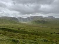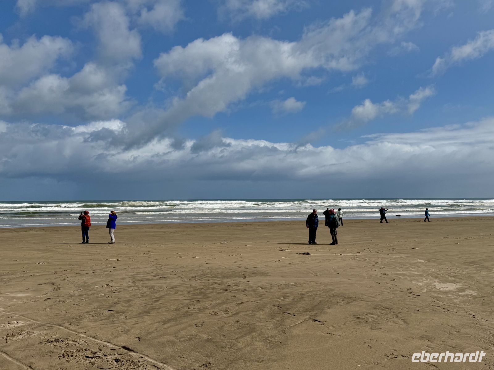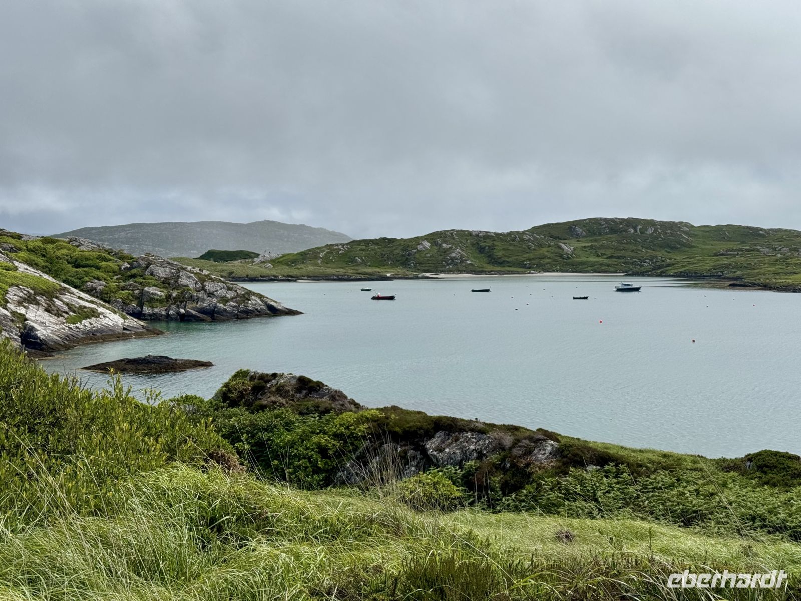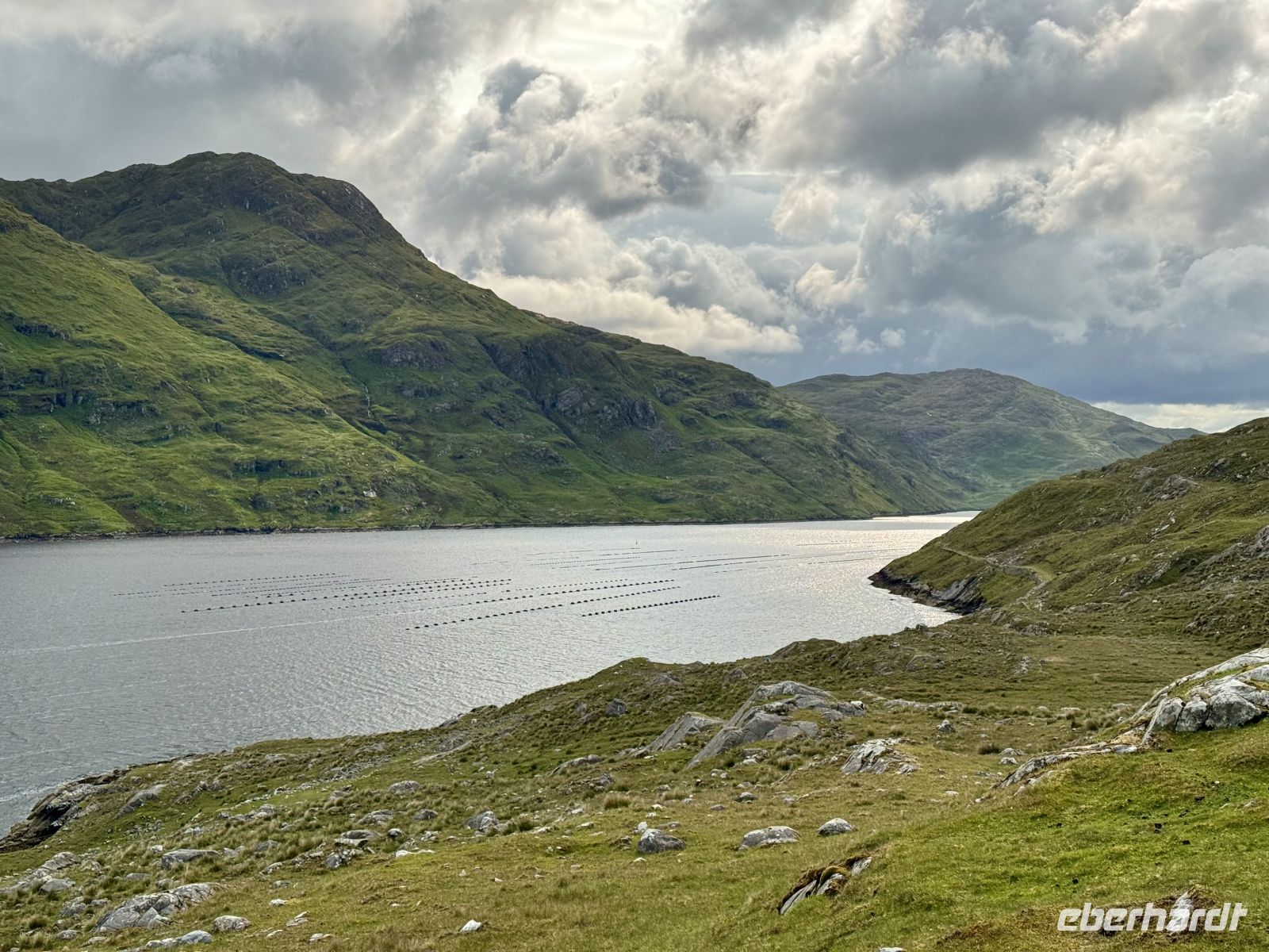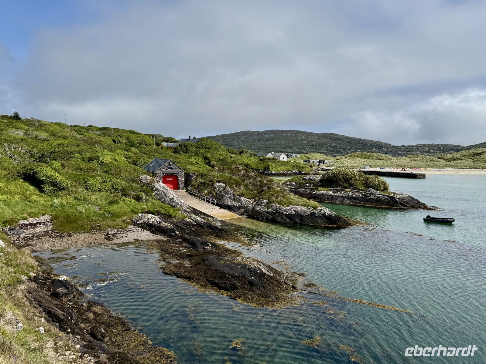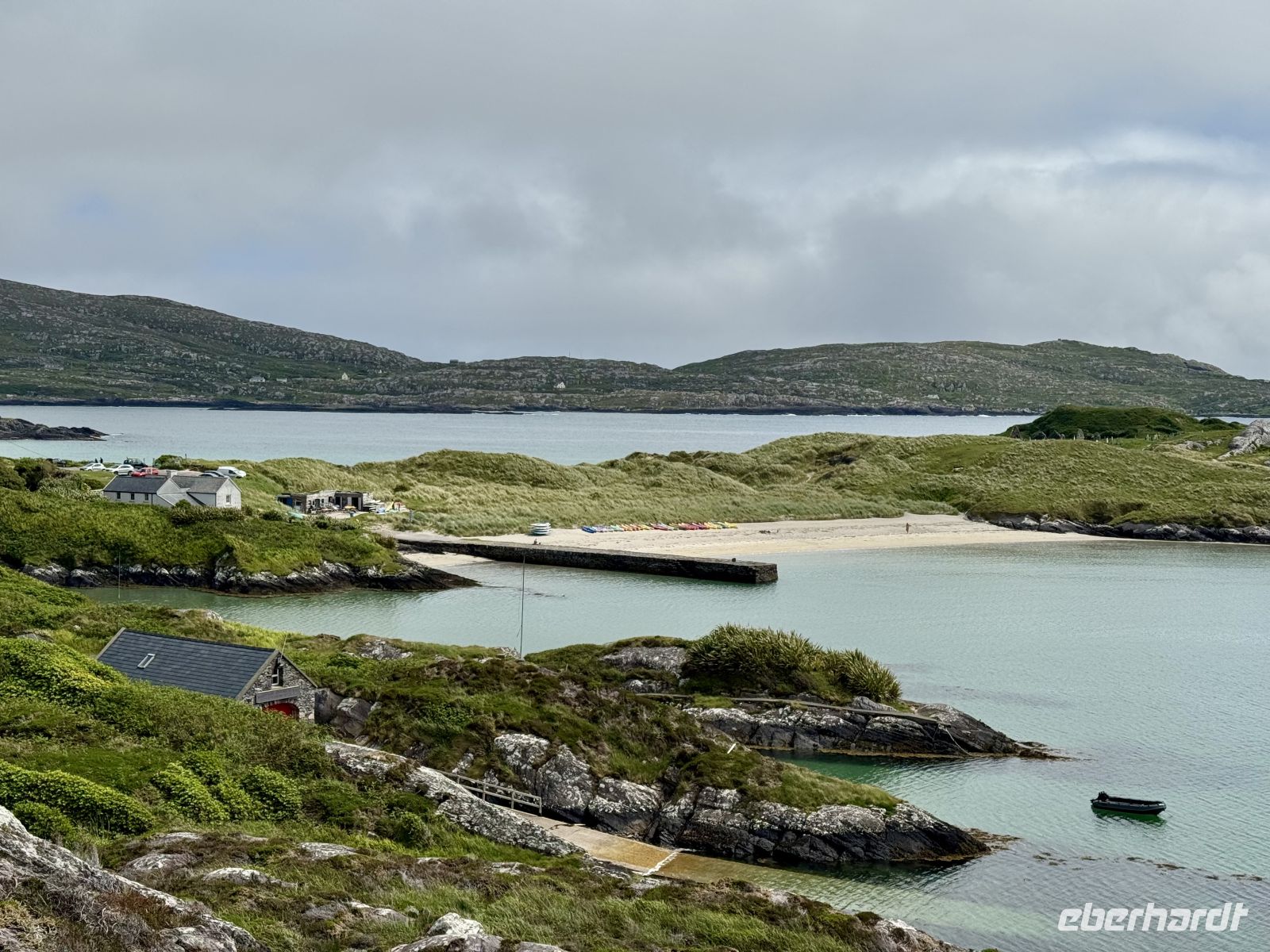 Bewölkt, aber kein Regen für den Tag — so lautet beim Frühstück Donals Prognose nach einem Blick auf sein Telefon. Nun, er ist zu seinem Glück (ein sehr guter) Busfahrer und kein Meteorologe, sonst hätte ich heute wohl Donald Trump zitieren müssen: „You're fired!“ Im Glenveagh-Nationalpark können wir nach der Filmvorführung im Besucherzentrum nämlich nicht direkt zu unserer Wanderung aufbrechen, sondern müssen uns am Castle erstmal einen Unterschlupf suchen. Um es positiv zu formulieren: perfekte Testbedingungen für meine neue Regenhose! Geduld ist in Irland wettertechnisch immer hilfreich, denn die nächste Jahreszeit ist meistens schon im Anmarsch. So können auch wir am Lough Veagh entlang tatsächlich eine sehr schöne und trockene Wanderung absolvieren. Wer hätte das vor zehn Minuten gedacht? Am Umkehrpunkt nehmen wir aber doch lieber im Inneren des kleinen Cottages Platz und nutzen die Pause gleich für eine Vorstellungsrunde. Von Schleswig-Holstein bis Bayern sind diesmal viele Bundesländer vertreten. Nachdem wir wieder zurück am Castle sind, können meine Gäste mit Donal noch hinauf zum Aussichtspunkt laufen. (Aufgrund meiner Bronchitis setze ich hier diesmal aus.) Von oben hat man einen tollen Blick über das ganze Tal. Schnell ein paar Fotos knipsen, denn die nächste Regenwolke ist schon im Anmarsch! Es bleibt noch ausreichend Freizeit für einen Bummel durch die Parkanlagen und den viktorianischen Walled Garden, einen Besuch im Schlosscafé oder auch im neuen Restaurant im Besucherzentrum. Im weiteren Verlauf des Nachmittags machen wir noch eine kleine Spritztour durch den Norden von Donegal, bei der wir auch den höchsten Berg der Grafschaft sehen, den Mount Errigal. Am Strand von Dunfanaghy sorgen heftiger Wind und Regen für nasse Rückenpartien, was ein ganz mutiges Exemplar der Gattung Reisegast jedoch nicht von einem Gang ins Meer abhält. Mit der Abfahrt wird es wieder schön — na ja, nicht immer kommt das bestellte Wetterpaket zum gewünschten Zeitpunkt, was jeder DHL- und Amazon-Kunde gewiss nachvollziehen kann. Etwa eine halbe Stunde später fahren wir auf der von vielen Pubs gesäumten Main Street durch Letterkenny und erreichen alsbald das Station House Hotel. Donal darf nun noch den Sand aus dem Bus kehren, dann hat auch er seinen wohlverdienten Feierabend.