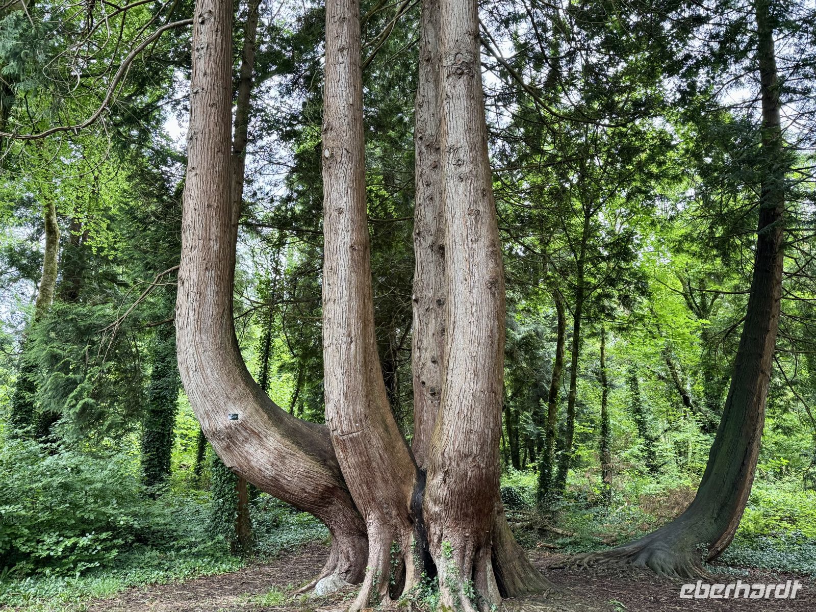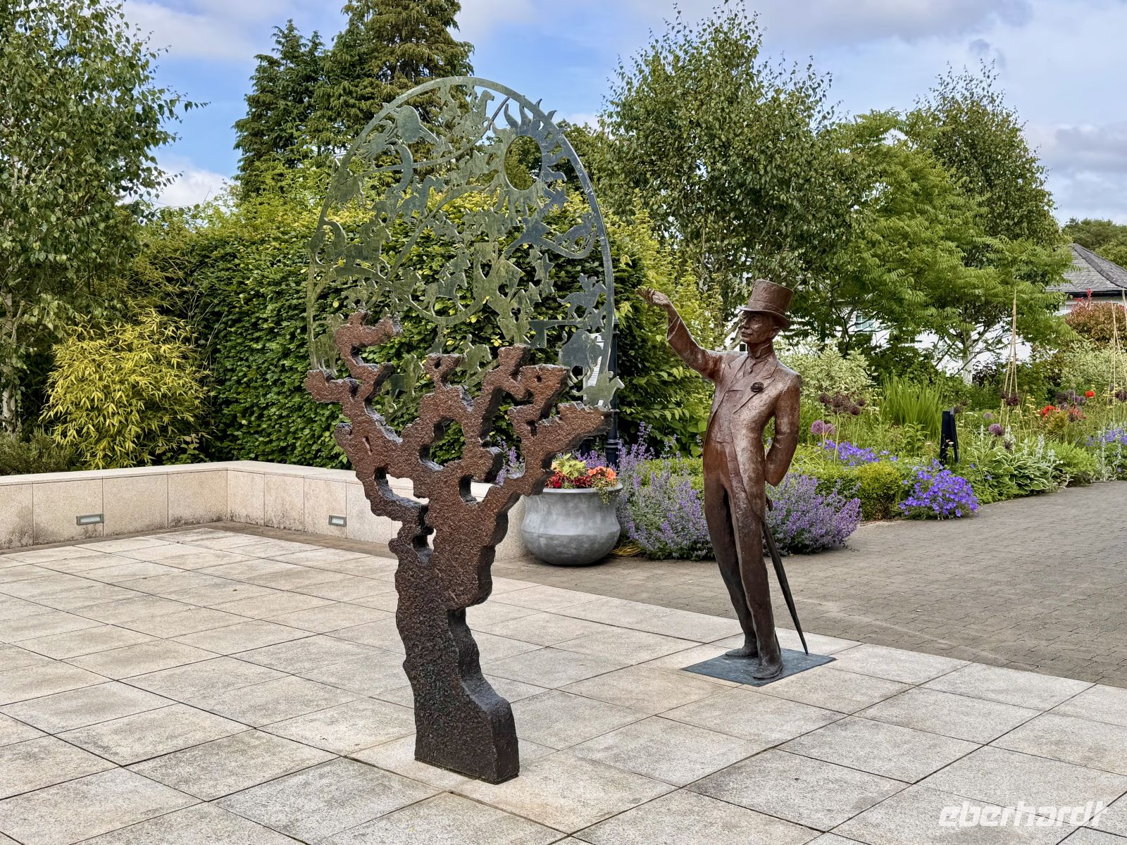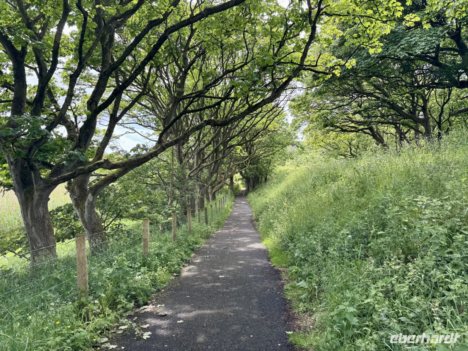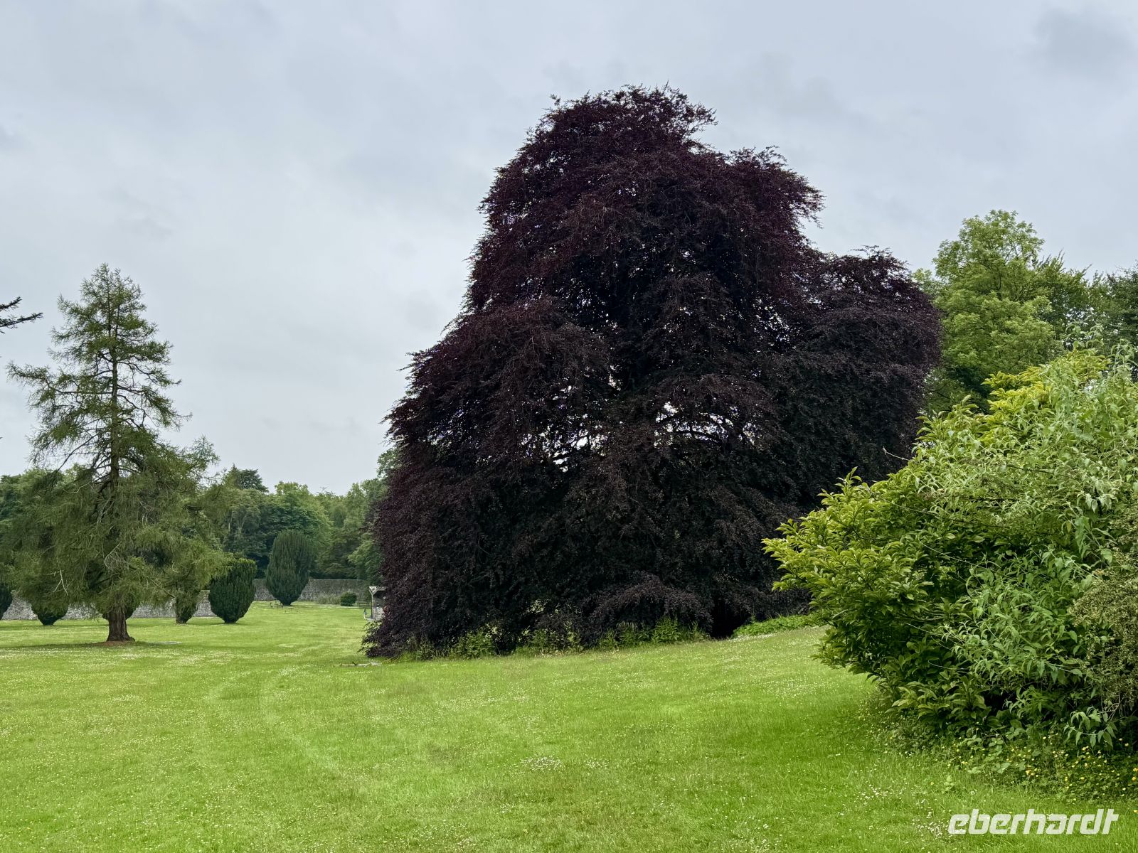 Auch am neunten Tag sind wir eher entspannt unterwegs. Die kurze Wanderung auf dem 7 Woods Trail in Coole Park hält nur wenige Höhenmeter für uns bereit. Dafür spazieren wir im Schatten eines Waldes, der nach dem Regen der vergangenen Tage in saftigen Grüntönen erstrahlt. Waldbaden soll ja der Seele guttun. Wir fotografieren eine riesige Rotzeder und gelangen schließlich zum Autograph Tree im ehemaligen Küchengarten. Wieder habe ich kein langes Messer dabei, um meinen Namen neben die von Yeats und Shaw zu ritzen. Wir picknicken entweder gleich hier an überdachten Bänken oder gehen weiter ins kleine Café. Nach diesem gemütlichen Vormittag fährt uns Donal über die Autobahn an den Shannon. Durch einen Tunnel gelangen wir ans Südufer und machen in Foynes eine kurze Pause am Flying Boats Museum, das an die Flugboote der 30er- und 40er-Jahre sowie an die Geburtsstunde des Irish Coffee erinnert. In Listowel wartet dann ein Stück Eisenbahngeschichte, denn wir fahren mit der Lartigue Monorail und kommen aus dem Lachen und Grinsen nicht heraus. Die eigenwillige Konstruktion kam weltweit nur im County Kerry kommerziell zum Einsatz und wurde liebevoll restauriert. Wir sind dennoch froh, dass uns Donal mit dem Bus nach Tralee fährt. Schon nach 500 Metern waren wir im Zug gut durchgerüttelt. Apropos liebevoll restauriert: im Grand Hotel in Tralee gefällt es uns richtig gut und auch das Essen überzeugt! Fast alle Gäste kommen am Abend mit in die Show Celtic Steps und erleben ein rundum tolles Programm mit irischem Stepptanz (vorgeführt u. a. von zweifachen Weltmeistern), Musik und Gesang.
