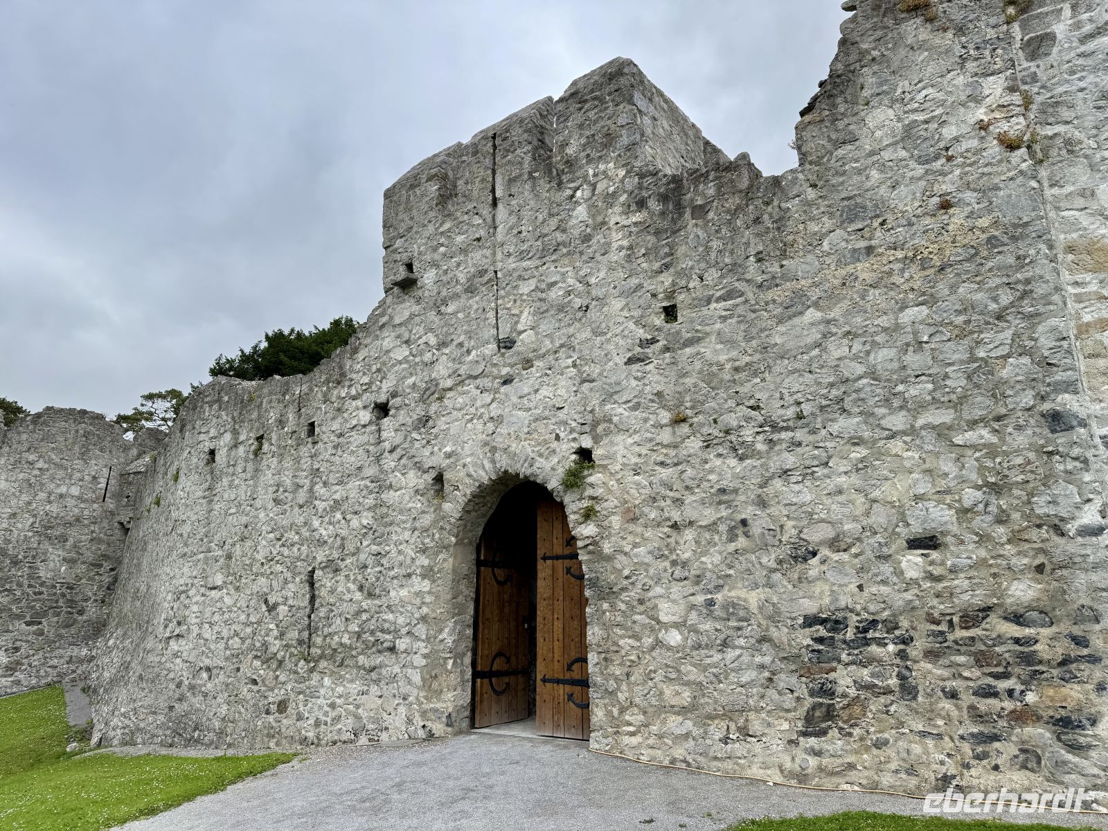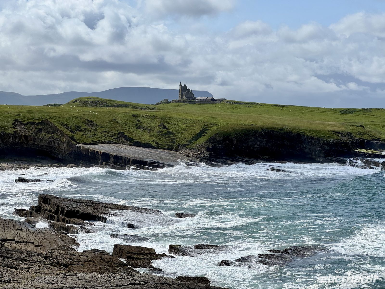 Mit einem lachenden und weinenden Auge steige ich am Morgen in den Bus. Lachend, weil wir heute meine Lieblingsregion in Irland näher erkunden, weinend, weil wir das Leenane Hotel verlassen (müssen). Das gute Essen wird uns fehlen. Mit einem ersten Fotostopp am Killary Harbour beginnt unser Tagesprogramm schon nach weniger als zehn Minuten Fahrt. Weiter geht es mit einem Spaziergang am Rosroe Pier auf den Spuren von Ludwig Wittgenstein. Wir erklimmen einen kleinen Hügel, wobei wir versuchen, den Hinterlassenschaften der Schafe bestmöglich auszuweichen. Oben angekommen können wir bis zum Atlantik blicken und die dramatische Bergkulisse bewundern. Als nächster Tagesordnungspunkt steht der Connemara-Nationalpark auf dem Programm. Nachdem Donal ganz fantastisch die Kurve gekriegt hat, können wir entlang der Küsten-Panoramastraße gen Letterfrack fahren. Auf 11 Uhr kommt dann auch schon das Objekt unserer Begierde in Sicht: der Diamond Hill. Etwa 400 Höhenmeter wollen wir topmotiviert bewältigen und von seinem Gipfel aus die Landschaft beäugen. Wir packen das! Ein letzter, unangekündigter Regenschauer erwischt uns auf halber Strecke. Doch wieder ist der Wind unser Freund und schickt die Wolken schnell weiter. Auf dem Gipfel selbst ist es trocken und die Aussicht auf die Kylemore Abbey mit ihren Gärten und auch in Richtung Küste ist traumhaft. Hat sich also gelohnt! Jetzt müssen wir aber auch wieder runter … Zurück im Bus haben sich alle einen Gipfeltrunk verdient, denn wir feiern Bergfest! So ein Mist, Irish Mist! Die Hälfte der Reise ist nun schon vorbei … Aber es warten ja noch einige Höhepunkte auf uns. Der Besuch der Kylemore Abbey, die wir ja vom Diamond Hill aus schon gesehen haben, gehört sicher auch dazu. Vor ein paar Jahren erst restauriert, strahlt das Herrenhaus im Sonnenschein wie neu. Sonnenschein! Blauer Himmel! Halleluja! Ob die Nonnen extra für uns gebetet haben? So macht die Erkundung der weitläufigen Anlage gleich viel mehr Spaß. Durch das Inagh Valley verlassen wir die Region Connemara und fahren am späten Nachmittag mit einem kurzen Aufenthalt an der Sankt-Nikolaus-Kathedrale in Galway zu unserem schon vierten Hotel nach Ennis weiter.