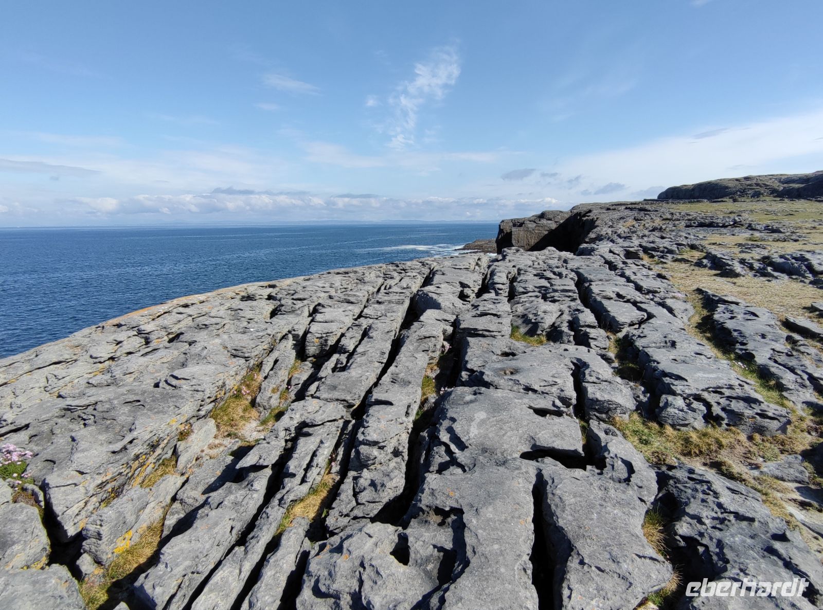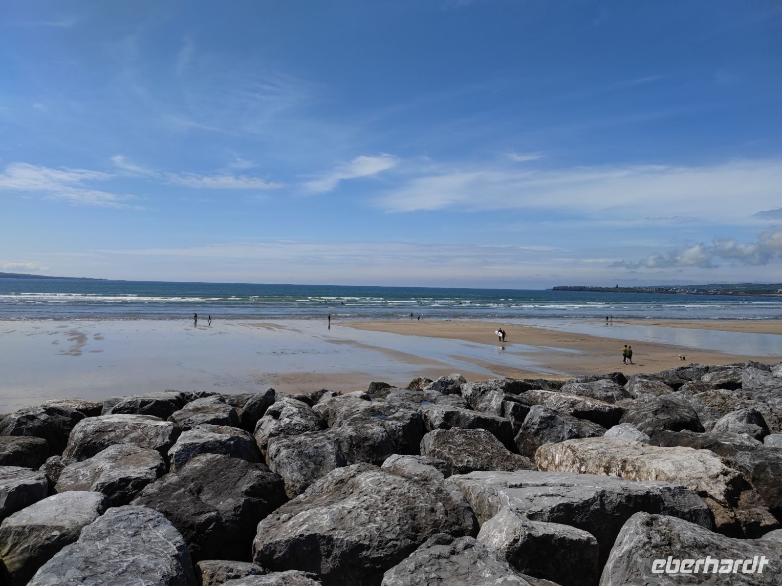 Am Morgen fuhren wir entlang der Galway Bay in das Gebiet des Burren. Einen ersten Fotostopp machten wir hierbei am kleinen Bootsanleger von Ballyvaughan. Anschließend hielten wir an der Küstenstraße, um diese einzigartige Landschaft aus bizarrem Kalkgestein aus der Nähe zu betrachten. Wir konnten deutlich die Schleifspuren sehen, welche nach dem Ende der letzten Eiszeit die Oberfläche des Gesteins verändert haben. Über die Ortschaft Doolin ging es anschließend zu den Cliffs of Moher, welche wir bei herrlichem Sonnenschein erreichten. Es ist eindrucksvoll an den beinahe senkrecht abfallenden Felswänden zu stehen und 200 m in die Tiefe zu blicken. Von den Cliffs fuhren wir danach zu einem Fotostopp in den Urlaubsort Lahinch. Hier konnten wir Surfer beim Training beobachten und erhielten einen ersten Eindruck von Irlands herrlichen Sandstränden.