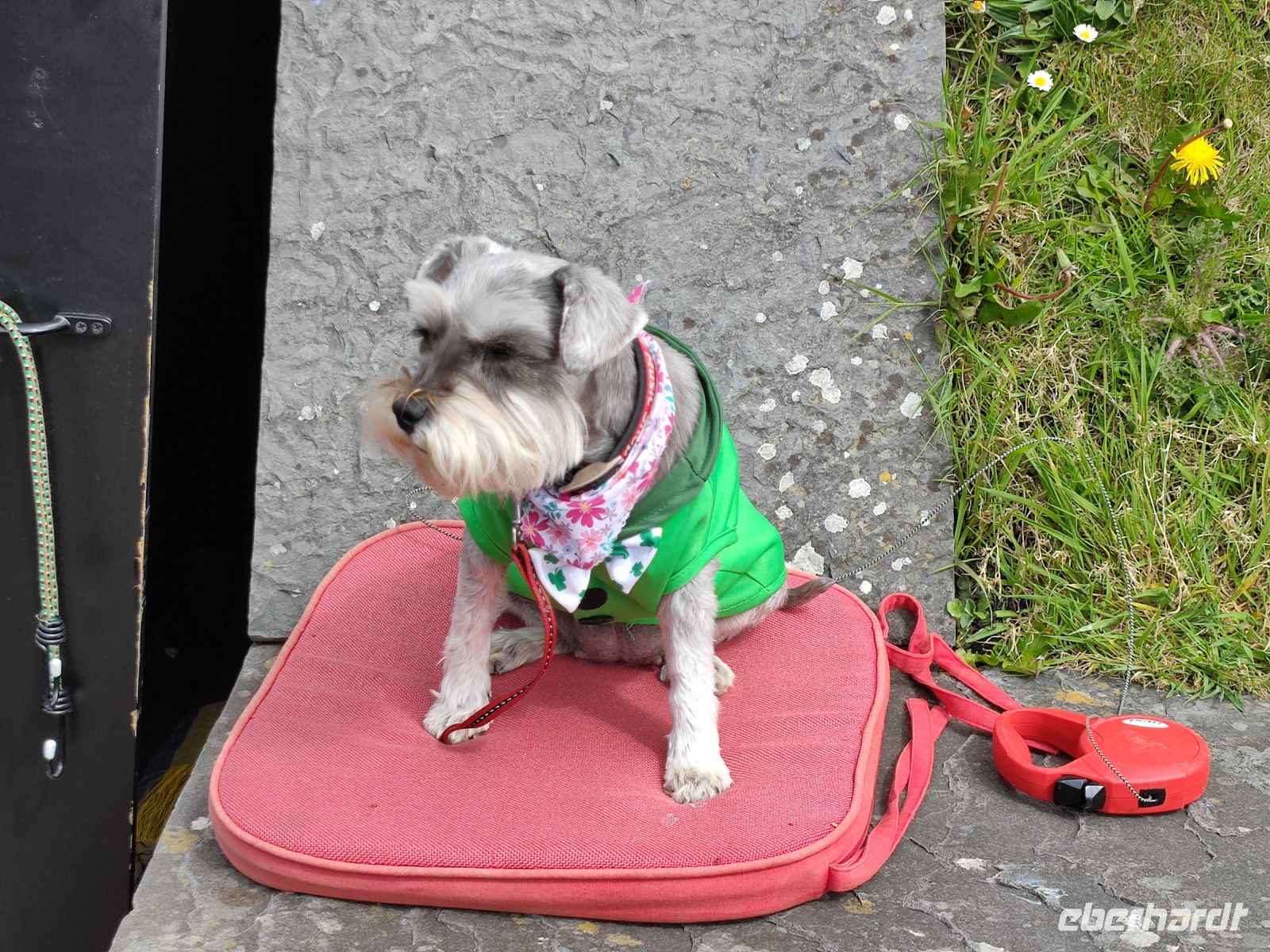 Nach dem Frühstück starteten wir zu unserer Rundfahrt auf dem Ring of Kerry, der einmal um die Halbinsel Iveragh herumführt. Zuerst hielten wir an der alten Eisenbahnstrecke der Western Railway, wo die Fotomodelle „Paddy“, der Esel, und auf seinem Rücken „Rose“, der Hund, bereits auf uns warteten. Danach fuhren wir nach Cahersiveen, der Geburtsstadt Daniel O`Connells. Außerhalb der Stadt, auf der anderen Seite des Flusses, liegt das Cahergall Stone Fort (Cathair Geal). Einige dieser Steinforts sind bis zu 2500 Jahre alt, dieses ca. 1000. Vom Cahergall Stone Fort ging es weiter zur Gin-Verkostung in die