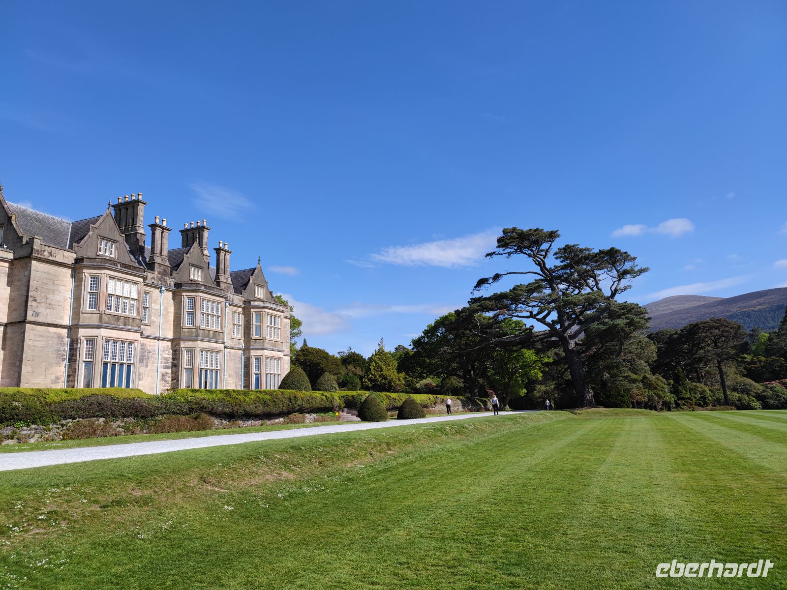SkelligSix18 Distillerie am Ortsrand von Cahersiveen. In alten Bootshallen, in denen die Boote zu den Skelliginseln gewartet und untergestellt wurden, befinden sich heute die Produktions- und Lagerräume. In Zukunft ist auch die Herstellung von Wiskey geplant. Wir konnten aber schon mal den verkaufsfertigen Gin probieren. In Waterville legten wir unsere Mittagspause ein und fuhren anschließend zum Coomakesta Pass. Zweihundert Meter über dem Meer hatten wir einen tollen Blick auf die Ballinskelligs Bay und die Bucht des Kenmare River. Anschließend ging es in den Derrynane-Nationalpark zum Derrynane-House und zum Derrynane Beach. Der Strand ist einer der schönsten Irlands mit eindrucksvollen Felsformationen und türkisblauem Wasser. Vom Derrynane-Nationalpark fuhren wir danach nach Sneem und zum Aussichtspunkt Ladies View. Die Hofdamen Königin Victorias sollen beim Anblick der Berge und Seen so begeistert gewesen sein, dass man den Aussichtspunkt seitdem „Ladies View“ nennt. Nach einem letzten Stopp und wunderbarem Spaziergang am Muckross House und Garten ging es zurück zu unserem Hotel in Tralee. Am Abend besuchten wir gemeinsam einen Pub mit Live-Musik.