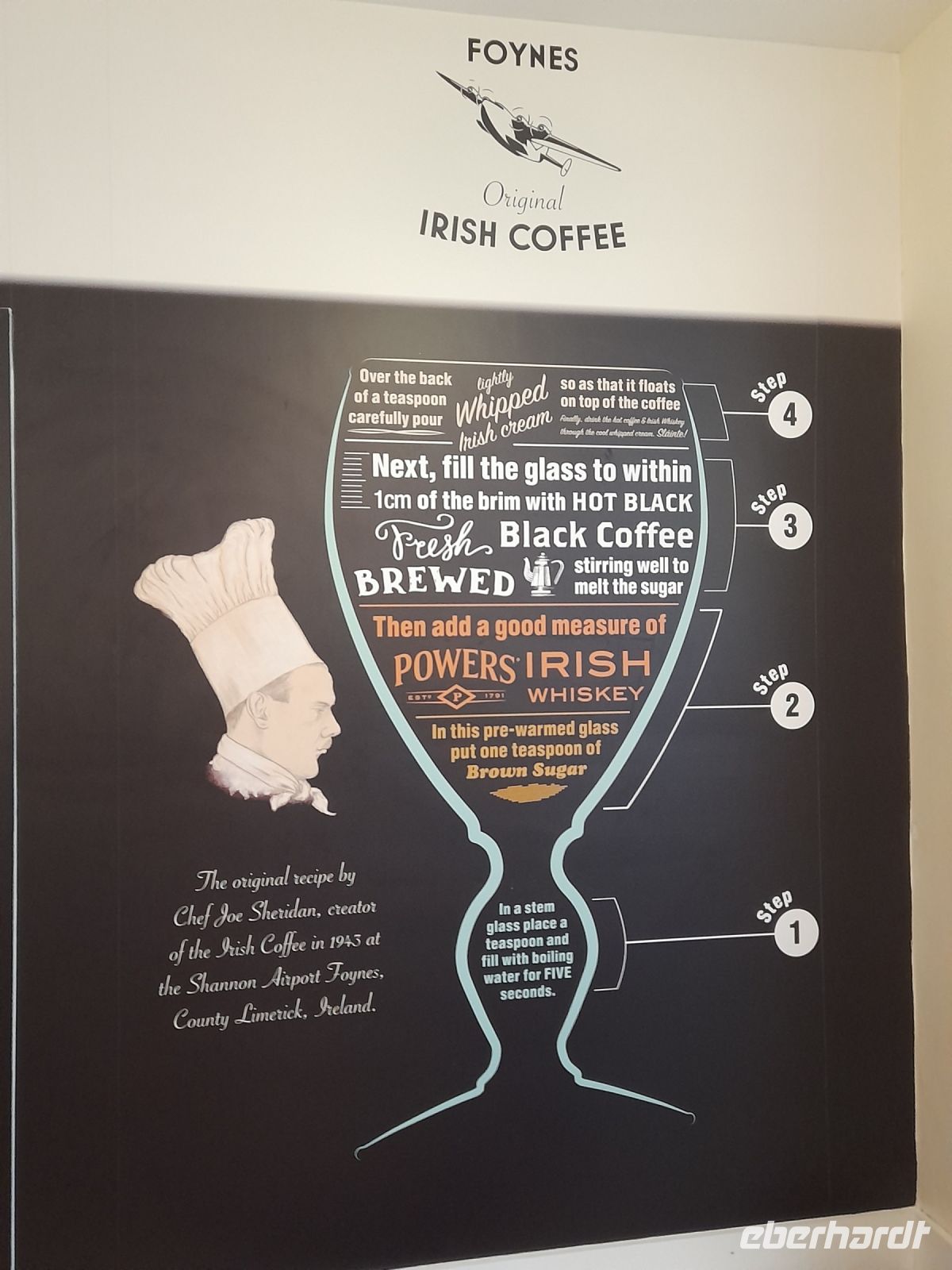 Wir besichtigen also zunächst den Nachbau der Boeing 314 und lernen anschließend, wie man einen echten Irish Coffee macht – trinken dürfen wir ihn am Ende dann natürlich auch. Eine wunderbare Ergänzung der Whiskeyreise, vor allem beim heute herbstlichen Wetter.