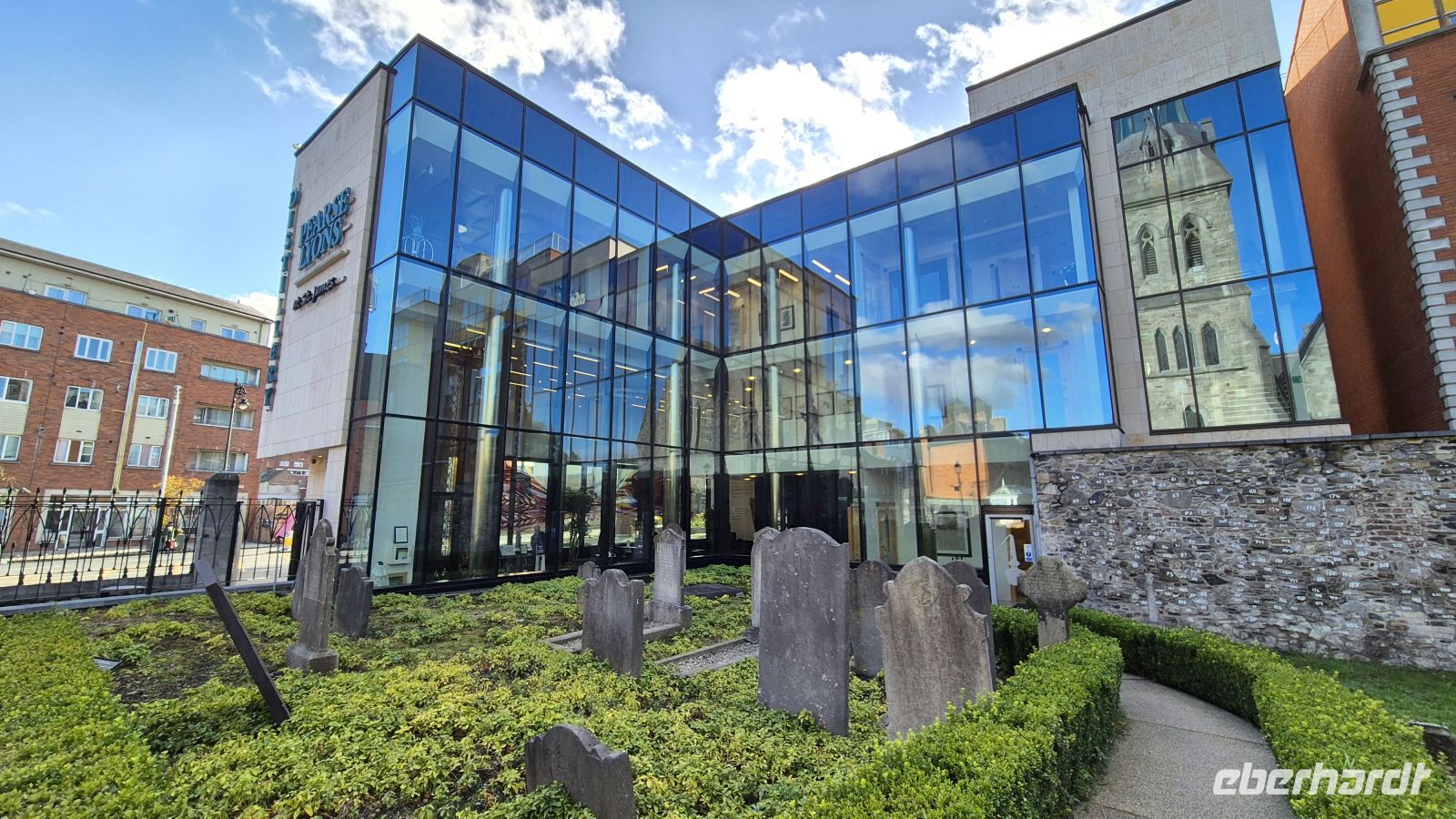 Dann geht es vorbei am berühmten Kulturviertel Temple Bar und der ältesten Fußgängerbrücke der Stadt, der Ha'Penny Bridge. Wenig später fahren wir vorbei am riesigen Gelände der Guinness-Brauerei, die 1759 von Arthur Guinness gegründet wurde. Mit ihrer arbeiterfreundlichen Firmenpolitik trug und trägt das Unternehmen in den letzten über 250 Jahren entscheidend zur Entwicklung der Stadt Dublin bei. Dann fahren wir in den nahegelegenen Phoenix-Park. Mit seinen 707 Hektar Fläche ist er einer der größten innerstädtischen Parks Europas und die grüne Lunge Dublins. Im Park befinden sich unter anderem die Residenz des irischen Präsidenten sowie die des US-Botschafters. Außerdem sehen wir das Kreuz, unter dem 1979 Papst Johannes Paul II. seine Messe gelesen hat und das 62 Meter hohe Wellington-Monument. Abschließend besuchen wir den Garten des Visitor Centres, in dem sowohl Blumen als auch Küchengewächse zu finden sind. Dann geht es vorbei an der Christchurch und der St. Patricks Kathedrale hinein in das Viertel, das sich heute noch „The Liberties“ nennt. Ehemals vor den Stadtmauern gelegen, genoss man hier nicht deren Schutz, musste im Gegenzug allerdings auch keine Steuern bezahlen. Dies mag ein Grund sein, warum sich im 19. Jahrhundert hier im Arbeiterviertel die meisten Destillen Irlands befanden. Mehr als Hundert sollen es gewesen sein – die meisten davon natürlich ohne gültige Lizenz.