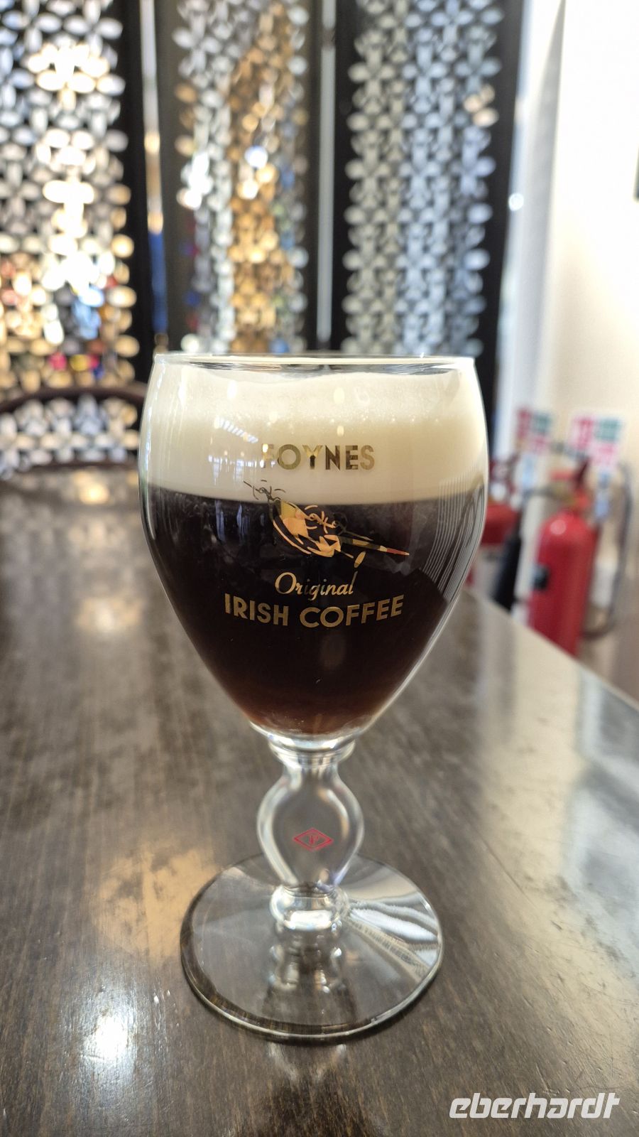 Gleich zur Begrüßung lernen wir, wie man einen echten Irish Coffee macht – trinken dürfen wir ihn am Ende dann natürlich auch. Eine wunderbare Ergänzung der Whiskeyreise, vor allem beim heute herbstlichen Wetter.