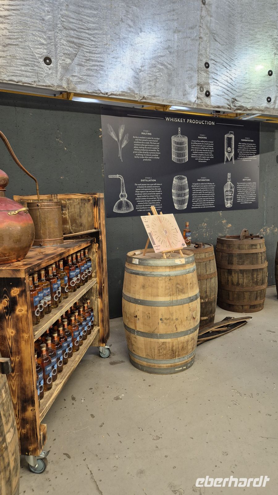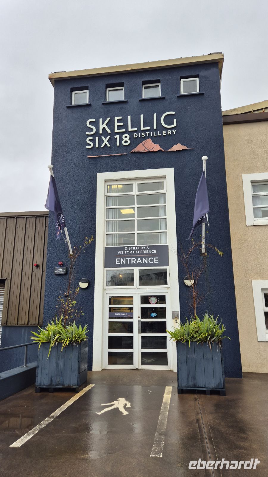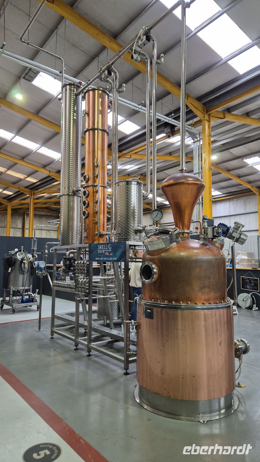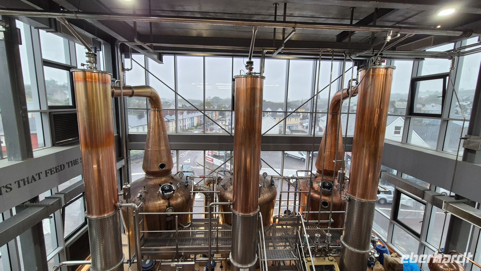 Kurz hinter Cahersiveen, Geburtsort des „Befreier der Iren“, Daniel O'Connells, liegt unser whiskeytechnisches Ziel für heute: Skellig Six18. Seit 2019 existiert die Destille, die Gin und Single Potstill Whiskey herstellt und deren Betreiber die Vision verfolgen über 100 Arbeitsplätze für die Region zu schaffen. Der außergewöhnliche Name stammt von den felsigen Inseln vor der Küste, welche von frühchristlichen Mönchen als Einsiedeleien genutzt wurden. 618 Stufen führen bis heute noch auf den Gipfel der bekannten Skellig Michael. Die sympathische deutsche Auswanderin Patricia führt uns durch das Firmengebäude und erzählt uns mit viel Begeisterung von den Hintergründen der Brennerei, der Whiskey- und Ginherstellung und beantwortet geduldig unsere Fragen. Im Anschluss gibt es dann natürlich auch eine Verkostung - wobei sich gerade die Damen auch über die kleine Abwechslung durch den Gin freuen.