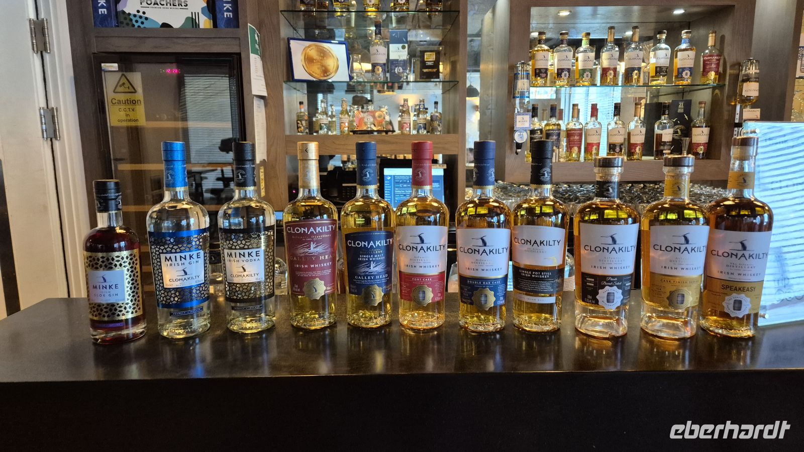 Der erste Stopp am späten Vormittag ist die Kleinstadt Clonakilty, die im County Cork an der Südküste liegt. 2019 wurde hier die Clonakilty Distillery eröffnet, die sich in den folgenden Jahren vor allem auf Single Potstill Whiskey, heißt Whiskey aus gemalzter und ungemalzter Gerste, konzentrieren möchte. Seit Ende 2024 gibt es den ersten komplett eigenen Whiskey zu kaufen - und natürlich auch für uns zu verkosten. Außerdem dürfen wir weitere, preisgekrönte Whiskeys probieren, die hier in Clonakilty gefinished wurden. Im angenehmen Ambiente wird noch ein wenig mit unserem Guide James gefachsimpelt, bevor es für uns dann weitergeht nach Cork.