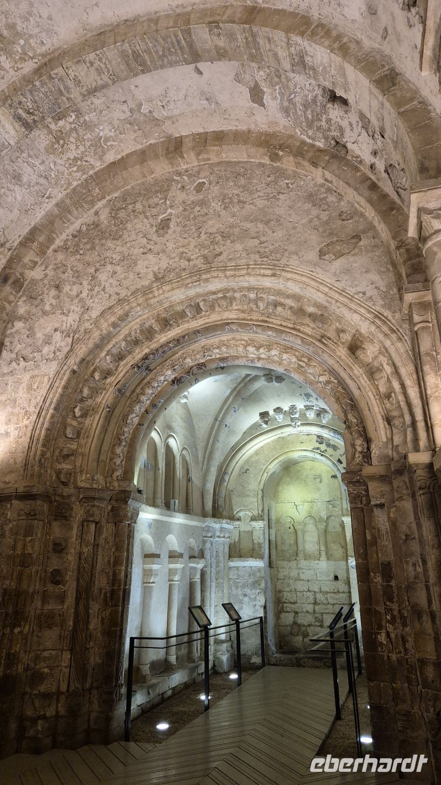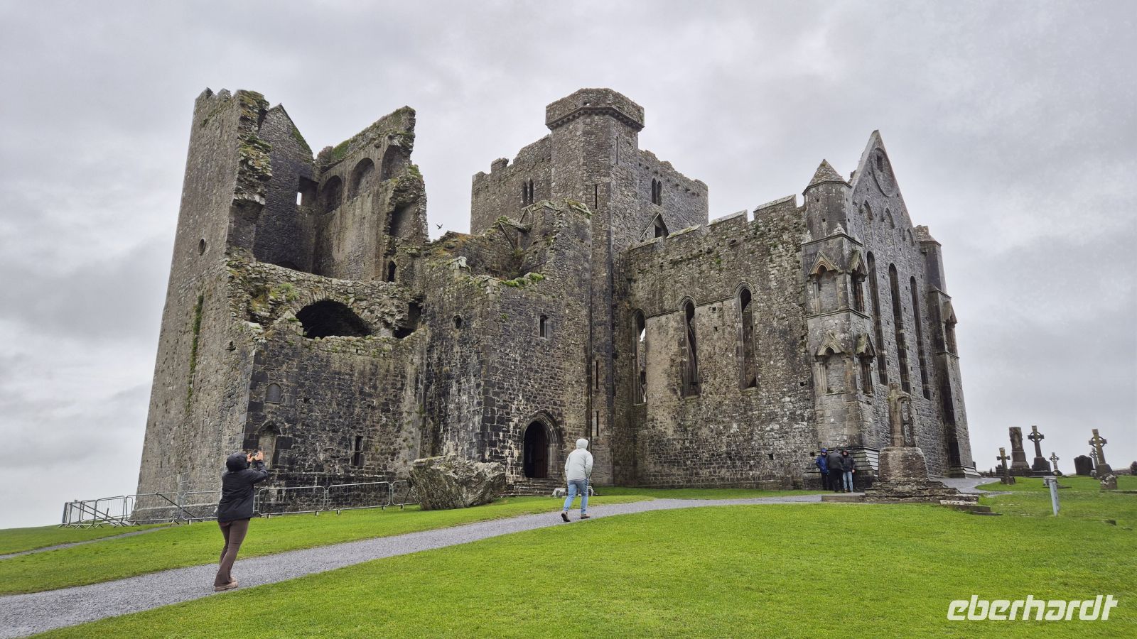 Heute pilgern die Touristen auf den etwa 60 Meter hohen Kalksteinfelsen, nicht zuletzt weil die romanische Cormac's Chapel in den letzten 15 Jahren aufwändig restauriert worden ist, und nun wieder ehrahnen lässt, welche Pracht einen hier im frühen Mittelalter erwartet haben muss. Wir haben Glück und können an einer geführten Besichtigung teilnehmen, denn anders kommt man in die kleine Kappelle gar nicht mehr herein. Aufgrund des Wetters ist heute alles etwas unkoordiniert, aber wir haben Glück, denn als wir die Anlage verlassen, wird sie für den Rest des Tages gesperrt.