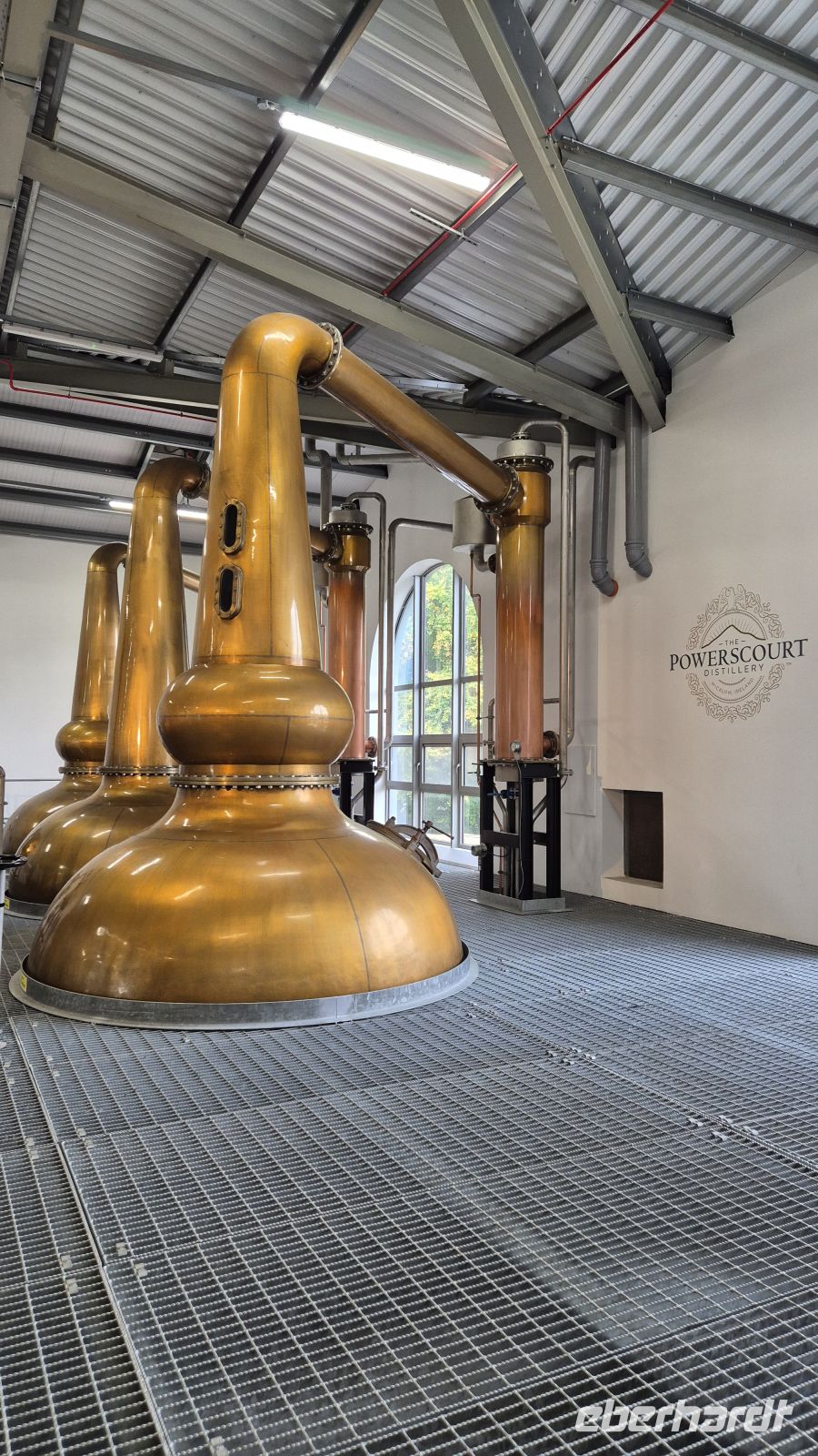 Nach der Kultur kommt dann am Nachmittag wieder die Belohnung: Am Rande der Wicklow Mountains, einem Mittelgebirge südwestlich von Dublin gelegen, besuchen wir die Powerscourt Distillery. Das große Anwesen, zu dem die 2018 gegründete Whiskey-Brennerei gehört, blickt auf eine lange und bewegte Geschichte zurück, denn schon zu Zeiten der irischen Königreiche gab es blutige Schlachten zwischen den Clans um die Vorherschaft in Fercullen, wie das Gebiet ursprünglich hieß.