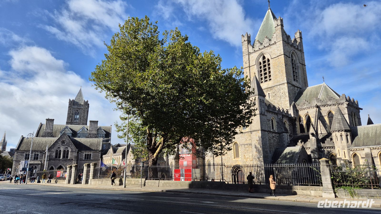 Auf unserem Weg zum Hotel für die Nacht fahren wir noch einmal durch Cork und können noch einige interessante Gebäude sehen. Besonders markant ist die St. Anne's Kirche mit ihrem 36,5 Meter hohen Turm, der von einer von einer recht originellen Wetterfahne gekrönt wird: ein drei Meter langer goldener Lachs, der wohl auf das Fischereimonopol der im Kloster ansässigen Mönche im River Lee zurückzuführen ist.