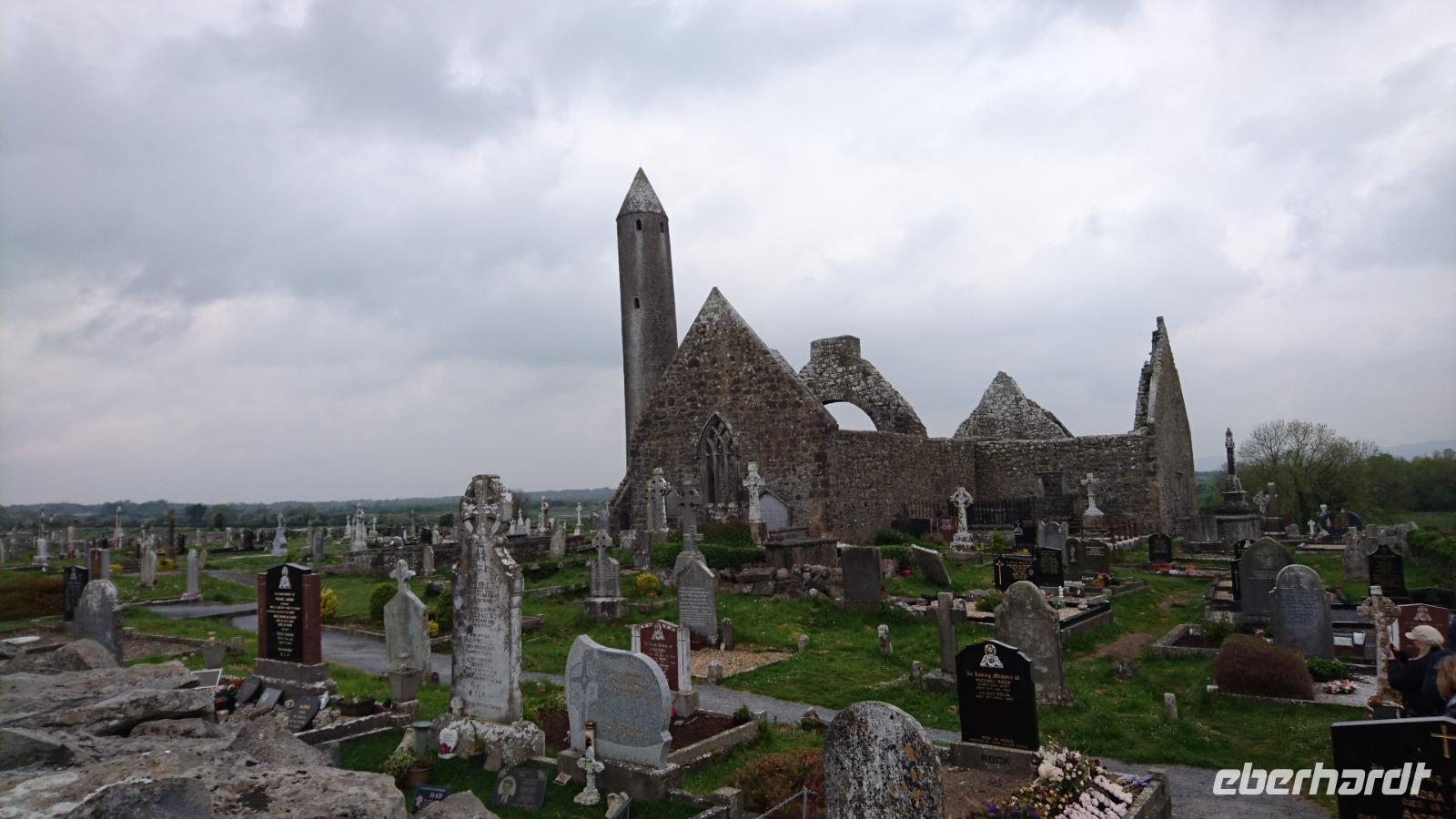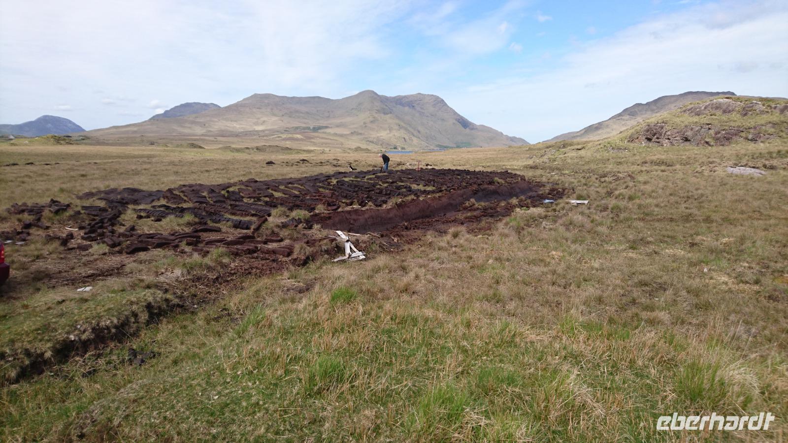 Heute wollten wir erleben, wie steinreich die Iren sind. Nicht umsonst findet man in der heute zu besuchenden Burrenregion kaum eine Feldabteilung als Hecke, wie an vielen anderen Orten Irlands, sondern nur Trockensteinmauern. Kein Wunder. Die Steine liegen ja überall herum und bieten sich als gutes Baumaterial regelrecht an. Doch erst einmal besuchten wir einen alten irischen Friedhof und die Ruinen der Abtei von Kilmacduagh. Anschließend nach einem kurzen Stopp am Hotel ging es weiter zu den Cliffs of Moher, einem der schönsten Orte Irlands. Das Wetter spielte wie an allen kommenden Tagen wirklich gut mit und so konnten wir die Klippen gut sehen, an deren Rand entlang wandern, dazu im Besucherzentrum etwas zum Mittag essen und ein Souvenir erwerben. Wer dachte, heute gäbe es kein weiteres Highlight, der irrte. Nach Rückkehr zu unserem Bus ging es ein wenig nach Norden. Die Straßen wurden enger, die Häuser weniger und plötzlich fuhr ein Auto mit Warnblinken vor uns, stoppte uns an einem Wandstück. Joe war da, der Torfbauer. Er führte uns gemeinsam mit Stefan zu seinem Torffeld und wir sahen nicht nur die dicken Schichten des fossilen Brennmaterials im Boden, ließen uns zeigen, wie man Torf abbaute und trocknete, sondern durften all das selbst versuchen. Na, das war doch ein Spaß! Danach ging es noch einmal hinein in die irische Vorgeschichte und wir besuchten den Dolmen von Poulnabrone ein altes Megalith-Grab, machten noch Station an einem Farmshop unterwegs, fotografierten später das Dunguaire Castle und erreichten am frühen Abend wieder unser Hotel in Gort, wo wir bald zu Abend essen konnten.
