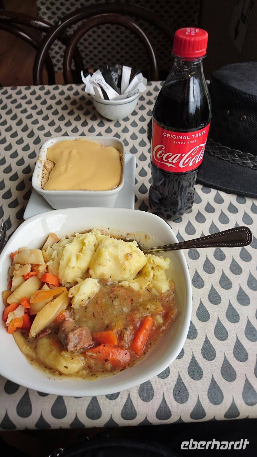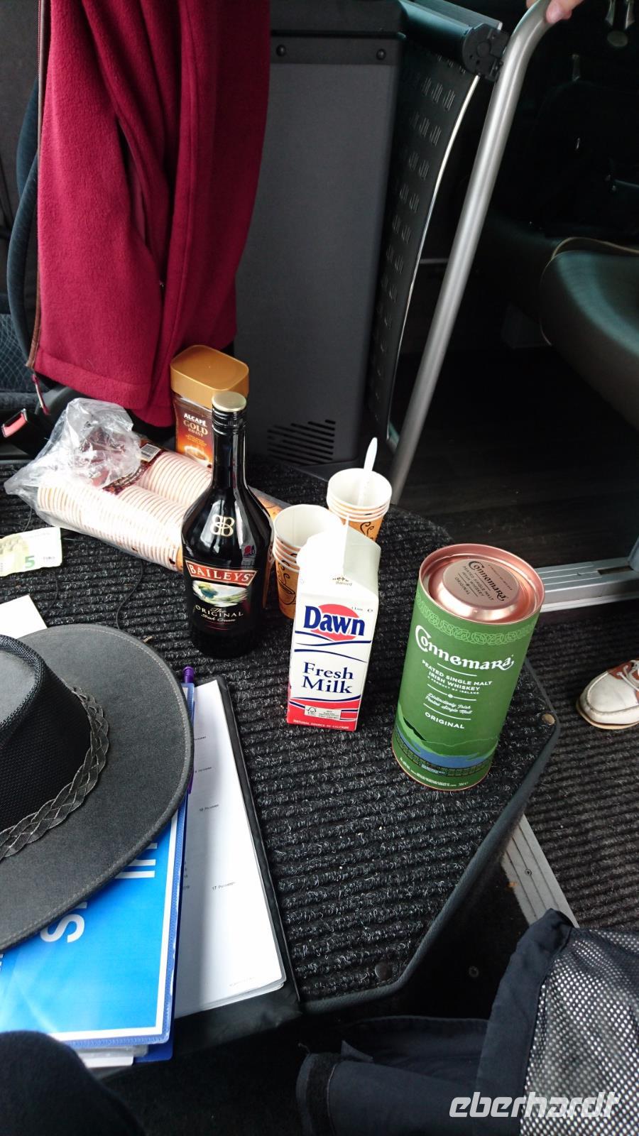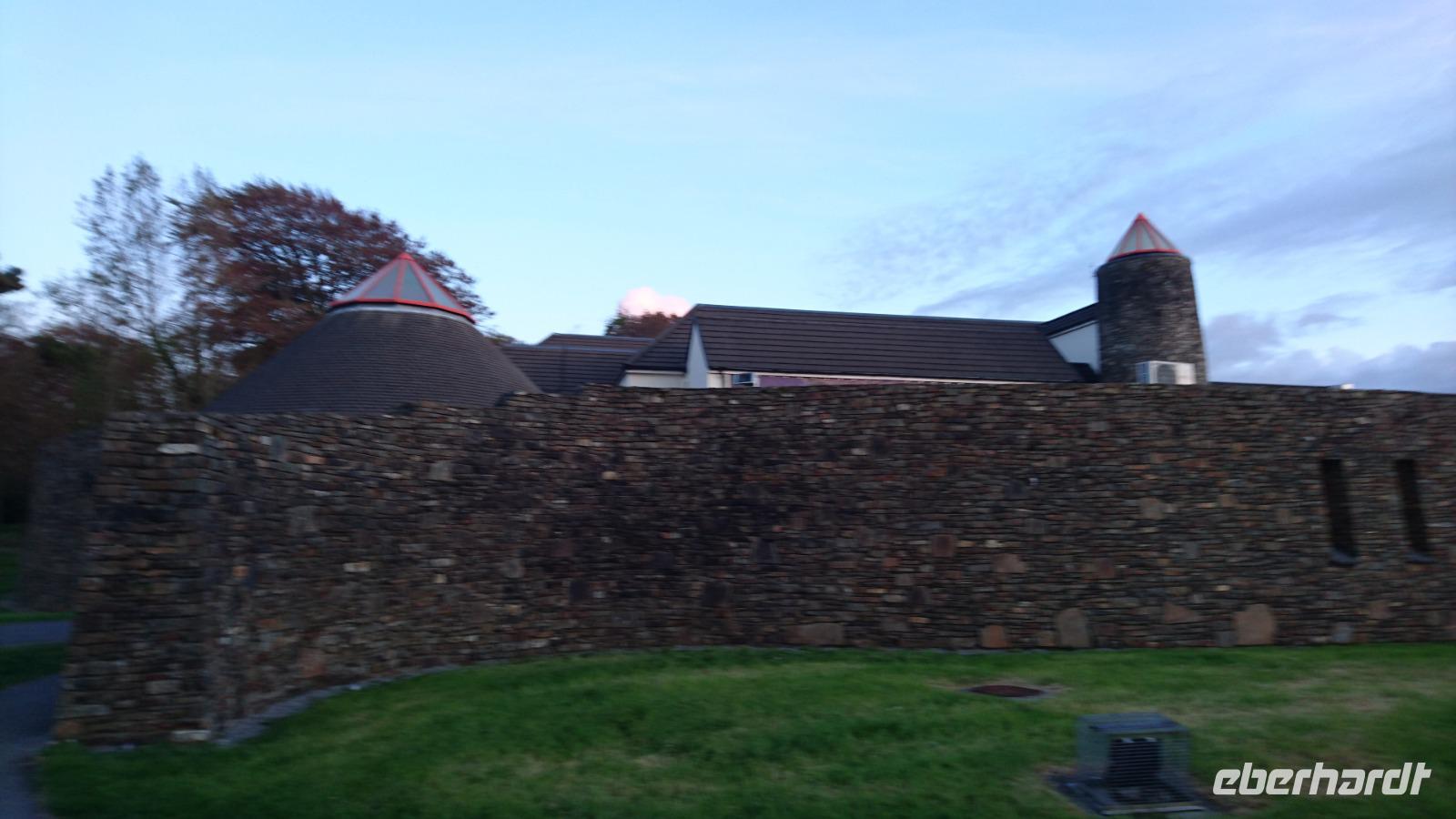 Eher früh am Morgen als spät am tage brachen 15 Reisegäste und ihr Reiseleiter Stefan auf, um die Grüne Insel zu erleben. Nach dem Flug gen Dublin trafen wir uns alle auf dem Terminal und begrüßten wenig später bereits unsere Busfahrerin Heike, verluden unsere Koffer und nahmen im Bus Platz. Stefan stellte uns einige geschichtliche und aktuelle Gegebenheiten Irlands vor uns währenddessen steuerte Heike den Bus bereits in Richtung unseres ersten Ausflugsprogrammpunktes, der Destillerie Dew in Tullamore, die wir um die Nachmittagszeit erreichten. Hier führte man uns via Videos, Audioguides und Stefans Übersetzungen in die irische Whiskeyproduktion ein und wir durften sogar etwas vom hiesigen Gebrannten versuchen, ehe wir nach etwas Freizeit in Tullamore weiter gen Gort, zu unserem Hotel fuhren, welches wir am Abend erreichten. Die Zimmer waren angenehm groß und das Abendessen sehr schmackhaft. Trotzdem erlebten wir heute schon recht viel und freuten uns nach einem kurzen Gang zur Hotelbar auf unsere Ausruhphase und kommende Erlebnisse.