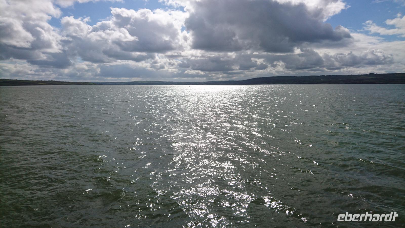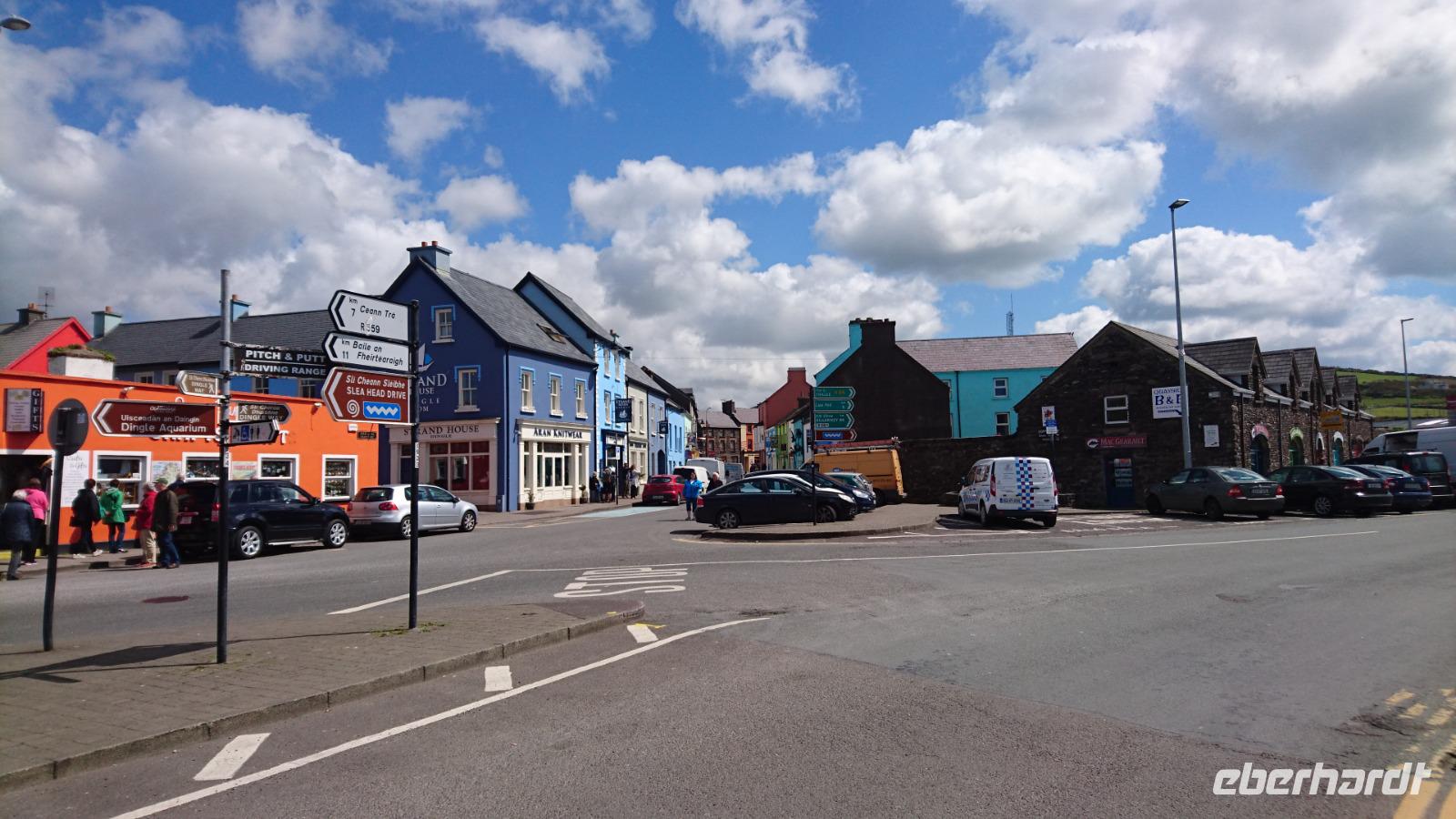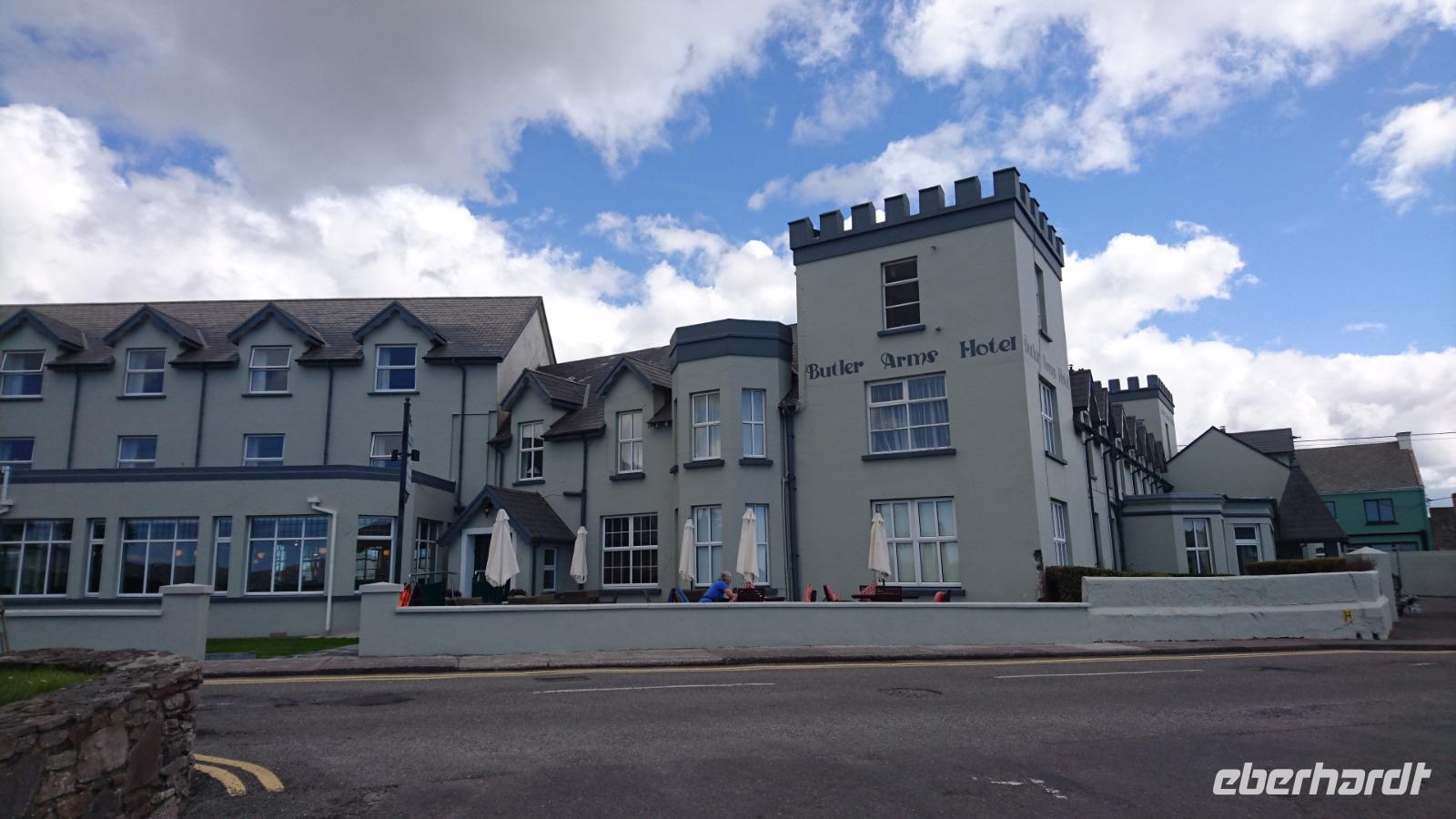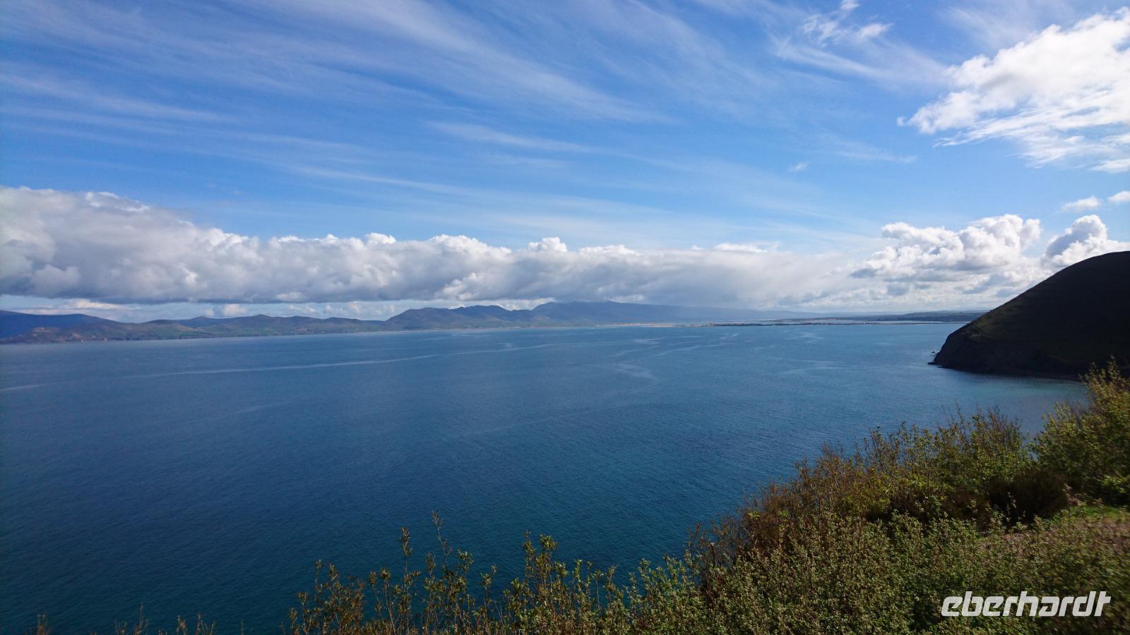 Nach Süden sollte es heute gehen. Dazu nahmen wir Abschied von unserem Hotel und ließen unsere Koffer wieder im Bus verladen. Die berühmten Halbinseln in Kerry wollten wir in den kommenden drei Tagen bestaunen und fuhren dazu erst einmal nach Killimer und von da mit der Fähre über den Shannon nach Tarbet in Kerry. Von hier ging es vorbei an Tralee nach Dingle Town, den Hauptort auf der Halbinsel Dingle und gleichzeitig unser Mittagspausenort, durch den wir dazu noch ausgiebig bummelten. Weiter ging es entlang der Dingle Bay nach Slea Head und weiter zu den bekannten Drehorten alter und neuer Filme, wie z.B. Ryans Daughter oder Star Wars. Dazu hatten wir auch noch Blick auf die Skelly Islands, wo ebenso Episoden von Star Wars spielten. Nahe der fiktiven Geschichte, doch gleichzeitig inmitten des irischen Lebens erreichten wir bald wieder Dingle und machten Halt am Strand von Inche, einem kilometerlangen Sandstrand mitten in der Dingle Bay und idealer Ort für einen Nachmittags-Kaffee. Von hier ging es später nach Tralee, wo wir dank Stefans einfacher Check-in-Vorbereitung schnell unsere Zimmer beziehen konnten und wenig später im großen Restaurant zu Abend aßen, uns dazu ein irisches Bier, Tee, Wein oder Wasser schmecken ließen und die Erlebnisse der ersten vier Tage in Irland rekapitulierten. Waren wir wirklich erst vier Tage hier bei alledem, was wir bereits sahen? Kaum zu glauben!