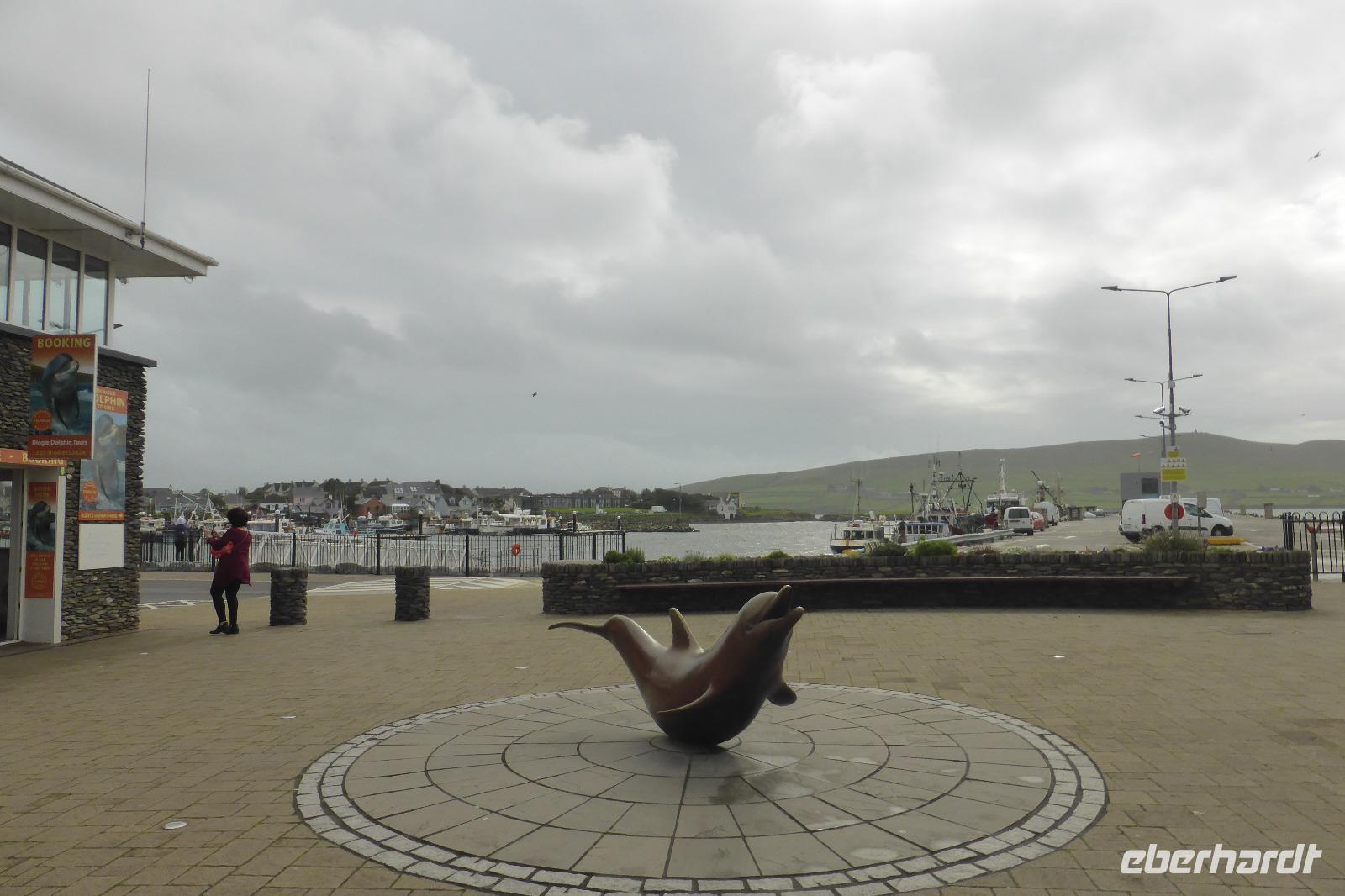 Halbinsel Dingle. Unseren ersten Fotostopp legten wir oberhalb der Ortschaft Camp mit schönem Blick auf die Bucht von Tralee ein. In Annascoul, einem kleinen Ort auf der Südseite der Dingle-Halbinsel, hielten wir am Denkmal des irischen Polarforschers Thomas Crean. Er nahm Anfang des 20. Jahrhunderts an drei Expeditionen in die Antarktis teil und betrieb später im Ort den Pub „The South Pole Inn", der bis heute existiert und den man auf der gegenüberliegenden Seite besuchen kann. Von Annascoul fuhren wir weiter nach Dingle, dem Hauptort der Halbinsel. In der Bucht von Dingle lebt Fungie, ein Delphin, welcher die Nähe zu Menschen sucht. Er hat große Bedeutung für die Geschäftsleute im Ort, denn überall sieht man ihn als Werbeträger. Bei einem kleinen Spaziergang durch Dingle besuchten wir auch Dick Mac's Pub, den ältesten Pub des Ortes. Nach unserem Aufenthalt ging es die Südküste entlang in westliche Richtung. Das Wetter war fantastisch und somit legten wir am westlichsten Punkt, am Slea Head, eine lange Pause ein. Direkt vor uns lagen die Blasket-Inseln, welche wir bei dieser guten Sicht fantastisch fotografieren konnten. Nach einem weiteren Fotostopp oberhalb Smerwick Harbour fuhren wir wieder nach Dingle zurück und von dort zum Inch Beach. Dieser Strand ist ein Paradies für Surfer und Freizeitsportler. Trotz der recht kalten Temperaturen gingen einige von uns mit den Füßen ins Wasser. Anschließend fuhren wir zum Hotel „Brendon" in Tralee, indem wir die nächsten drei Tage übernachteten. Nach dem Abendessen besuchte ein Großteil unserer Gruppe die Show „Celtic Steps" im benachbarten Konferenzzentrum.