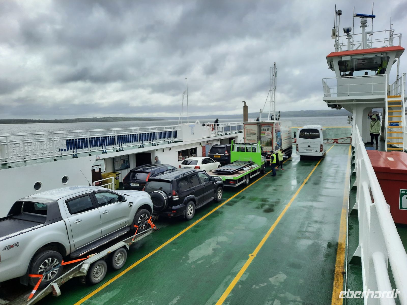 Heute verlassen wir unser schönes Hotel in Gort mit Gepäck und fahren südwestlich bis nach Killimer, wo unser Bus mit der Autofähre über den Fluss Shannon übersetzt. Während der Überfahrt genießen wir die frische, irische Luft und schon nähern wir uns wieder dem Meer, denn wir besuchen heute ja die Halbinsel Dingle.