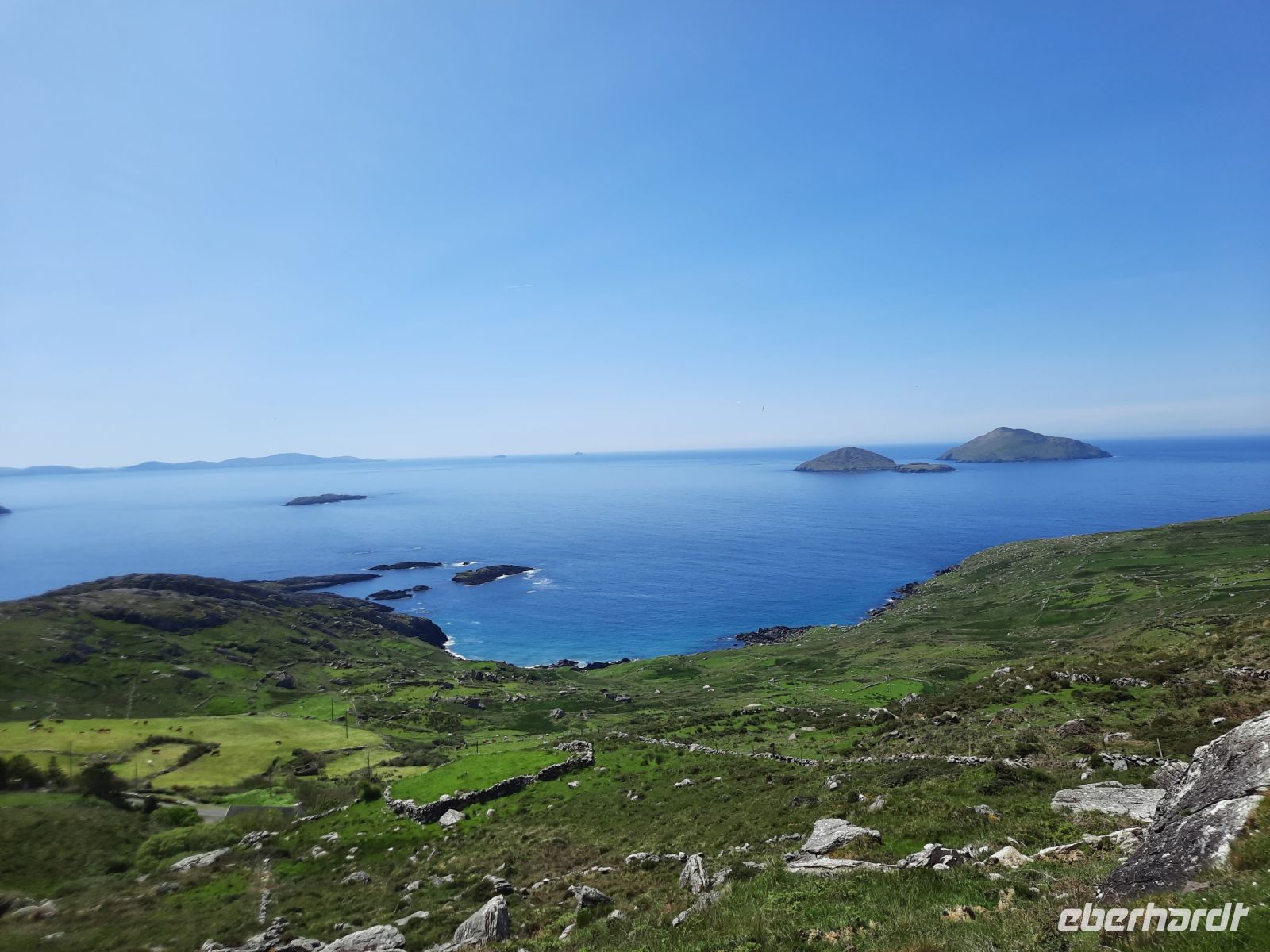 Über die Orte Killorglin und Cahirsiveen gelangen wir bei Kaiserwetter zur direkt am Meer gelegenen Ortschaft Waterville, wo bereits Charlie Chaplin immer wieder einige Urlaubstage verbrachte.