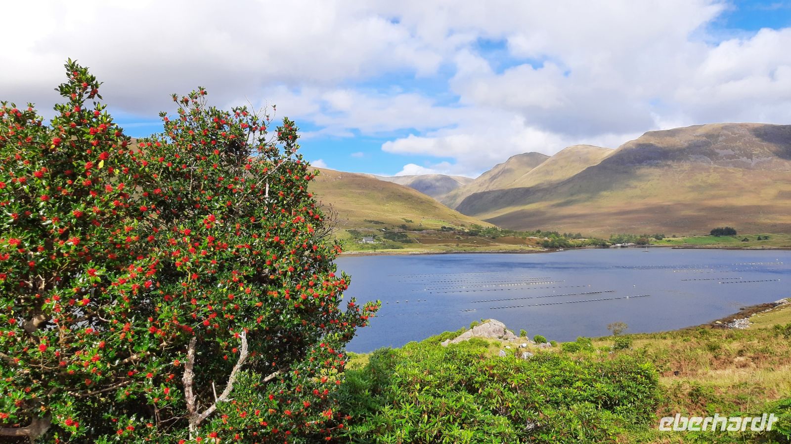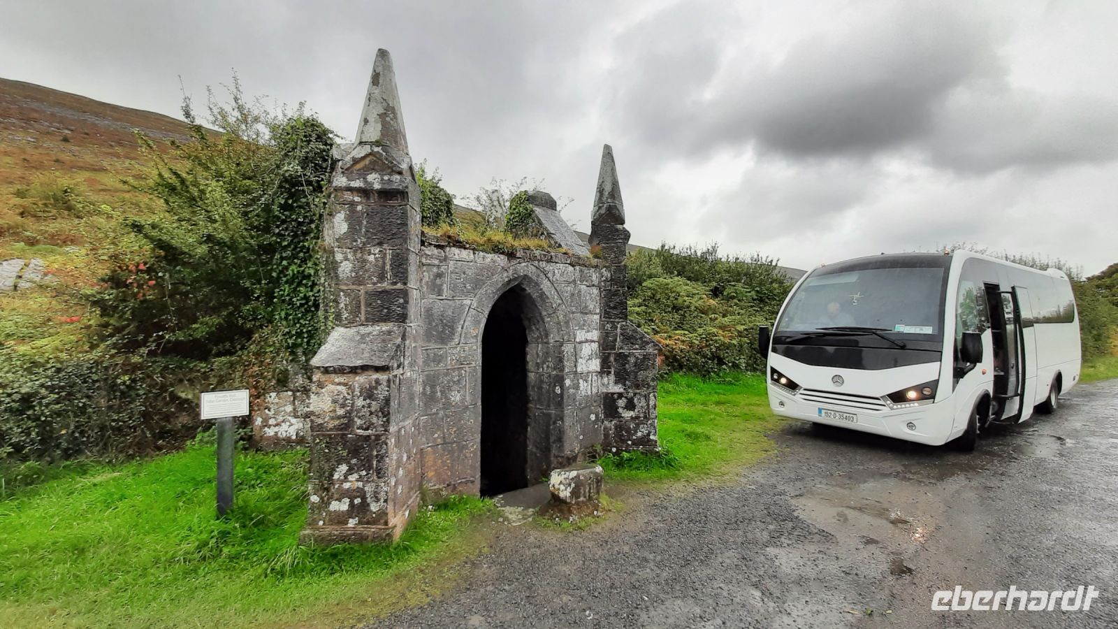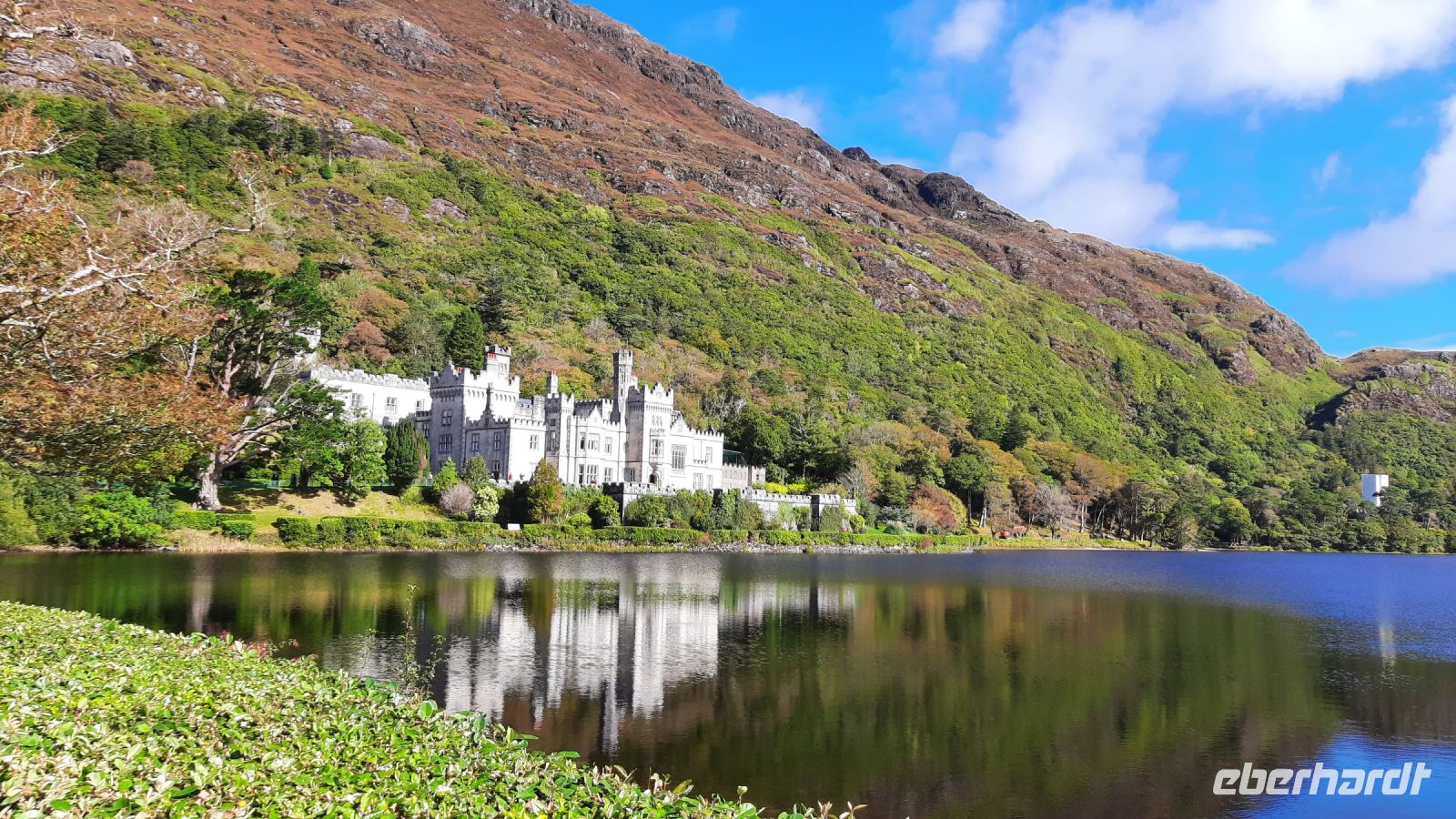 Heute erwartete uns ein Tag mit atemberaubender Landschaft. Nicht weit hinter Galway erreichten wir die Region Connemara und fuhren zunächst entlang der Küste der Galway Bucht. Mehrmals hielten wir an für Fotostops am Wegesrand und genossen die Ausblicke. In Spiddal besuchten wir Standuns, ein hübsches Geschäft mit irischen Andenken und einem Café. Bald erreichten wir Connemara. Weite Gletschertäler werden umrahmt von mächtigen Bergen, die sich in den zahlreichen malerischen Seen spiegeln. An mehreren Stellen hielt unser Bus, damit wir besonders schöne Fotos von dieser beeindruckenden Landschaft machen konnten. Am Mittag erreichten wir schließlich Kylemore Abbey nicht weit vom Nationalpark Connemara entfernt. Das heutige Benediktinerinnenkloster war einst als Schloss direkt an einem Seeufer errichtet worden. Die Lage des Anwesens ist traumhaft. Wir genossen die herrlichen Ausblicke in eine atemberaubende Landschaft und einen Spaziergang im viktorianischen Walled Garden. Im Souvenirgeschäft werden auch Produkte aus hauseigener Herstellung angeboten, zum Beispiel Seifen und Schokolade. Am Nachmittag statteten wir Galway einen Besuch ab. Diese lebhafte Stadt lädt zum Bummel in der Fußgängerzone ein oder zu einem Besuch in einem der zahlreichen urigen Pubs. Am Abend ließen wir uns in unserem Hotel in Gort das Abendessen gemeinsam schmecken und tranken alle einen leckeren Irish Coffee, der neben dem irischen Whiskey ein weiteres Nationalgetränk ist.