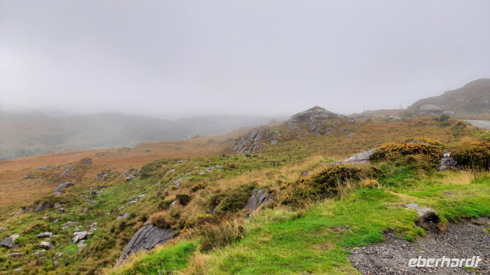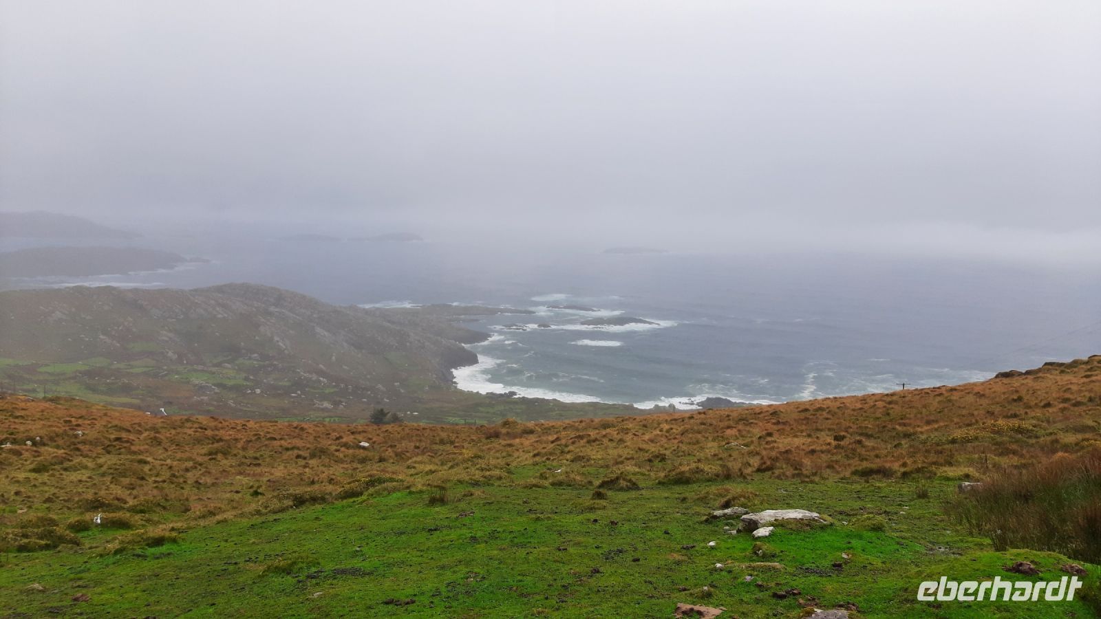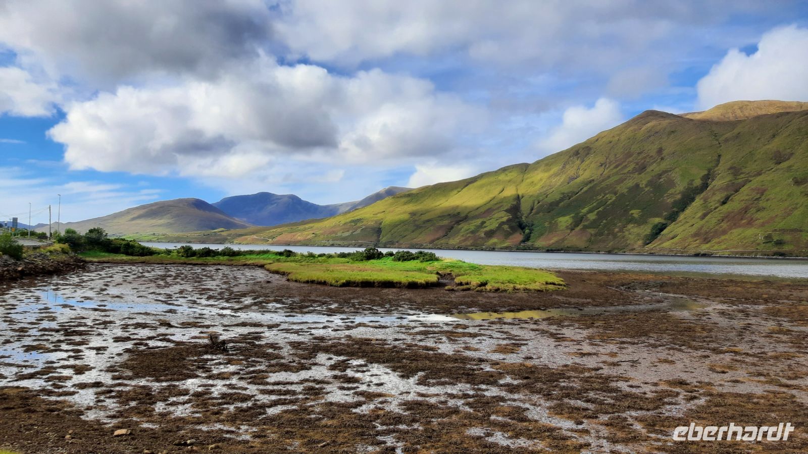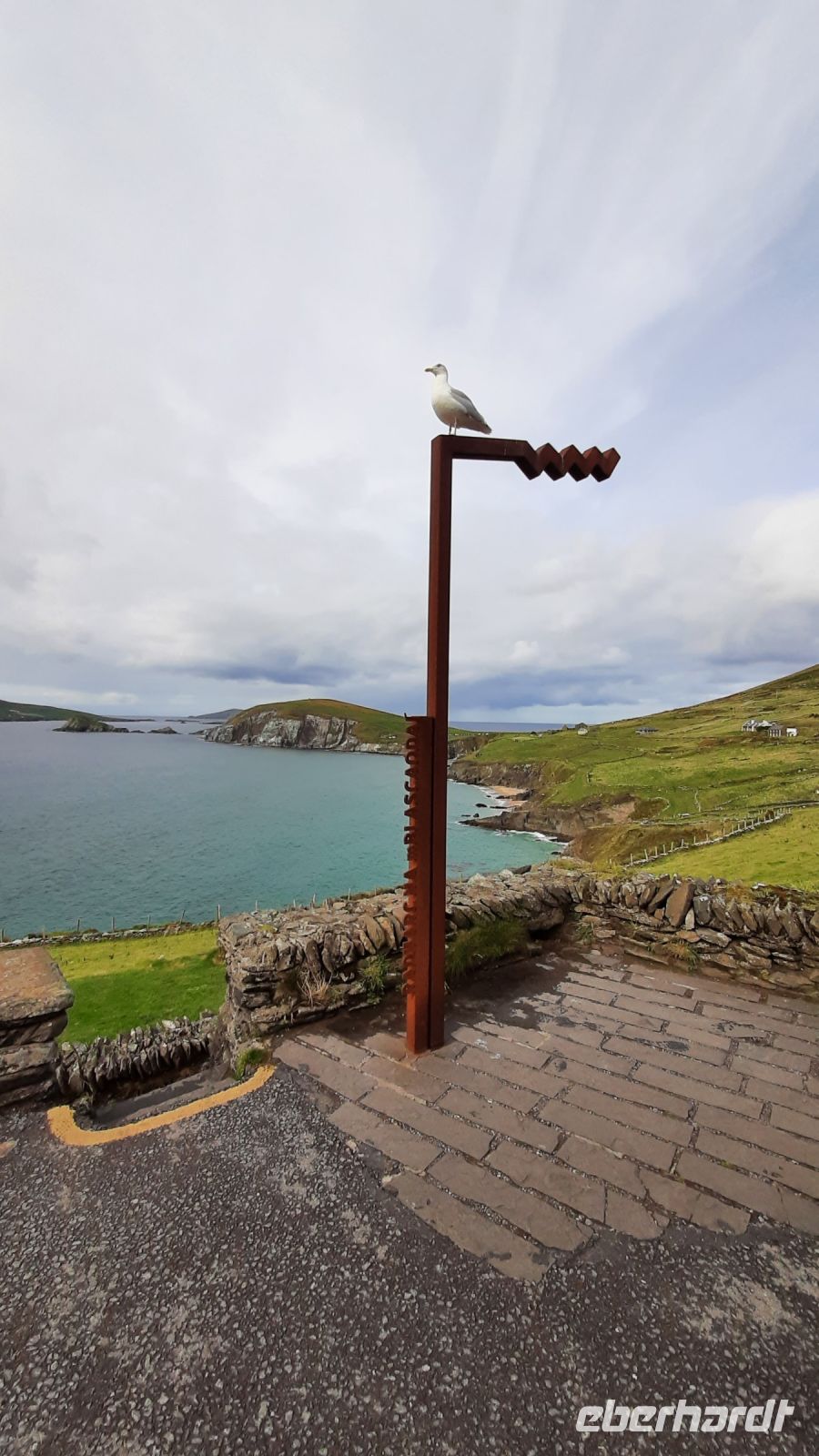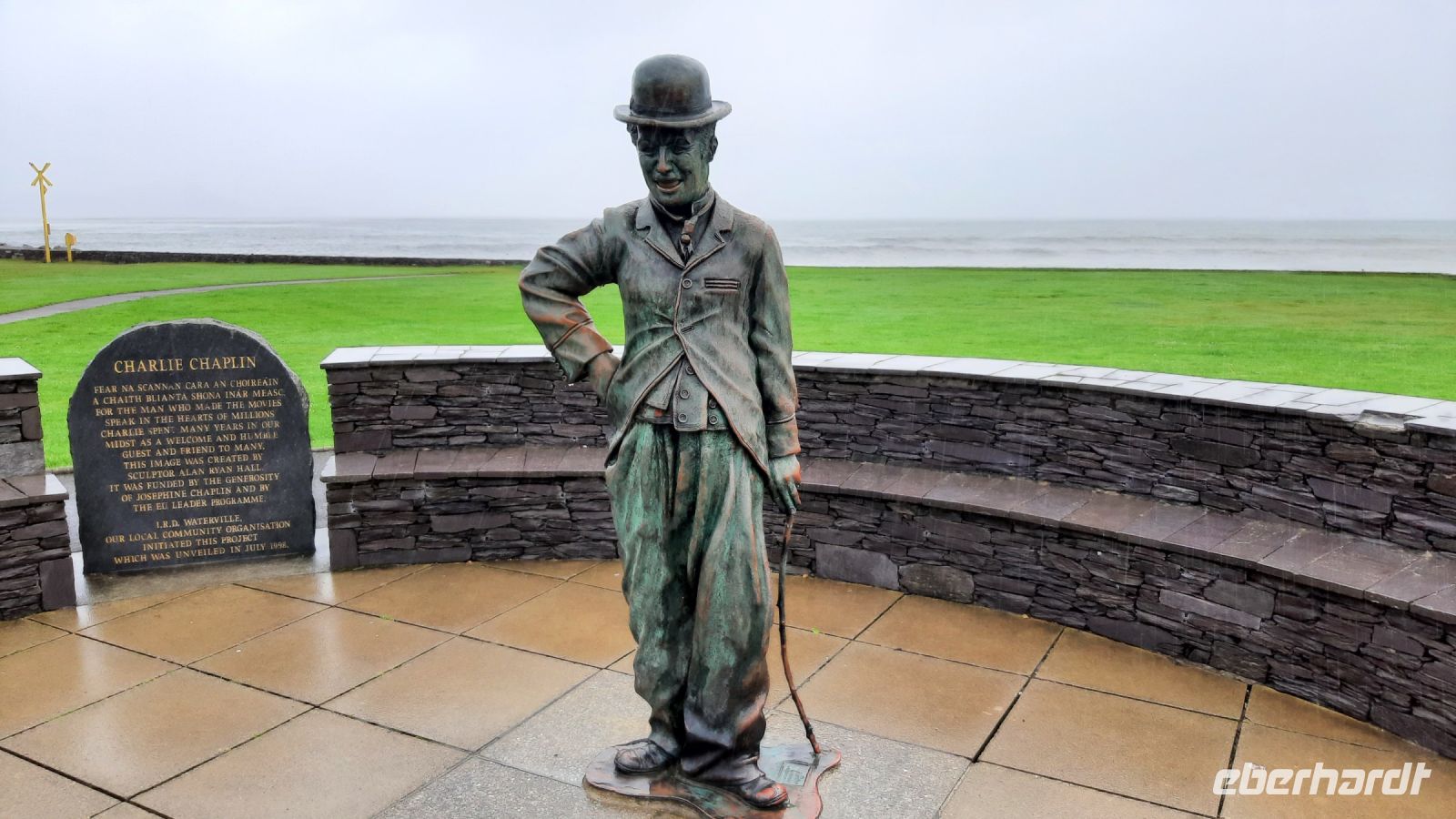 Heute stand der berühmte Ring of Kerry auf unserem Programm, eine Panoramastraße von 179 km Länge. Leider war heute das Wetter schlecht, es gab Sturm und sehr viel Regen, besonders am Vormittag. Der erste Programmpunkt heute war der Besuch einer Schaffarm. Bei einer sehr interessanten Vorführung demonstrierte uns der Schäfer Tom, wie ein Bordercollie eine Gruppe Schafe in die gewünschte Richtung treiben kann. Danach fuhren wir weiter auf dem Ring of Kerry. In der Six18 Skellig Whiskey Destillerie erfuhren wir, wie hier der irische Whiskey und auch Gin hergestellt werden. Zum Schluss verkosteten wir beides. Auf unserer weiteren Fahrt hielten wir mehrmals an für Fotos von der atemberaubenden Landschaft, heute leider von Wolken verhangen. Von Gletschern geformte Berge lösen sich ab mit Tälern, Seen, malerischen Buchten, breiten Stränden und dem Blick auf den Atlantik. Am Mittag statteten wir dem berühmten Charlie Chaplin einen Besuch ab. In Waterville steht seine Statue, mit der wir uns gern fotografieren ließen. Er ist hier in guter Erinnerung, oft verbrachte er in Waterville erholsame Tage. Beim letzten Fotostop am Ladies View hatten wir einen guten Blick auf die Seenlandschaft des Killarney Nationalparks. Wir besuchten den Torc Wasserfall, der heute wegen des vielen Regens besonders große Mengen Wasser zu Tal stürzen ließ. Den Abend verbrachten wir wieder in unserem Hotel in Tralee.