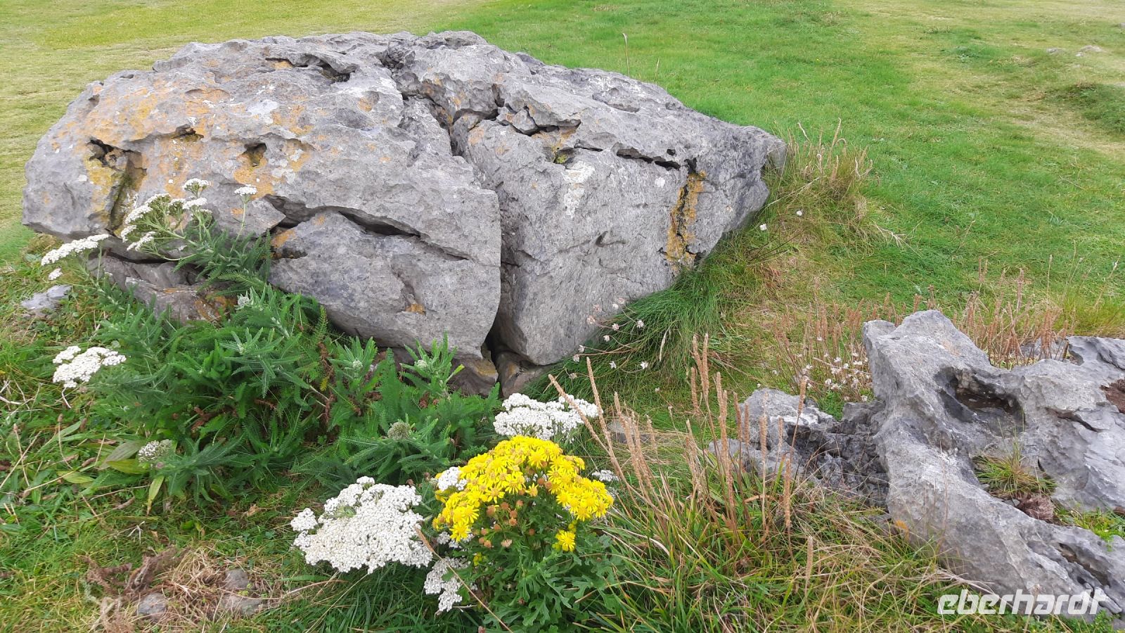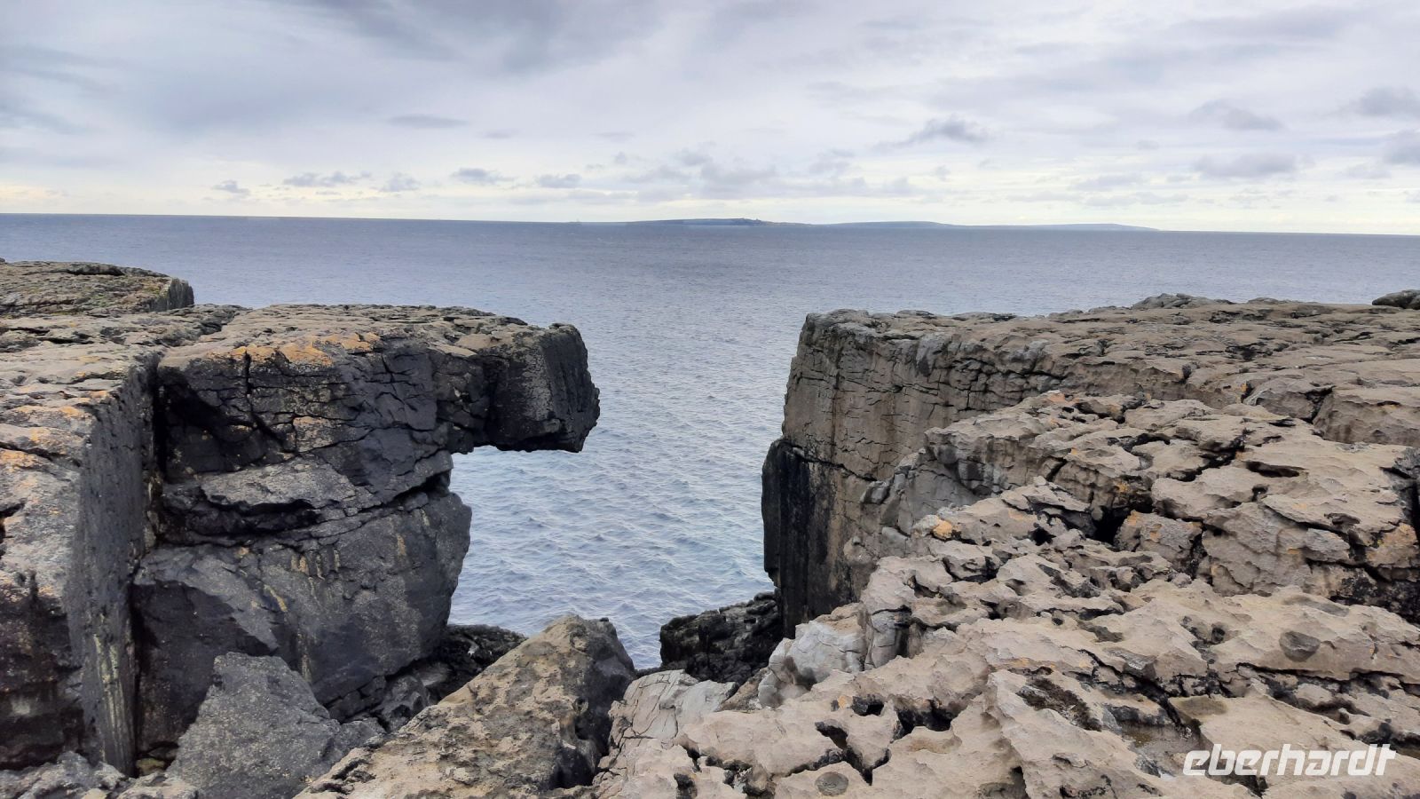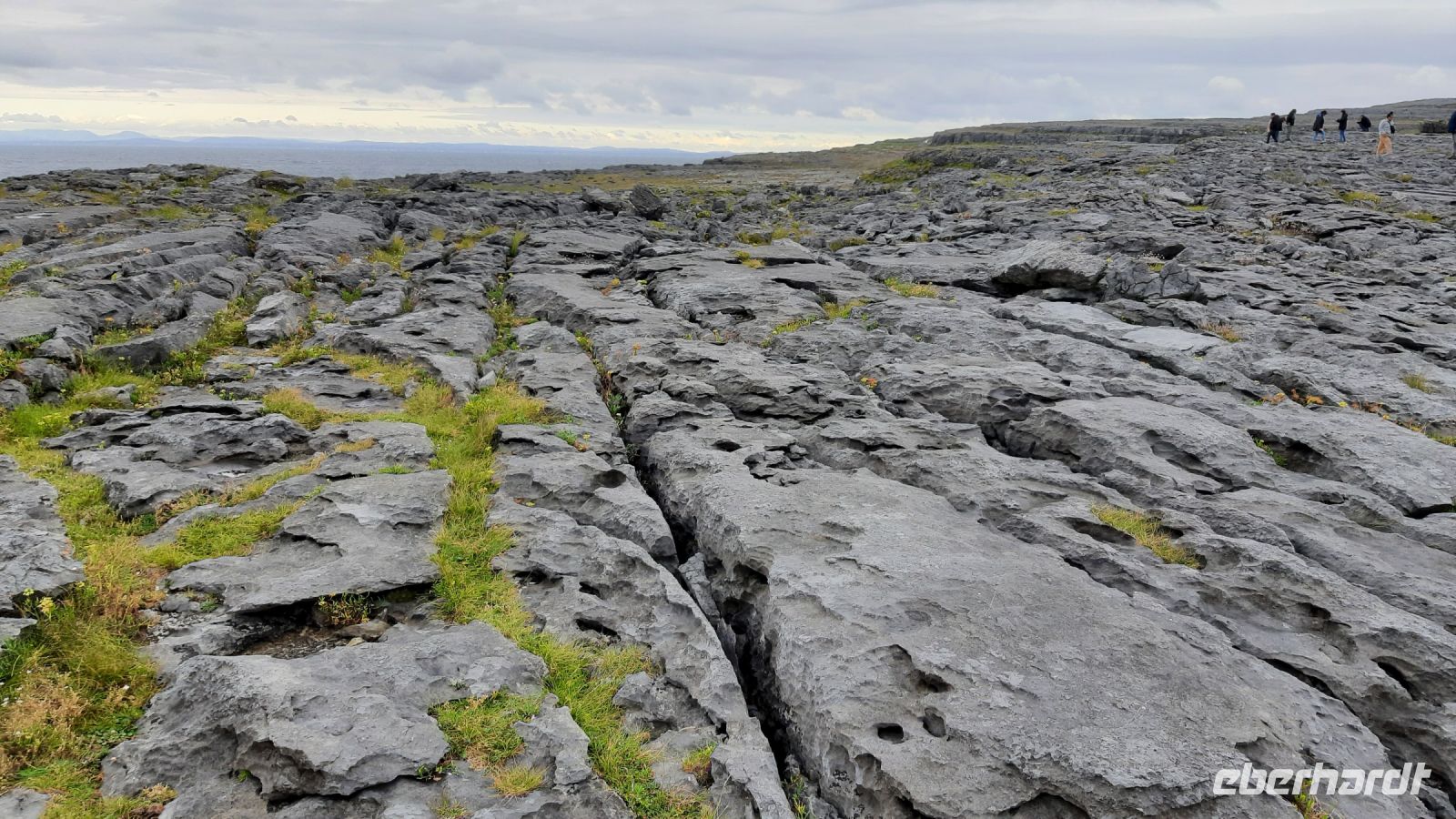 Wir verließen Gort und fuhren in Richtung Südwesten, um zum Burren zu gelangen. Wir fotografierten die Reste der Kilmacduagh Abbey mit dem wohl besterhaltenen Rundturm Irlands, der zwar etwas schief aber dennoch seit dem 12. Jahrhundert steht. Er ist 30 Meter hoch. Wir fuhren vorbei am Leamaneh Castle, wo angeblich heute noch die Rote Mary nachts als Gespenst ihr Unwesen treibt. Der Burren ist eine Karstlandschaft. Flache Kalksteinplatten bedecken das Gelände, fast hat man das Gefühl, in einer Mondlandschaft zu sein. Prähistorische Monumente gibt es zahlreich in dieser einzigartigen Gegend. So hielten wir an am sogenannten Mühlsteintor, dem Poulnabrone Dolmen mitten im Burren. Wir staunten über die frühzeitlichen Menschen, die dieses Steingebilde vor etwa fünfeinhalb Tausend Jahren errichtet haben sollen. Nach einigen weiteren Kilometern erreichten wir schließlich eine der bedeutendsten Sehenswürdigkeiten im Land: die Cliffs of Moher. Wir erkundeten die weltberühmten Felsen von verschiedenen Aussichtspunkten aus. Die imposanten Klippen erheben sich hier in einer Höhe von bis zu 214 Metern aus dem Meer. Danach fuhren wir ein Stück auf dem Wild Atlantic Way. Am Aussichtspunkt Poulsallagh konnten wir auf dem markanten Karstgestein des Burren bis zur felsigen Küste laufen. Hier konnten wir den Ausblick auf die Aran Inseln und die Galway Bucht genießen. Wir stießen mit einem echten irischen Whiskey an auf eine weitere schöne gemeinsame Reise. Unser weiterer Weg führte uns entlang der Galway Bucht. In Kinvarra machten wir eine Pause für Kaffee und ein paar Einkäufe, bevor wir noch einen kurzen Spaziergang zum Dunguaire Castle unternahmen. Auch hier wurde noch das ein oder andere Foto gemacht. Den weiteren Nachmittag verbrachten wir in Gort. Unser Abendessen hatten wir wieder in unserem Lady Gregory Hotel.