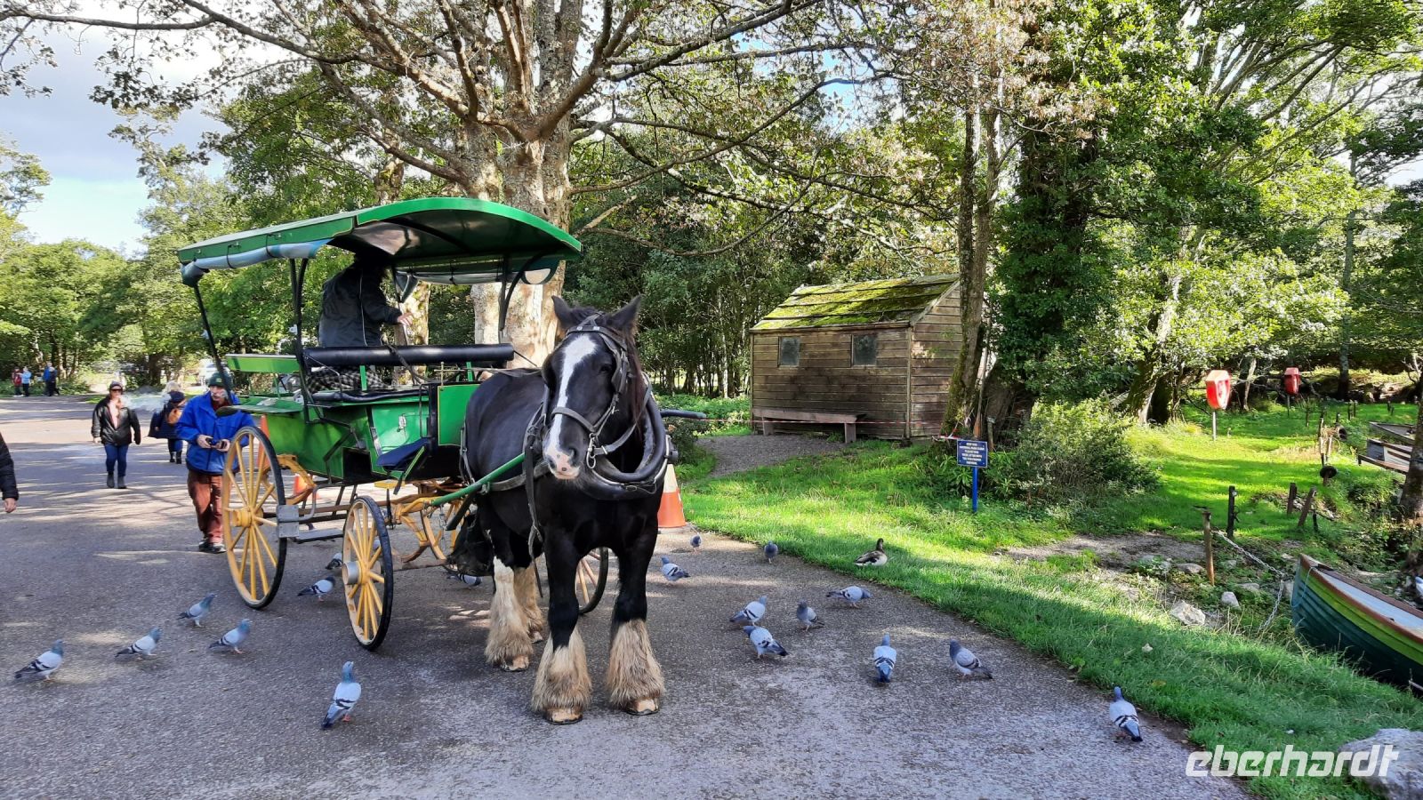Bereits am frühen Morgen verließen wir unser Hotel in Cork. Unser irischer Busfahrer Patrick zeigte uns bei einer kleinen Stadtrundfahrt „seine“ Stadt. Danach machten wir uns auf in Richtung Killarney. Am Ross Castle teilten wir uns auf. Einige besichtigten die historische Burg, die an einem malerisch gelegenen See steht, andere unternahmen eine Bootsfahrt, die meisten Gäste aber begaben sich auf eine Wanderung auf Ross Island. Hier gibt es noch wunderbare alte Eichenwälder, bemooste Steine, Farne und immer wieder herrliche Ausblicke auf den See. Wir kamen vorbei an einer früheren Kupfermine, stiegen auf den Gouvernors Rock und erreichten bei Liberty Point das Ende der Halbinsel. Im Anschluss daran fuhren wir zu Muckross House and Gardens. Wir hatten Zeit zum Mittagessen, spazierten durch die wunderbar angelegten Gärten, fotografierten das Herrenhaus und die Pferdekutschen, die hier die Besucher durch die Anlagen chauffieren. Am Nachmittag statteten wir Killarney noch einen Besuch ab. Hier gibt es schöne bunte Häuser, urige Pubs und Geschäfte mit typischen irischen Artikeln und Souvenirs. In der Whiskey Experience probierten wir einen irischen Whiskey. Nach dem Abendessen erwartete uns ein besonderes Vergnügen: der Besuch der irischen Tanz- und Musikshow Celtic Steps in Killarney, eine tolle Show mit irischer Musik, Tanz und Gesang.