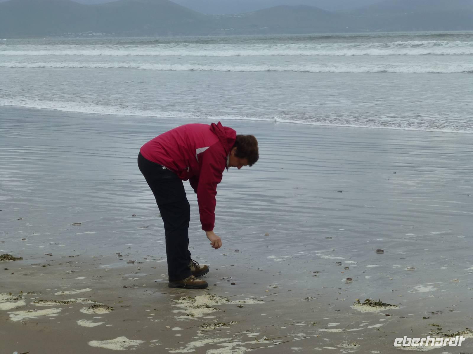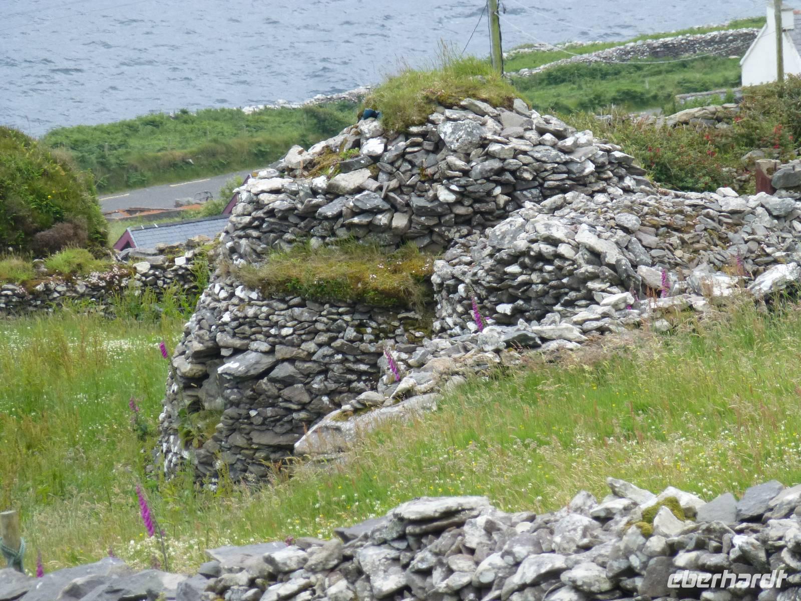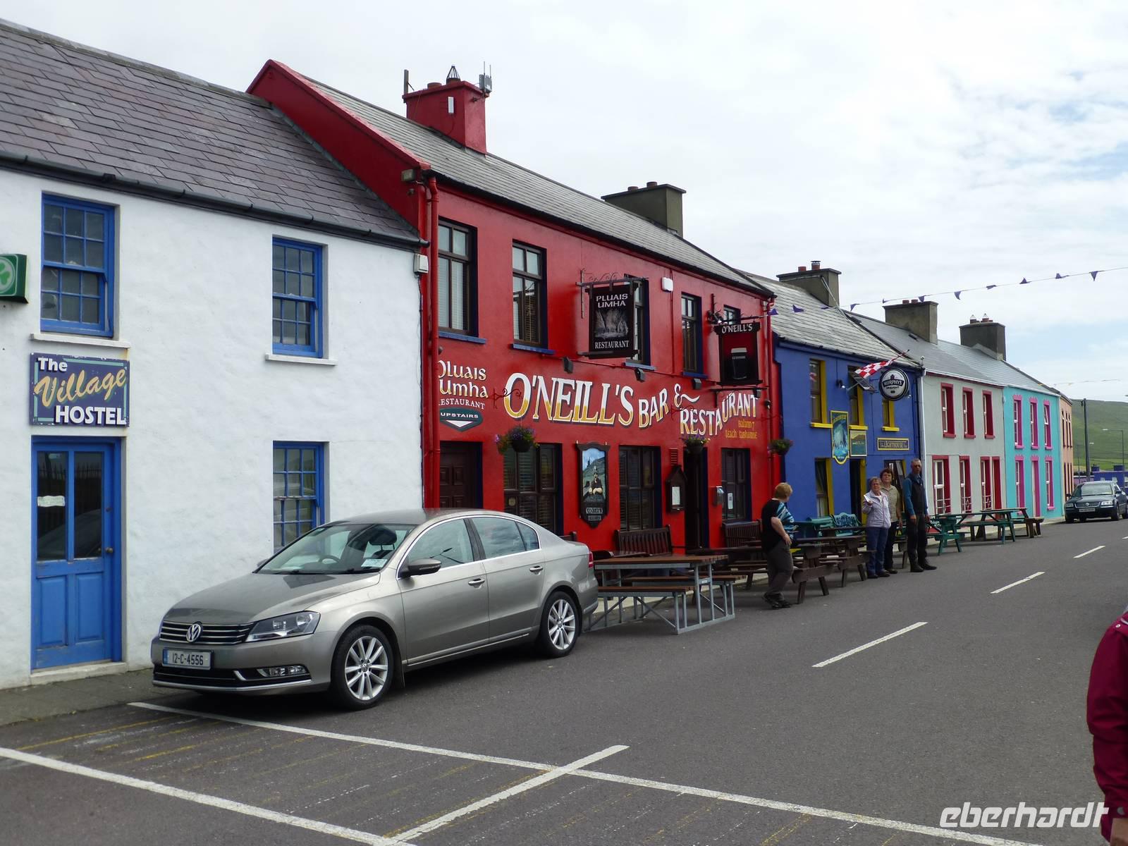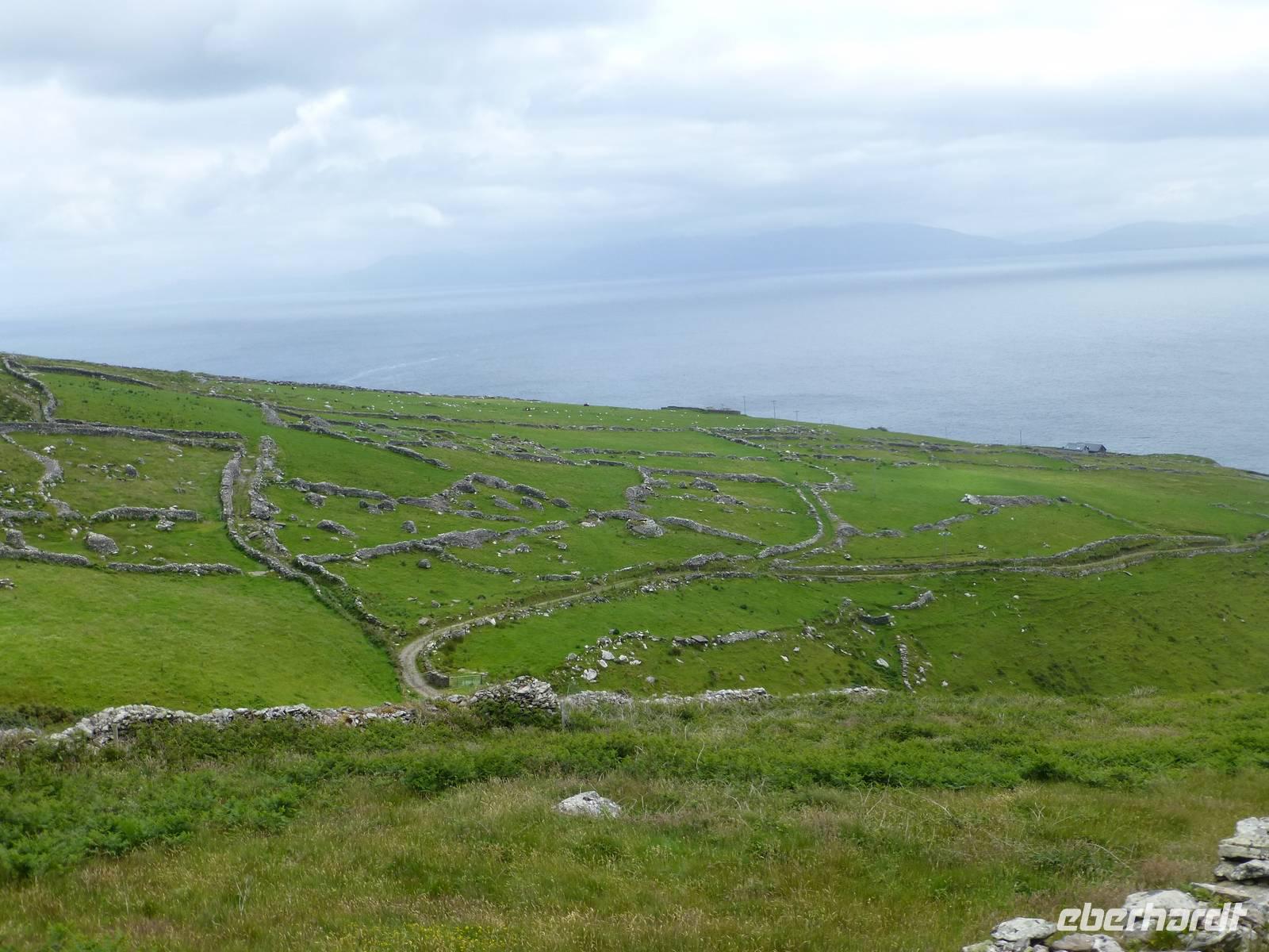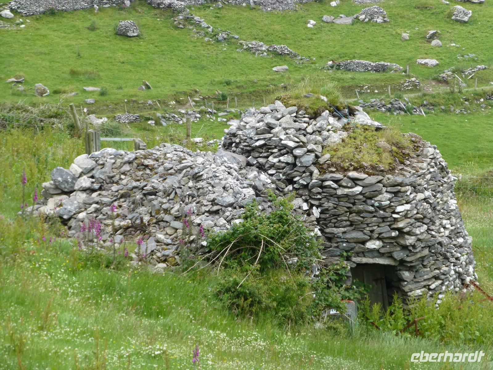 Nach dem Frühstück und der Verteilung der Lunchpakete machen wir uns auf den Weg. Das Wetter zeigt sich von seiner besten Seite, bereits am Morgen scheint die Sonne. Einen ersten kurzen Halt mache wir an "Inch Beach", einer 3,5 Kilometer langen Sanddüne vor Castlemaine Harbour. Bei einem kurzen Spaziergang lassen wir und den Wind um die Nase wehen. Vorbei an Dingle erreichen wir Ventry Harbour. An Paddie O'Shea's Pub beginnt unser Wanderung. Zuerst entlang des Strandes, laufen wir später durch eine kleine Siedlung und zwischen Weideflächen entlang. Nach einem Stück entlang der Straße zum Slea Head, geht es wieder leicht bergan und wir machen eine Pause mit schönem Blick auf die Küste und die gegenüber der Dingle Bay liegenden Iveragh Halbinsel. Neugierige Kühe wollen scheinbar gern etwas von unseren Sandwiches haben. Die Sicht ist recht gut und so können wir am Horizont auch die Inseln Skellig Michael und Little Skellig sehen. Später erreichen wir oberhalb des Slea Head bei Dunquinn das Ende unserer Wanderung. Heute war Dan unser Fahrer, er erwartet uns an dieser Stelle. Das Wetter hat es grundsätzlich gut gemeint, neben vielen Wolken hat sich auch einige Male die Sonne kurz gezeigt. Auf dem Weg zurück nach Dingle stoppen wir noch beim Galarus Oratory. Bei diesem Gebäude handelt es sich um ein frühchristliches Gebetshaus, welches in perfekter Trockensteinbauweise vor ca. 1300 Jahren errichtet wurde. Nach einem Stopp in Dingle erreichen wir am Abend wieder unser Hotel.