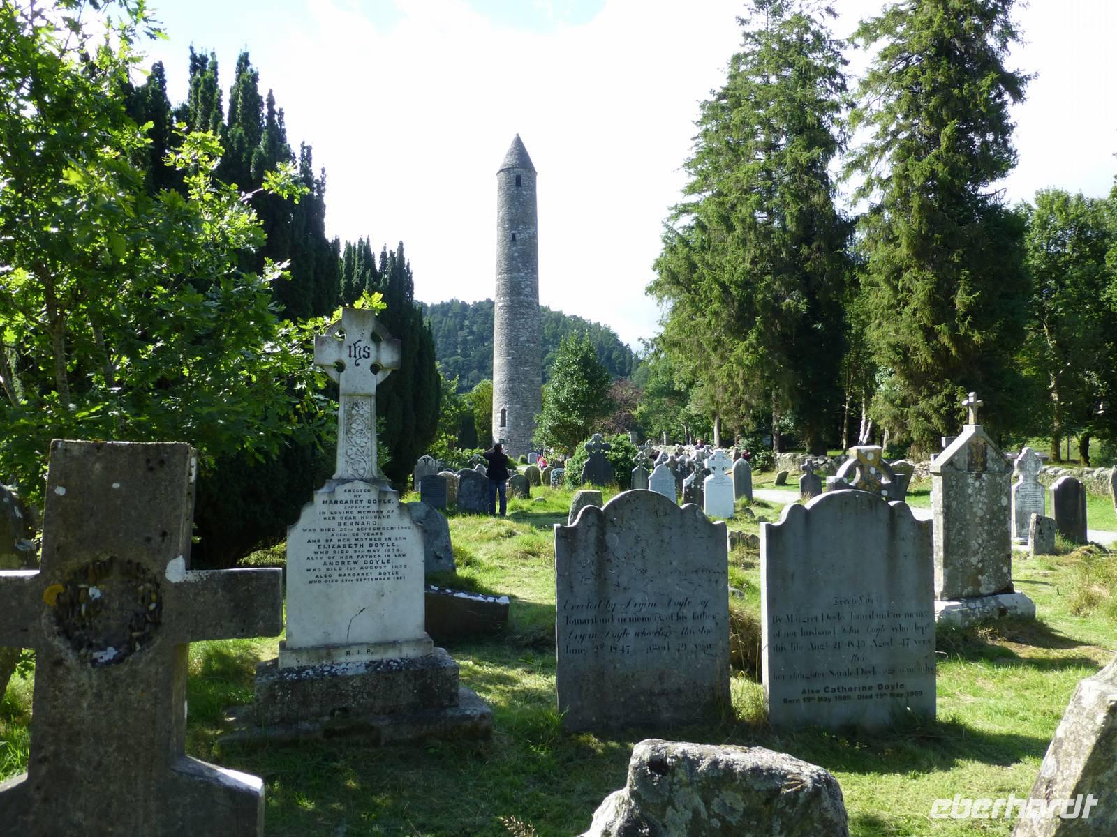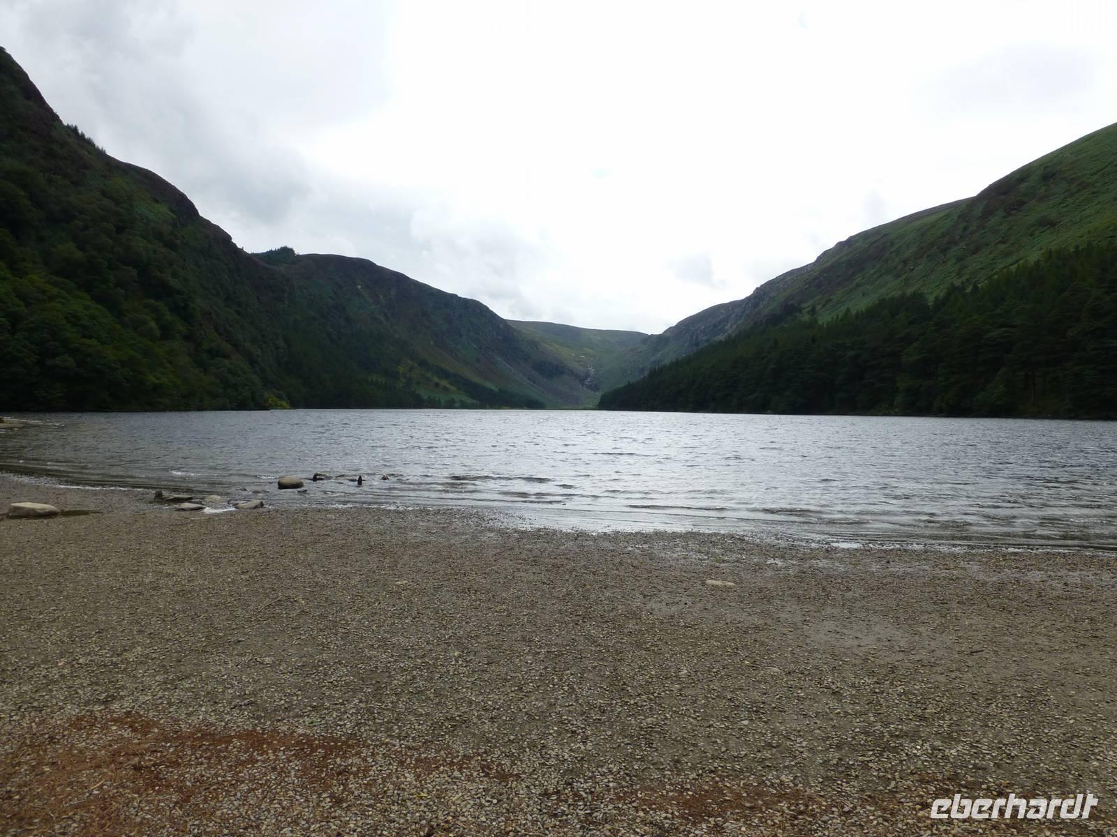 Wir treffen uns am Vormittag auf dem Flughafen Berlin Schönefeld. Nach dem Check in und allen weiteren Formalitäten fliegen wir mit der irischen Fluggesellschaft Aer Lingus nach Dublin. Nach der Einreise werden wir von unserem irischen Buschauffeur Neil begrüßt. Auf dem Weg nach Kilkenny machen wir einen Abstecher nach Glendalough in die Wicklow Mountains. Dabei streifen wir die Hauptstadt Dublin nur am Rande, am Ende unserer Reise werden wir dahin zurück kehren. In Glendalough besuchen wir die Reste des ehemaligen gleichnamigen frühchristlichen Klosters im Tal der zwei Seen. Leider verhindert ein starker Regenschauer unseren Spaziergang entlang des Lower Lake und Upper Lake, da die meisten ihren Regenschirm noch im Koffer haben. So fahren wir noch für einen kurzen Stopp mit dem Bus zum Upper Lake, von wo man einen herrlichen Blick zum Wicklow Gap hat. Über die Berge fahren wir dann Richtung Kilkenny und erreichen am Abend das Pembroke Hotel im Stadtzentrum des Ortes. Nach einem sehr guten Abendessen geht es noch auf einen Bummel durch den Ort.