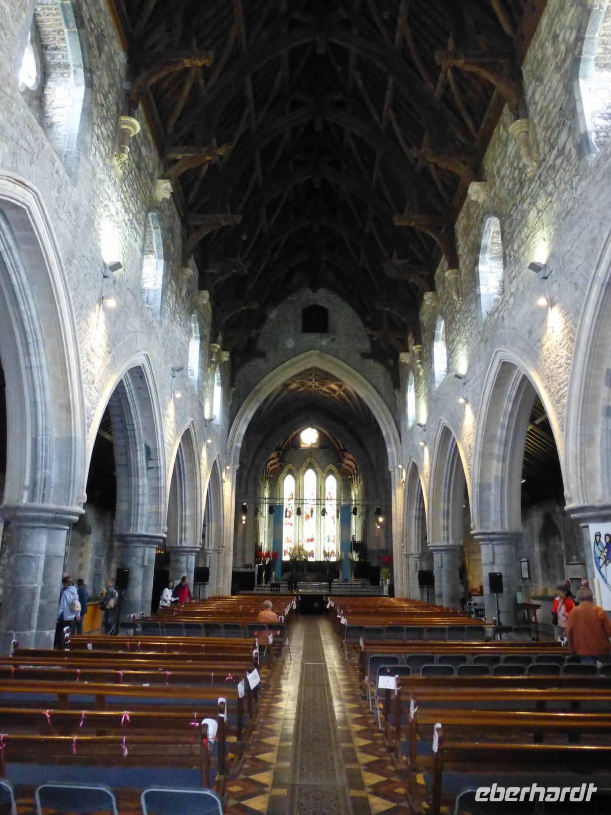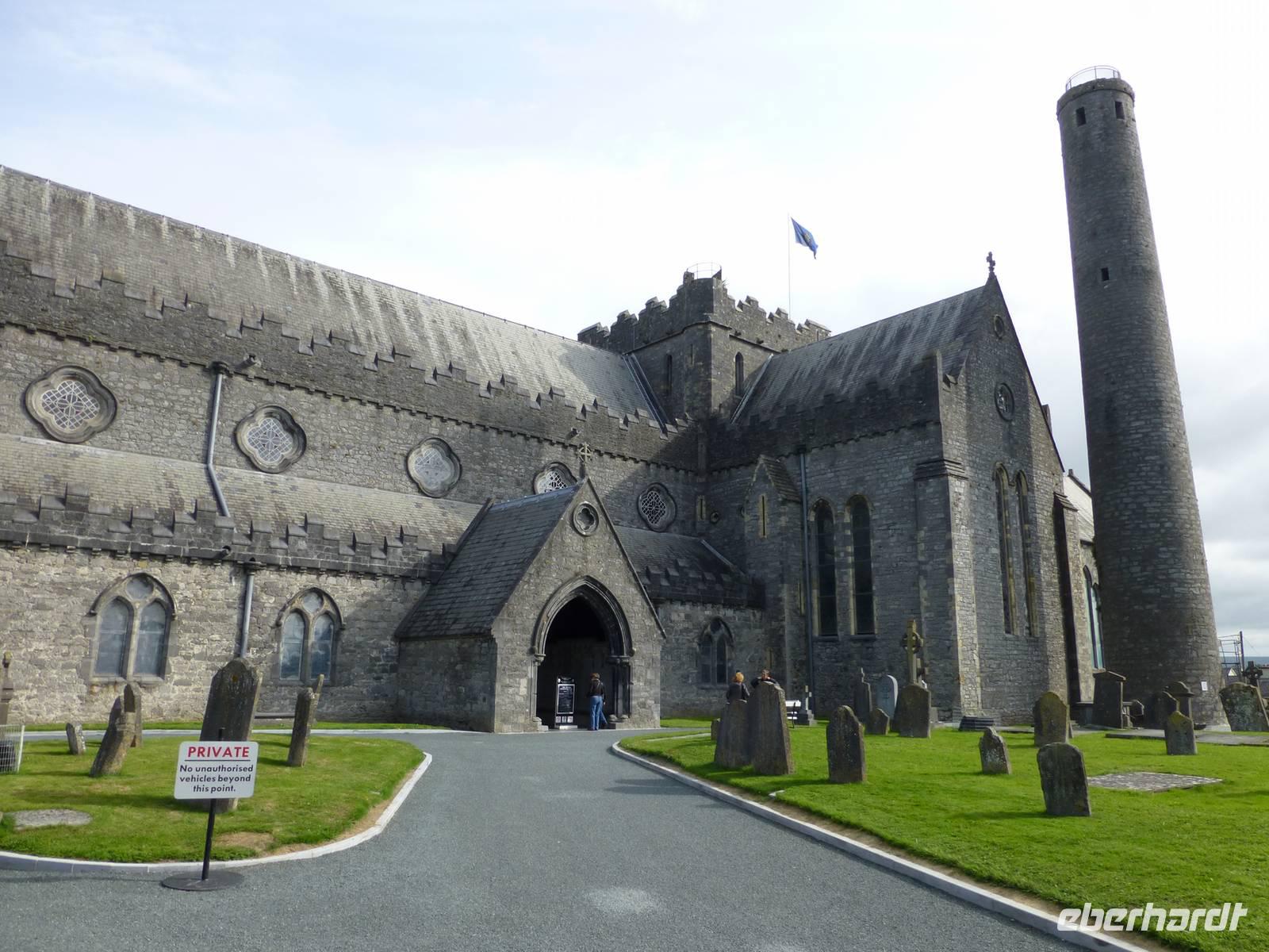Nach dem Frühstück unternehmen wir einen Stadtspaziergang durch Kilkenny, vorbei am Rathaus „Tholsel", gehen durch die „Butterslip" und vorbei am Kyntelers Inn. Wir sehen das Gericht, den alten Eingang zur Smitwick Brauerei, das Handelshaus der Familie Rothe, das Dominikanerkloster Black Abbey und besuchen auch die Hauptkirche des Ortes, die St. Canice Cathedral. Normalerweise besuchen wir immer das Kilkenny Castle, das war heute allerdings nicht möglich, das Kilkenny Arts Festival hat uns da wohl einen Strich durch die Rechnung gemacht. Auf dem Programm steht es dennoch und wir holen den Besuch auf dem Rückweg nach Dublin nach. Anschließend führt uns die Reise über Cashel, mit einer kleinen Pause für das Mittagessen nach Midelton. Dort befindet sich die ""Old Midelton Distillery". Bei einer Führung erfahren wir alles über die Geheimnisse der irischen Whiskey-Herstellung. Auch heute noch wird hier der größte Teil des irischen Whiskeys hergestellt, allerdings in einer modernen Brennerei. Nach dem Rundgang können wir einen Whiskey verkosten. Einige Gäste haben auch die Möglichkeit an einem Whiskey Tasting teilzunehmen und die Unterschiede zwischen irischen, schottischen und amerikanischen Whiskey bzw. Whisky heraus zu schmecken. Geehrt werden sie dafür mit einer Urkunde. Vorbei an Cork fahren wir dann weiter zum "Oaks Hotel" nach Killarney, welches uns Unterkunft für die nächsten drei Nächte gewährt.