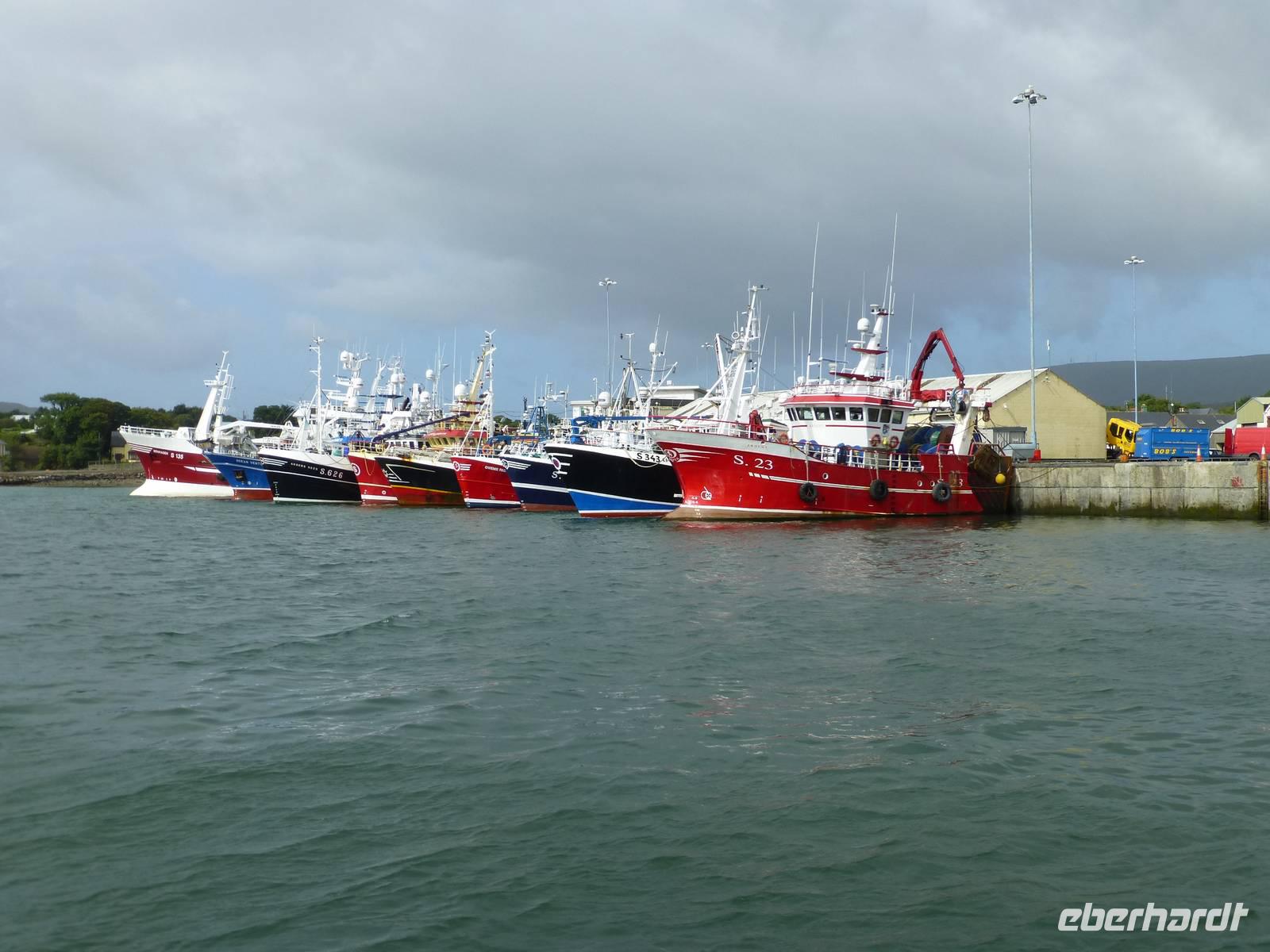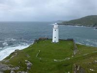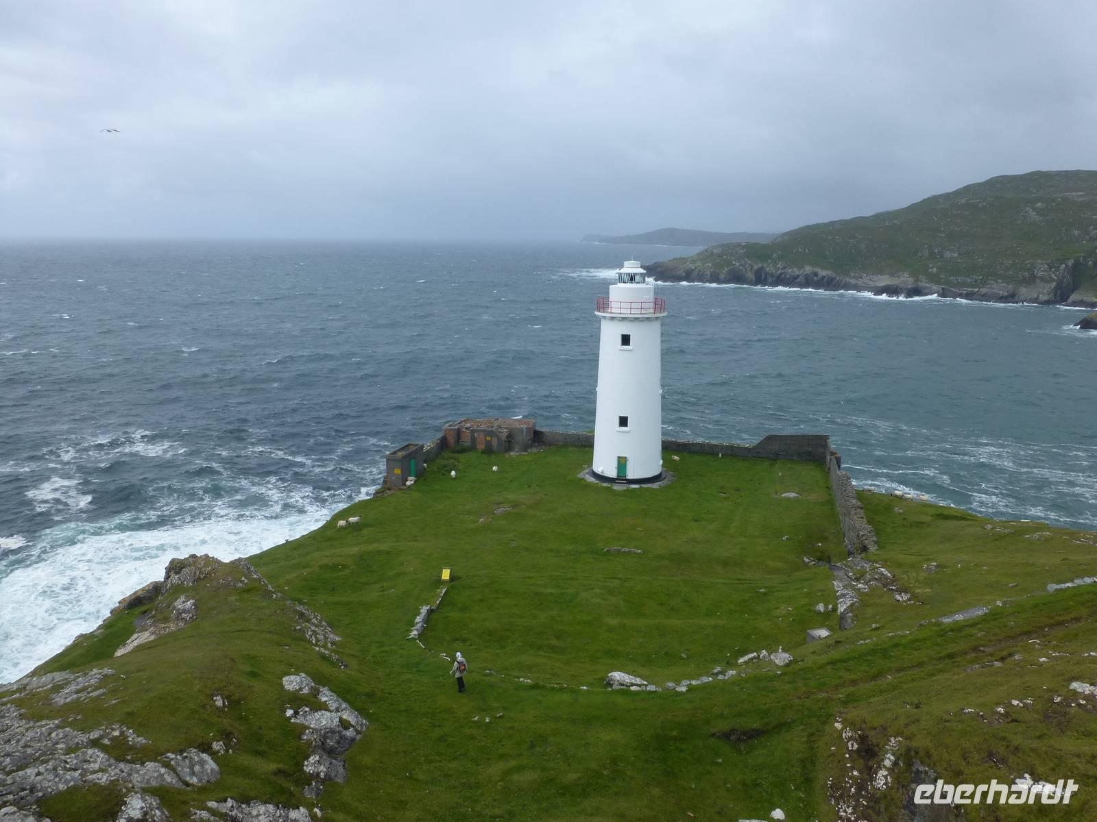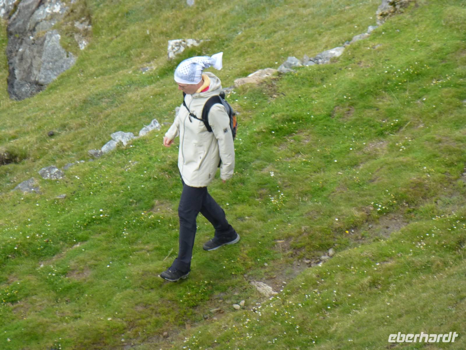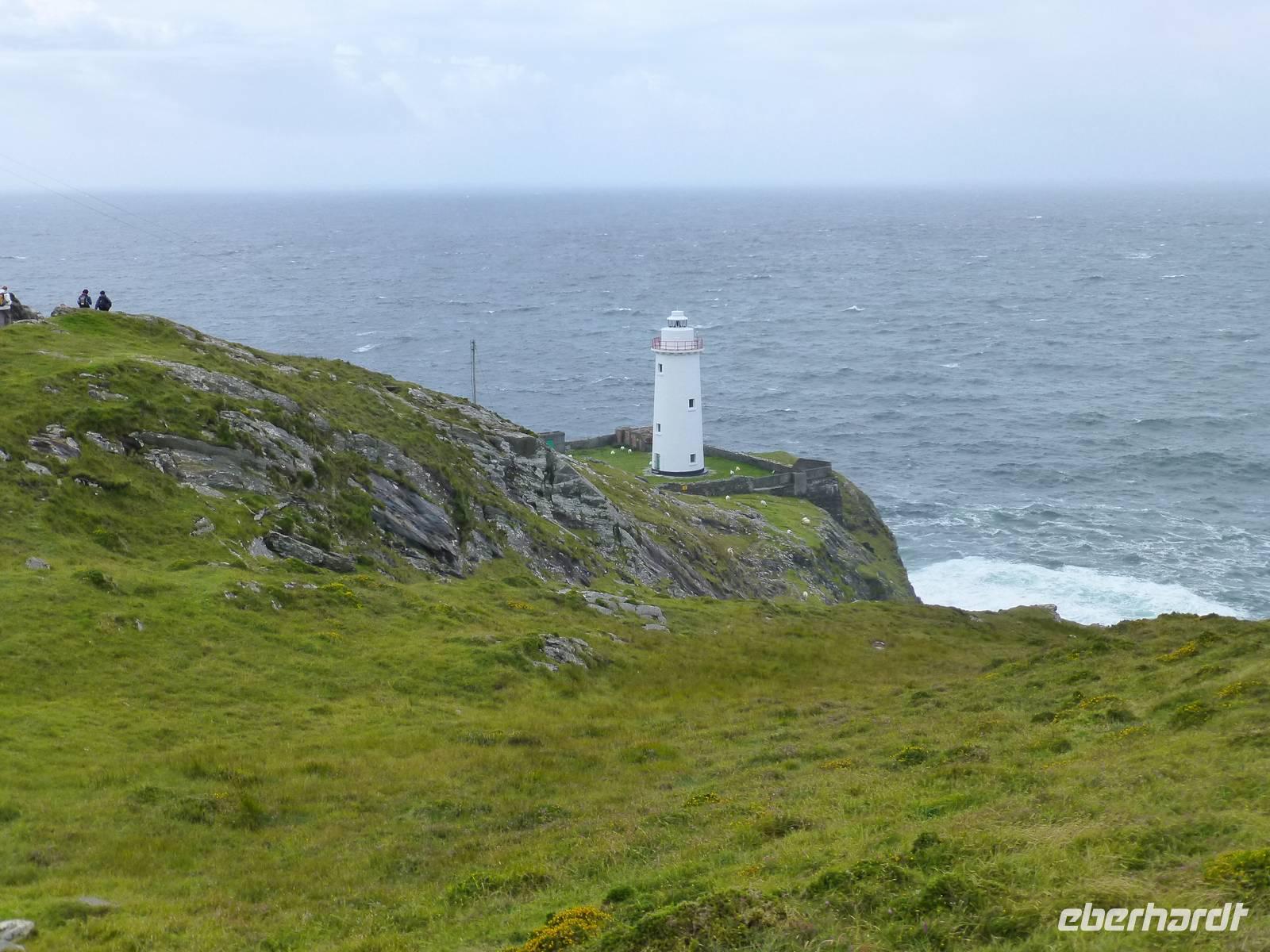 Unser Weg führt uns heute noch einmal nach Castletownbere, einem Ort mit natürlichem Tiefseehafen und der irischen Fischereischule. Nach der kurzen Überfahrt mit Bere Island Ferrys beginnen wir unsere Wanderung. Unterwegs begegnen wir alten Geschützstellungen der britischen Armee, dieses hatte bis 1936 Schiffe der Royal Navy hier in einem Vertragshafen stationiert. Über einen alten Fahrweg erreichen wir an der Westspitze von Bere Island den Ardnakinna Leuchtturm, welcher seit 1965 in Betrieb ist. Von jetzt an weht uns meist auch eine steife Brise ins Gesicht, wir werden mit reichlich Sauerstoff versorgt. Bergan, ab und zu durch feuchte Stellen geht es bis zum ehemaligen Signalturm, welcher 1964 bei einem Sturm einstürzte. Die Aussicht ist fantastisch, die Sonne lacht obwohl einige Wolkenfelder über uns hinweg ziehen. Wir nutzen diesen Platz für unsere Mittagspause. Wir gehen bergab, erreichen später einen Fahrweg und steigen hinauf zum weithin sichtbaren Kreuz, welches im Heiligen Jahr 1950 von den Bewohnern Bere Islands aufgestellt wurde. Nach dem Abstieg sehen wir noch einen "Standing Stone" aus vergangener Zeit und laufen dann auf der Straße wieder zur Fähre zurück. Zurück in Castletownbere wollen wir noch Mac Cartys's Bar besuchen. Heute ist die Kneipe jedoch so brechend voll, dass es keinen Platz gibt. In Irland ist „Bank Holiday" - verlängertes Wochenende - und gleichzeitig Regatta und Jahrmarkt in Castletownbere. Dieser Pub ist durch das gleichnamige Buch bekannt geworden. Im inneren fühlt man sich zurückversetzt in vergangene Zeiten, kann man doch hier auch noch Waschmittel, Kekse und reichlich andere Dinge kaufen. Wir fahren zurück nach Glengariff, gehen in einen Pub im Ort und lassen uns dort ein Bier oder einen Irish Coffee schmecken. Nach dem Abendessen verabschieden wir uns herzlich bei Jan, welcher die Gruppe die Tage zuvor auf allen Wanderungen geführt hat.