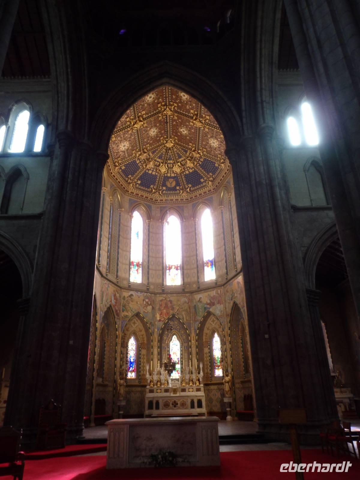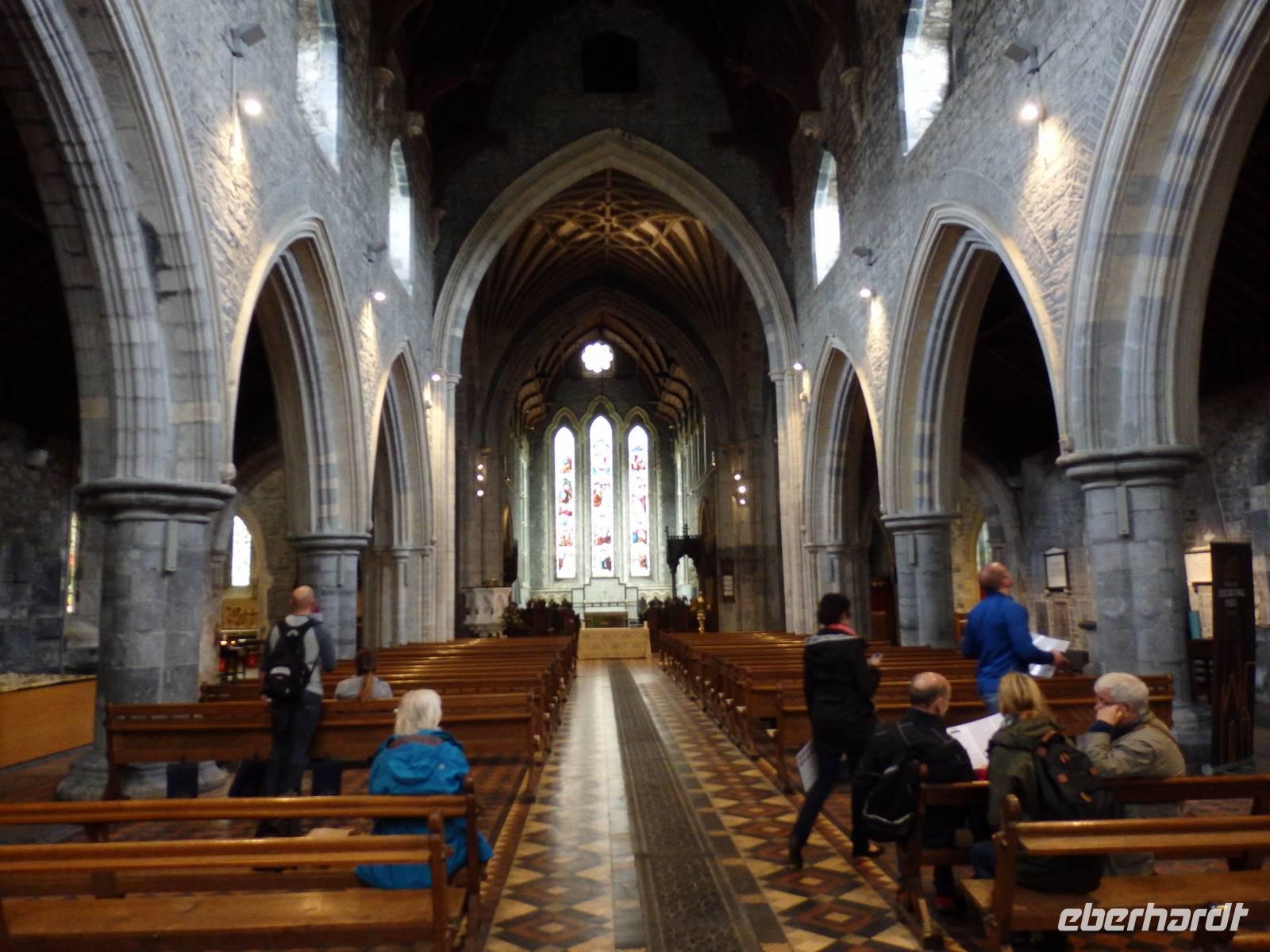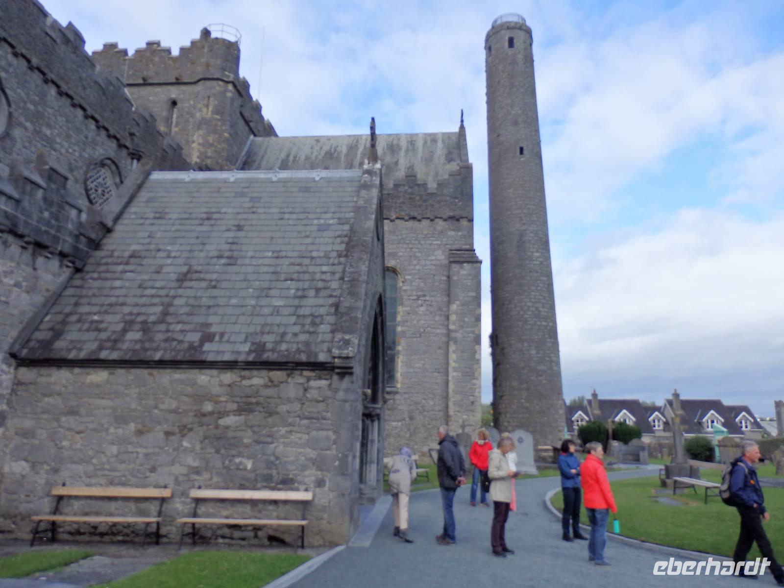 Früh zeitig gegen 04:00 Uhr traf ich mich mit der VHS- Reisegruppe am Flughafen in Leipzig. Wir fliegen über Frankfurt / Main nach Dublin. Hier erwartet uns der Busfahrer Ray. Wir fahren durch den Phönix-Park, der grühnen Lunge der irischen Hauptstadt, sehen hier u.a.die Residenz des irischen Präsidenten, die amerikanische Botschaft und das Kreuz, welches zu Ehren des Pabstbesuches errichtet wurde. Weiter geht es ins Stadtzentrum zum Hotel Jury`s Inn, hier checken die Gäste ein und treffen sich später mit Herrn Kuchenbecker. Kurze Zeit später kommt die Wandergruppe mit Ralf Kuchenbecker aus Berlin am Hotel an. Sofort geht es weiter mit dem Busfahrer John und der Wandergruppe nach Kilkenny. Nach dem Check in im Hotel River Court unternehmen wir einen gemeinsamen Stadtbummel, dabei sehen wir die bekannte Brauerei Smithwick, die St. Canices Cathedral mit Rundturm und die St. Mary`s Cathedral. In der St. Canice Cathedral befinden sich viele Grablegen der bekannten Familie Butler.