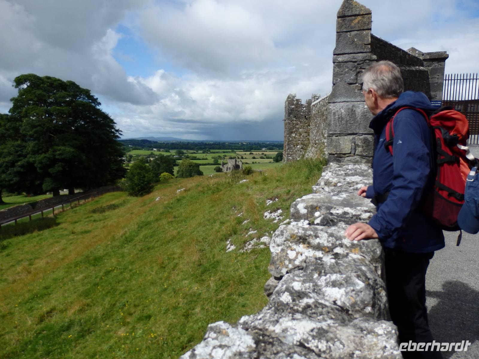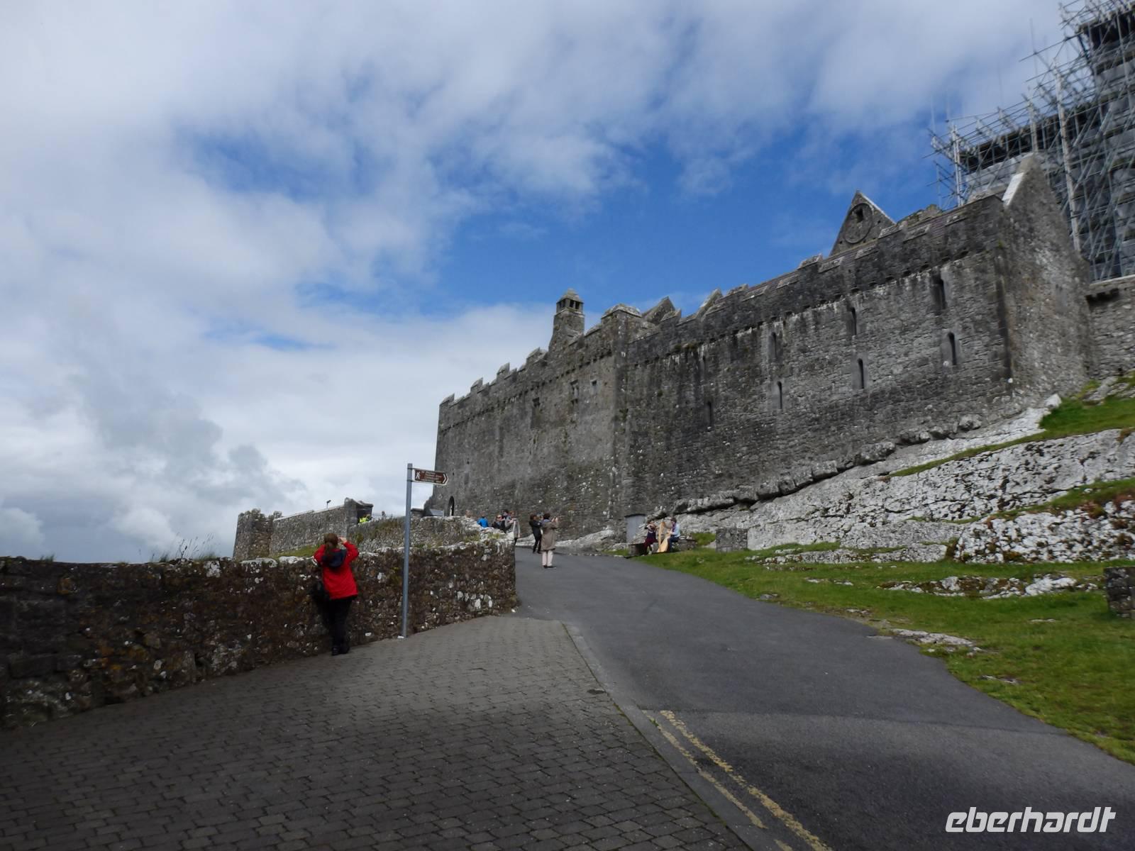 Unser Fahrer John war inzwischen mit dem Bus und unseren Koffern und Rucksäcken vorgefahren und so ging es weiter in Richtung Killarney. In Cashle legten wir einen kurzen Stop am Rock of Cashle ein. Genügend Zeit für paar Foto´s vom 70 m hohen Berg mit den beeindruckenden Gebäuderesten vom ehemaligen Königssitz von Munster und für einen Kaffee und einen kleinen Imbiss. Am Rock erlebten wir Folkloremusik auf einer Harfe und einer Geige, gespielt von zwei jungen Mädchen.