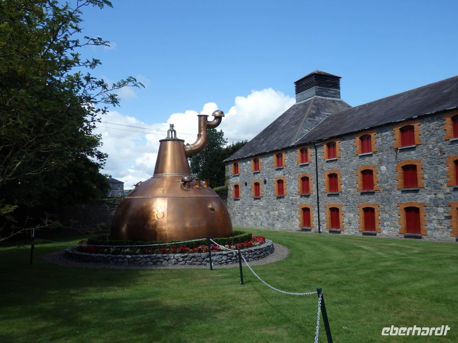 Der Höhepunkt des Tages war die Besichtigung dere ehemaligen Old Midelton Distillery. Nina zeigte und erklärte uns sehr anschaulich, wie Whiskey hergestellt wird und weshalb der hier hergestellte Whiskey 3x gebrannt wird und damit besonders mild schmeckt. Nach der Führung durch die historischen Produktionsanlagen und Lagerräume hatten wir Gelegenheit das edle Getränk zu verkosten. Einige Teilnehmer der Gruppe konnten sogar die Unterschiede zwischen irischen, schottischen und amerikanischen Whiskey herausschmecken. Im angeschlossenen Shop fanden wir das eine oder andere Souvenier für die Daheimgebliebenen.