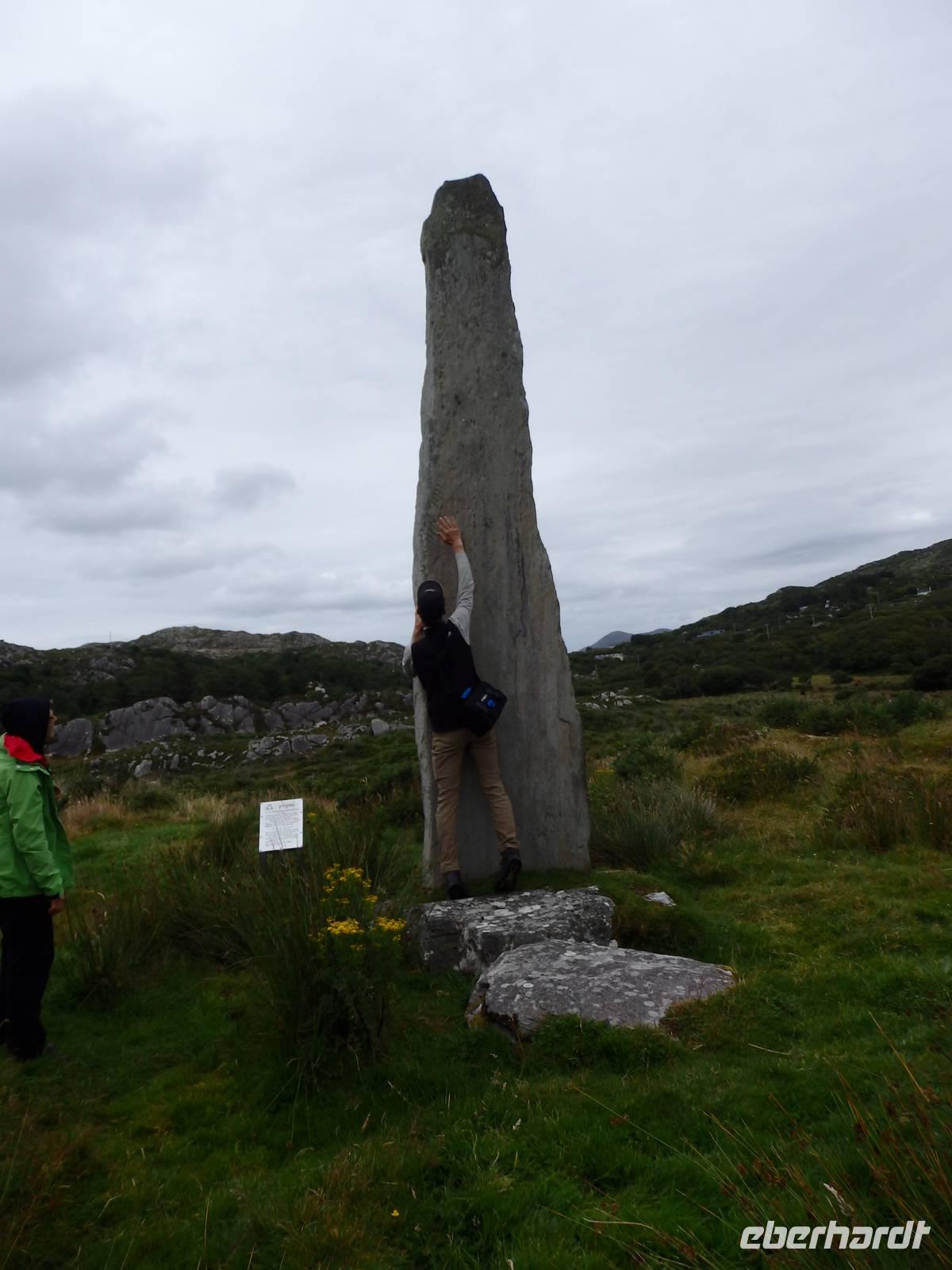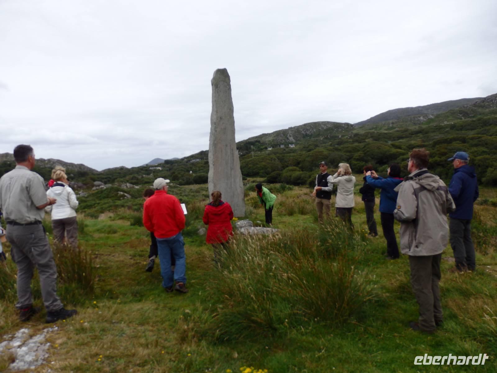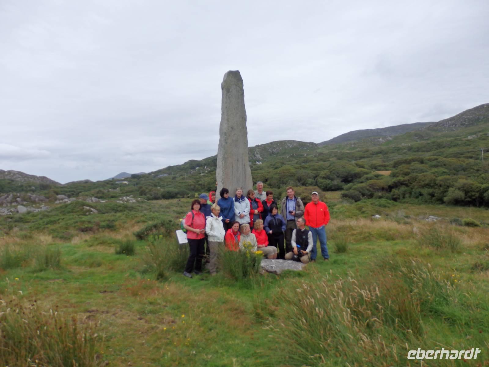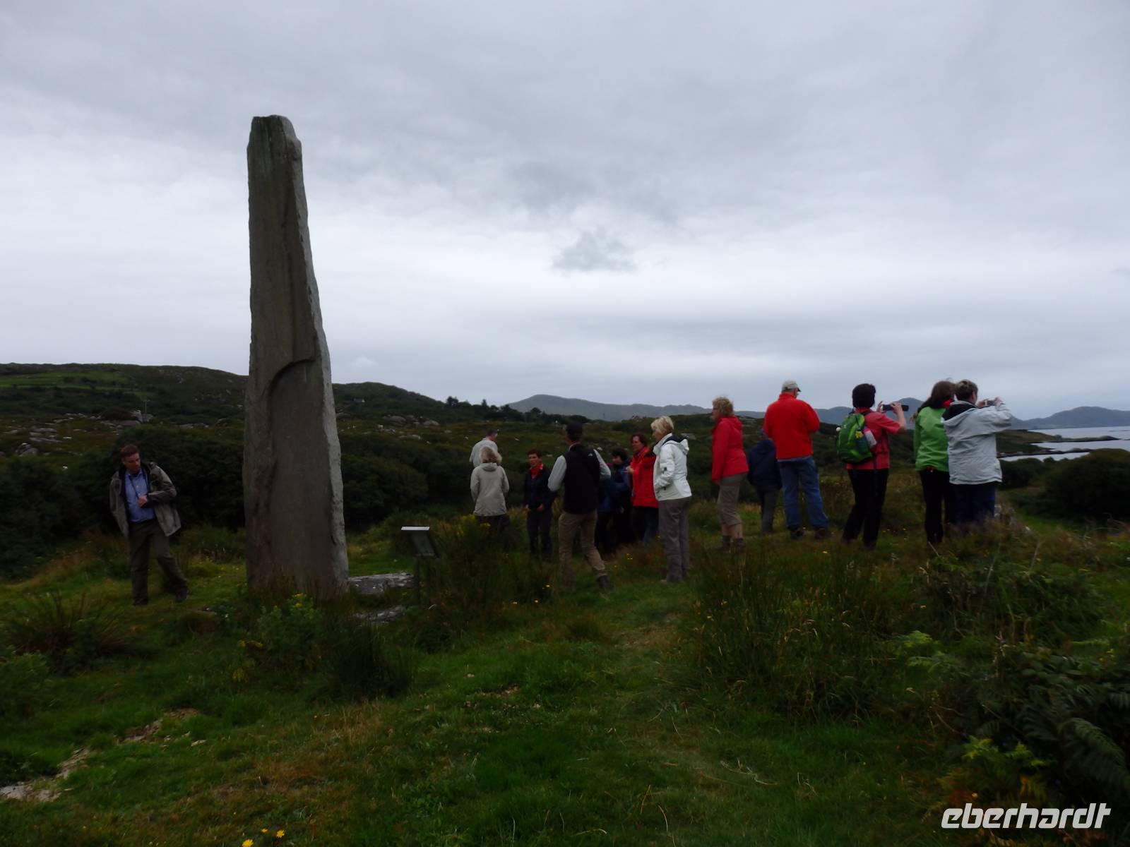 Nach dem Frühstück und dem Empfang der Lunchpakete geht es los. Unser Fahrer bringt uns zum Ausgangspunkt unserer Tour. Wir steigen an der einzigen Seilbahn Irlands aus und wandern bergauf. Diese Bahn verbindet das Festland mit der ca. 400 m entfernten Insel Dursey. Auch heute haben wir wieder bestes Wanderwetter. Auf dem Bergplateau angekommen haben wir ein herrliches Panorama mit steilen Klippen und bizarren Felsen vor uns. Nach dem Abstieg verzehren wir unsere mitgerachten Sandwiches und unser Obst an einem herlichen Sandstrand in Garinish und ruhen ein wenig aus. Auf dem weiteren Weg sehen wir zwei Esel und viele farbig markierte Schafe und allerlei Blumen. Am Bus angekommen geht es dann weiter in den kleinen Ort Allihies. Hier wurde früher Kupfer abgebaut. In dem an das Museum angeschlossene Kaffee gab es eine kleine Stärkung für uns. Auf der Fahrt zum Hotel gab es noch einen Fotostop am 5,3m hohen Ogham Stone, er gilt als der höchste Stein seiner Art in Europa. Mit dem Abendessen geht ein weiterer schöner Tag zu ende.