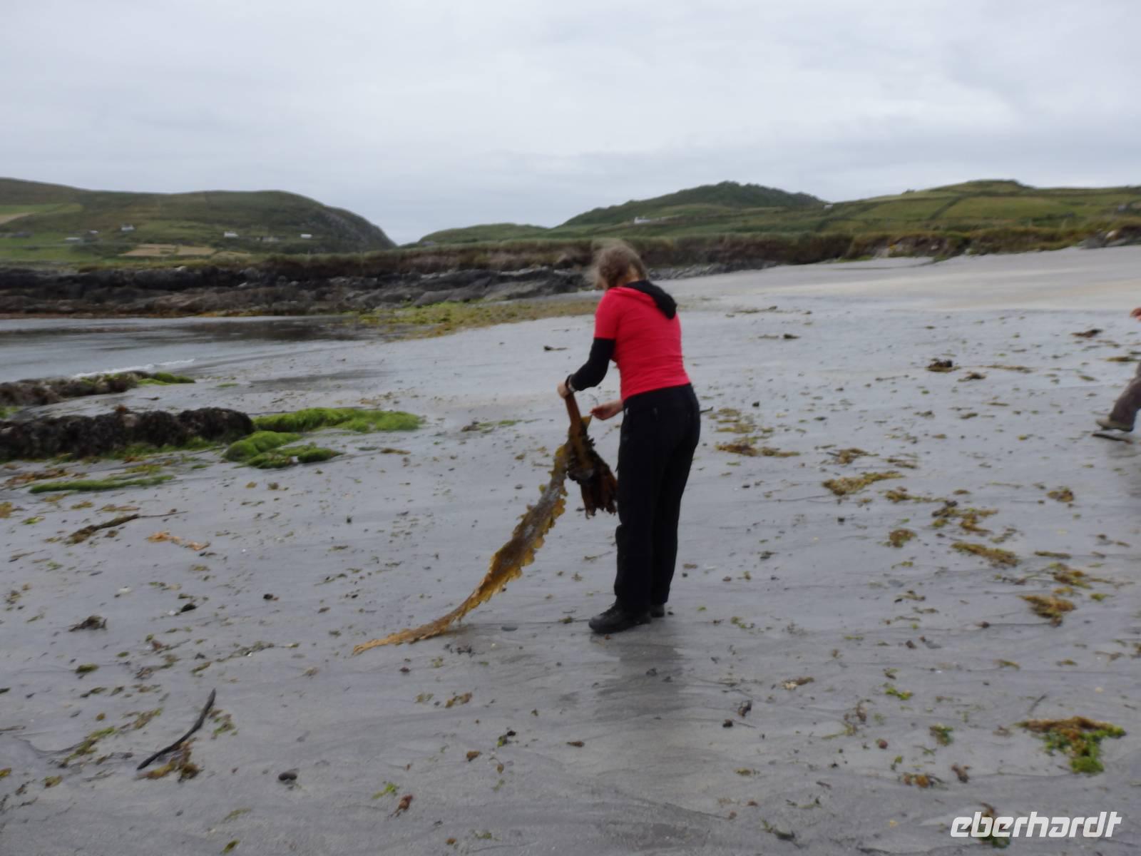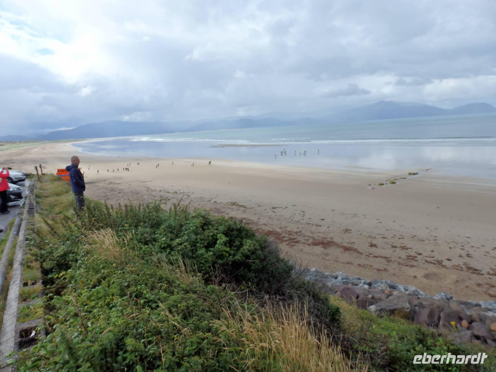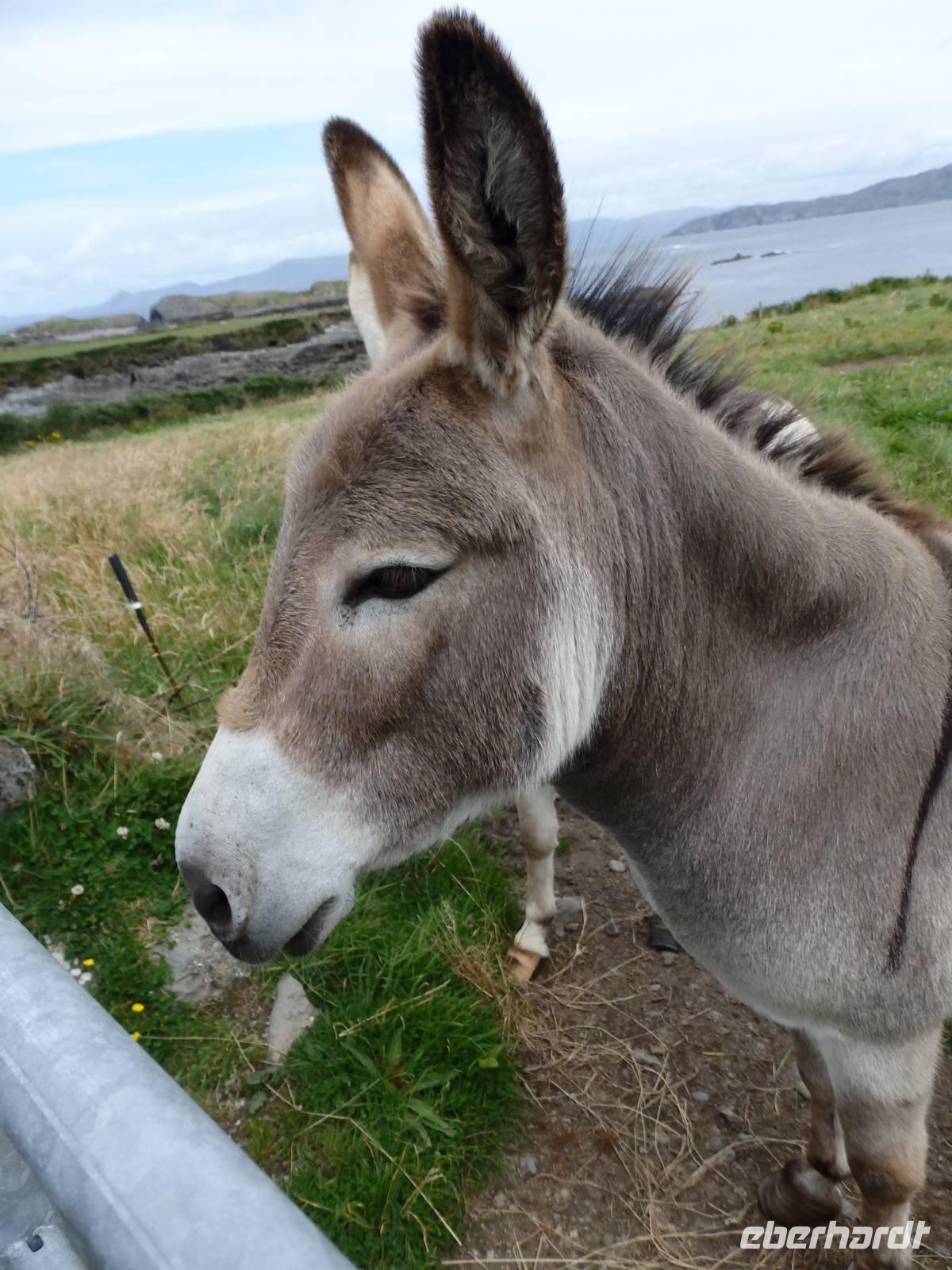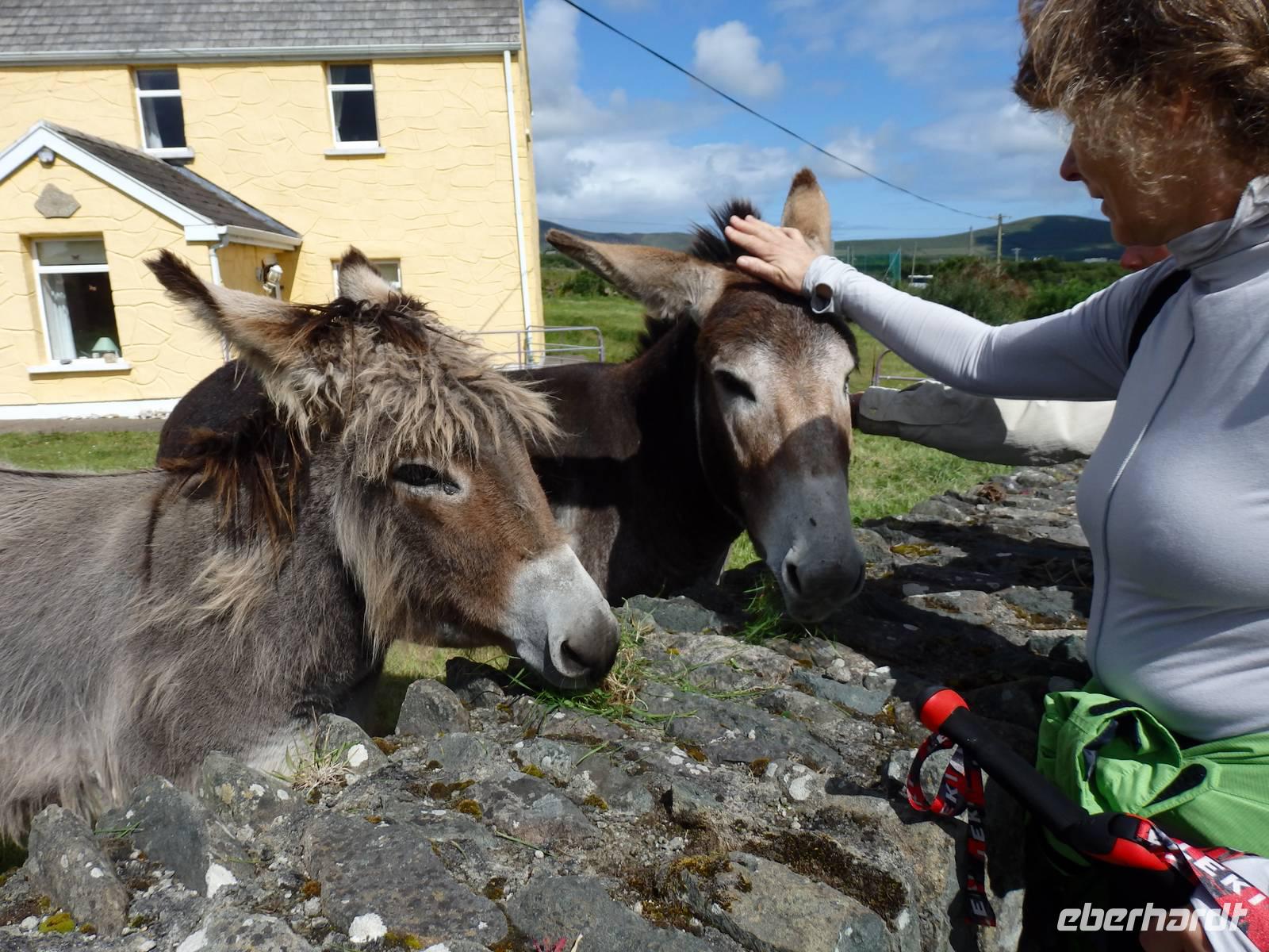 Nach dem Frühstück und dem Empfang der Lunchpakete geht es los. Unser Fahrer bringt uns zum Ausgangspunkt unserer Tour. Wir steigen an der einzigen Seilbahn Irlands aus und wandern bergauf. Diese Bahn verbindet das Festland mit der ca. 400 m entfernten Insel Dursey. Auch heute haben wir wieder bestes Wanderwetter. Auf dem Bergplateau angekommen haben wir ein herrliches Panorama mit steilen Klippen und bizarren Felsen vor uns. Nach dem Abstieg verzehren wir unsere mitgerachten Sandwiches und unser Obst an einem herlichen Sandstrand in Garinish und ruhen ein wenig aus. Auf dem weiteren Weg sehen wir zwei Esel und viele farbig markierte Schafe und allerlei Blumen. Am Bus angekommen geht es dann weiter in den kleinen Ort Allihies. Hier wurde früher Kupfer abgebaut. In dem an das Museum angeschlossene Kaffee gab es eine kleine Stärkung für uns. Auf der Fahrt zum Hotel gab es noch einen Fotostop am 5,3m hohen Ogham Stone, er gilt als der höchste Stein seiner Art in Europa. Mit dem Abendessen geht ein weiterer schöner Tag zu ende.