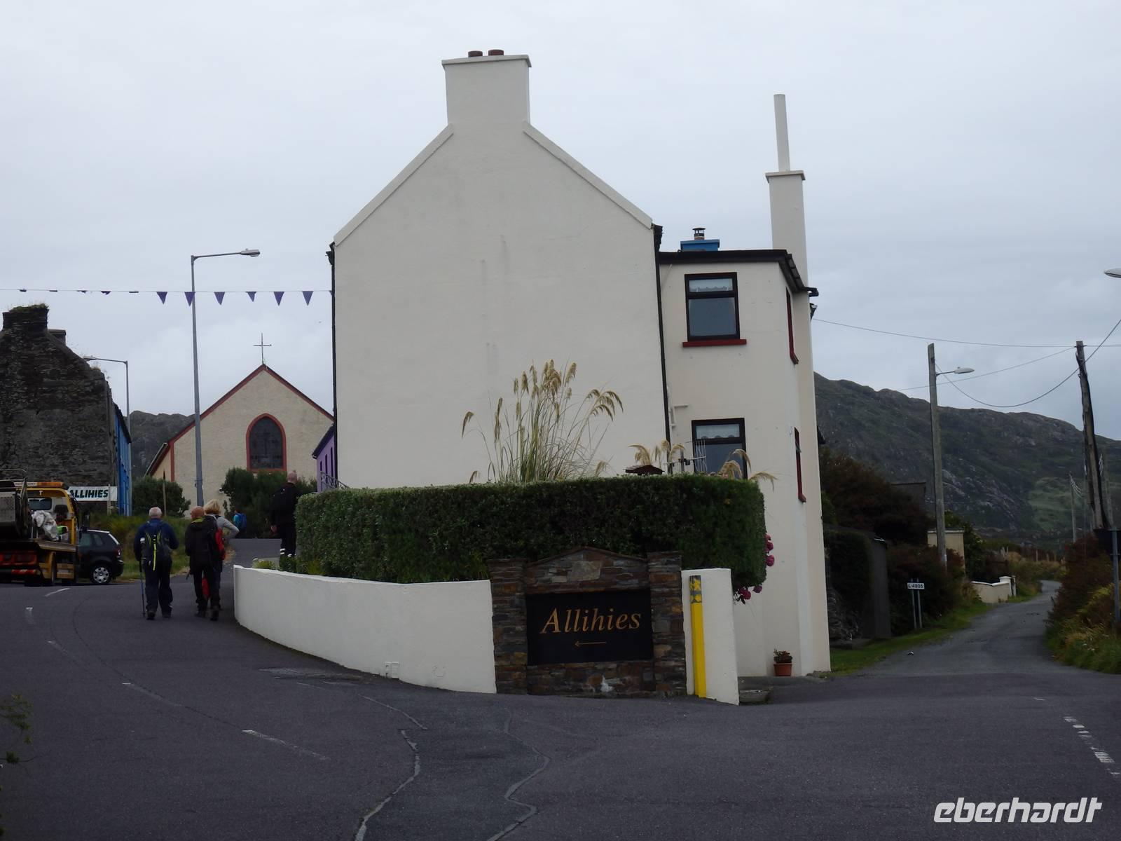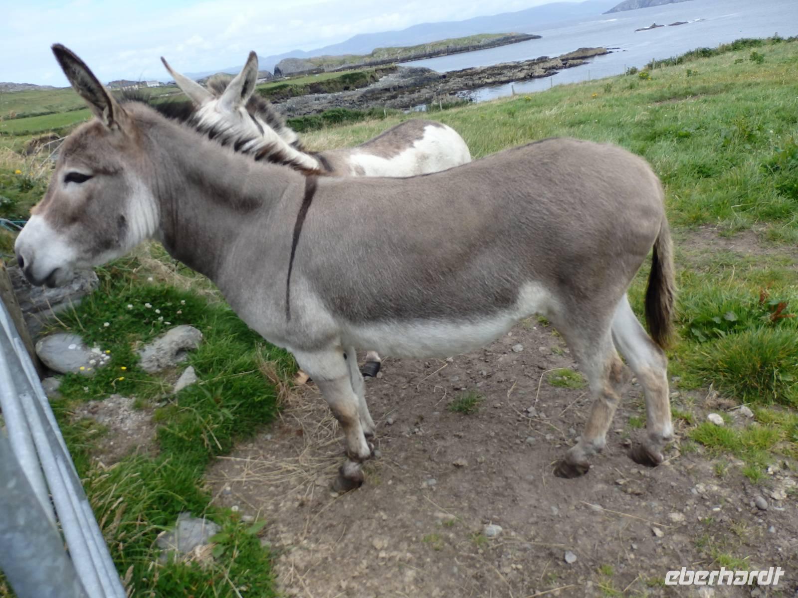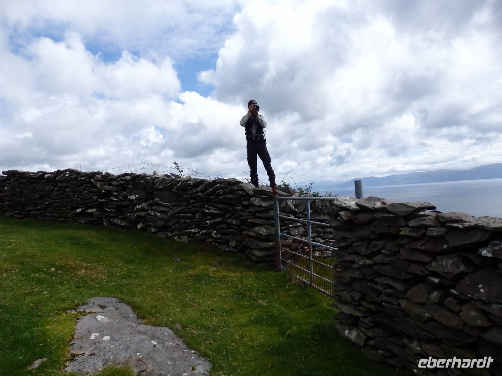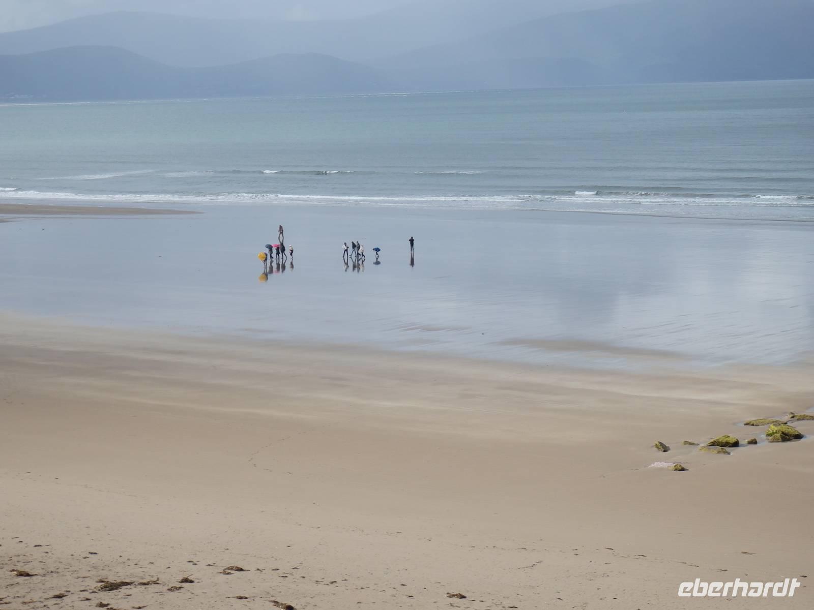 Nach dem Frühstück und dem Empfang der Lunchpakete geht es los. Unser Fahrer bringt uns zum Ausgangspunkt unserer Tour. Wir steigen an der einzigen Seilbahn Irlands aus und wandern bergauf. Diese Bahn verbindet das Festland mit der ca. 400 m entfernten Insel Dursey. Auch heute haben wir wieder bestes Wanderwetter. Auf dem Bergplateau angekommen haben wir ein herrliches Panorama mit steilen Klippen und bizarren Felsen vor uns. Nach dem Abstieg verzehren wir unsere mitgerachten Sandwiches und unser Obst an einem herlichen Sandstrand in Garinish und ruhen ein wenig aus. Auf dem weiteren Weg sehen wir zwei Esel und viele farbig markierte Schafe und allerlei Blumen. Am Bus angekommen geht es dann weiter in den kleinen Ort Allihies. Hier wurde früher Kupfer abgebaut. In dem an das Museum angeschlossene Kaffee gab es eine kleine Stärkung für uns. Auf der Fahrt zum Hotel gab es noch einen Fotostop am 5,3m hohen Ogham Stone, er gilt als der höchste Stein seiner Art in Europa. Mit dem Abendessen geht ein weiterer schöner Tag zu ende.